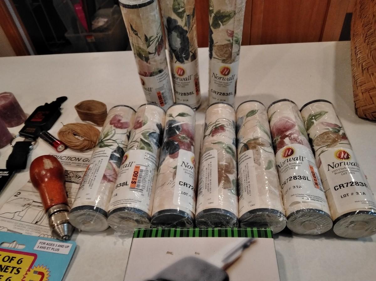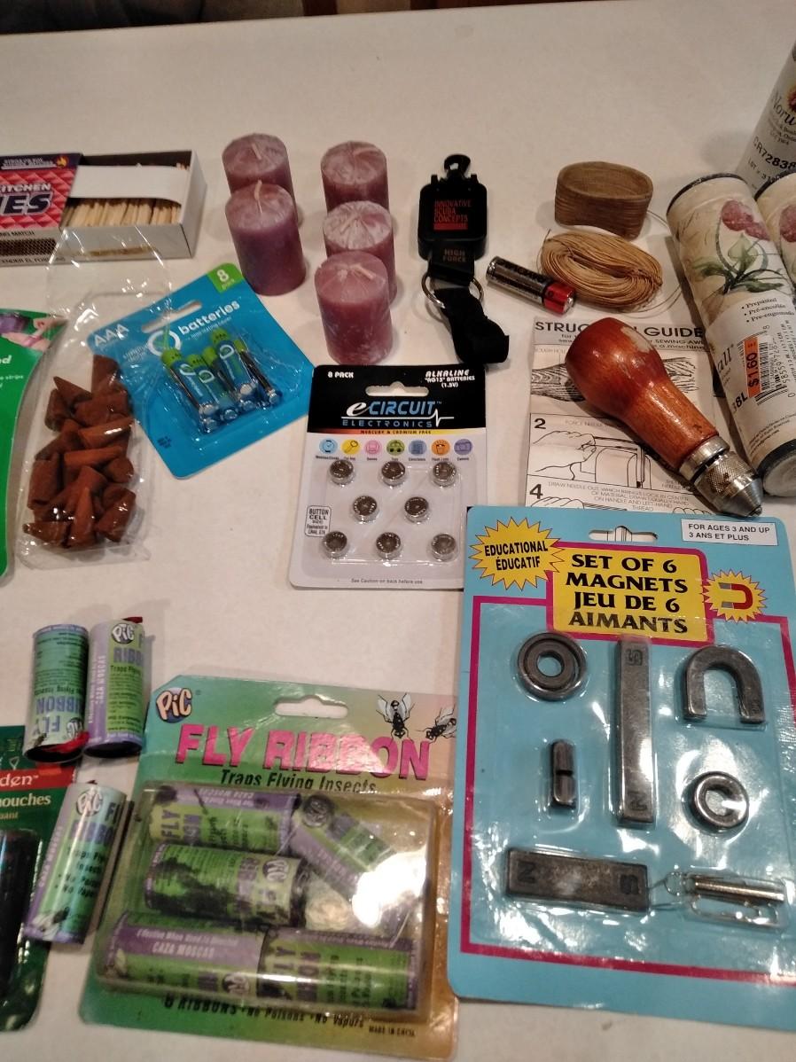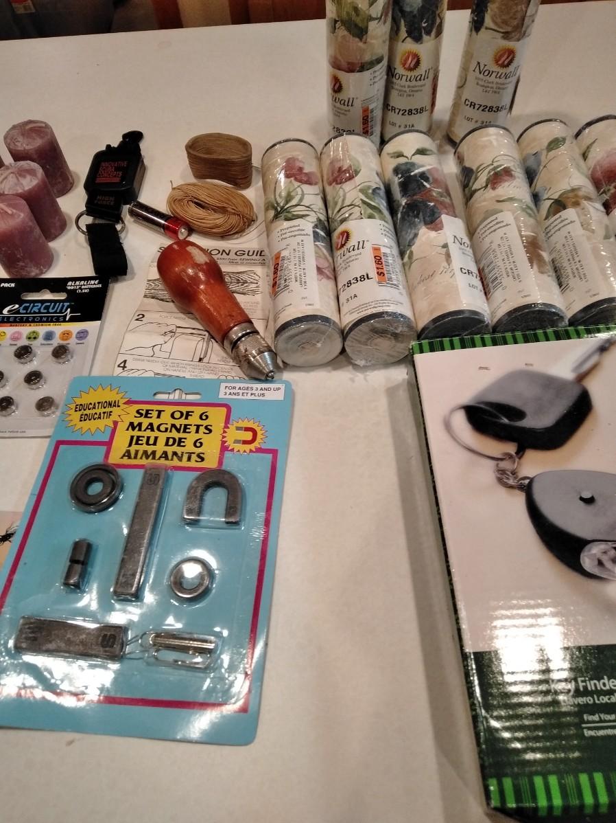 HOUSEHOLD HARDWARE / HOME IMPROVEMENT INCLUDING WALL-PAPER BORDER, MAGNET SET, FLY RIBBON, MATCHES, AND LOTS MORE
