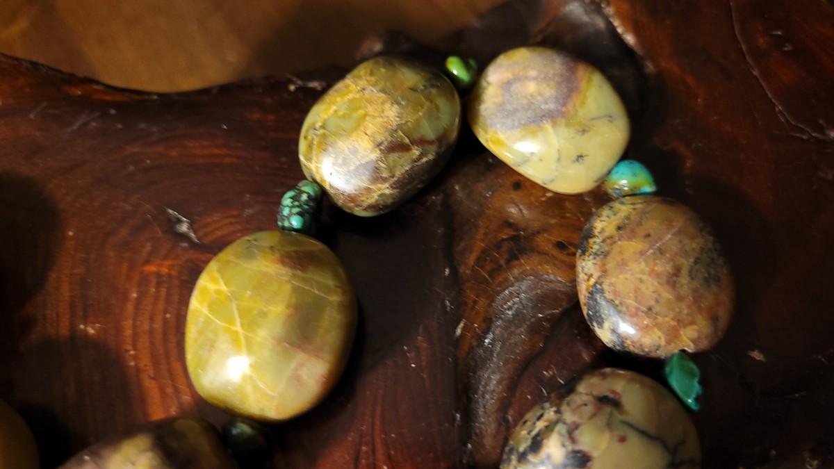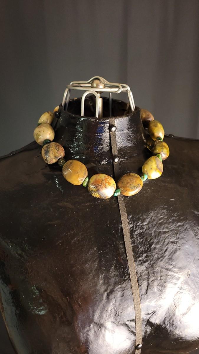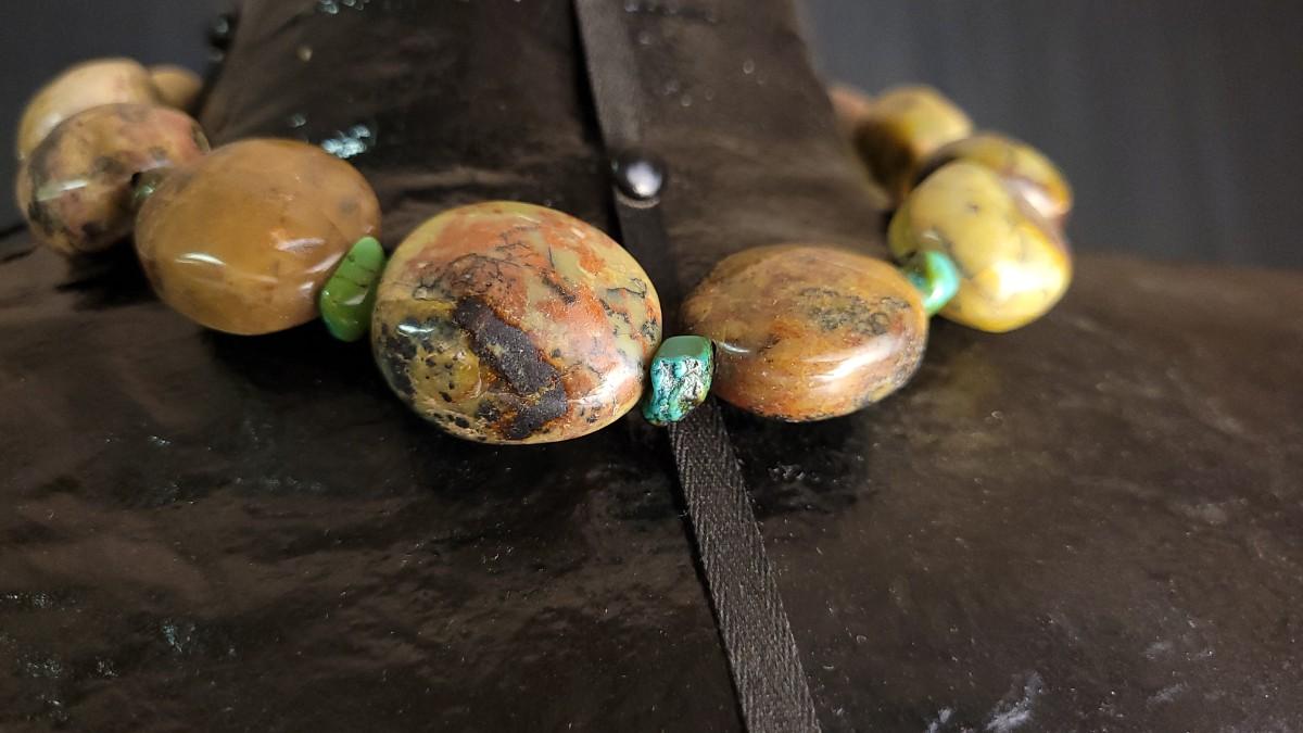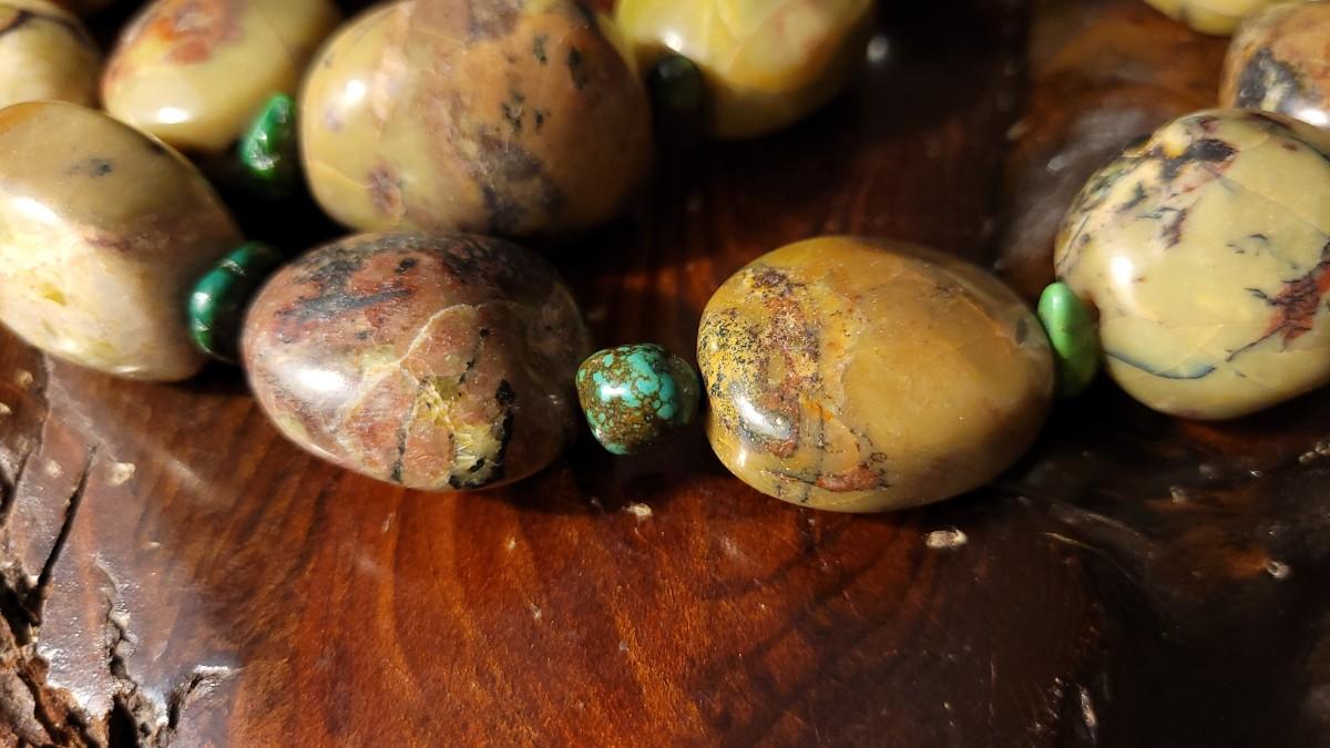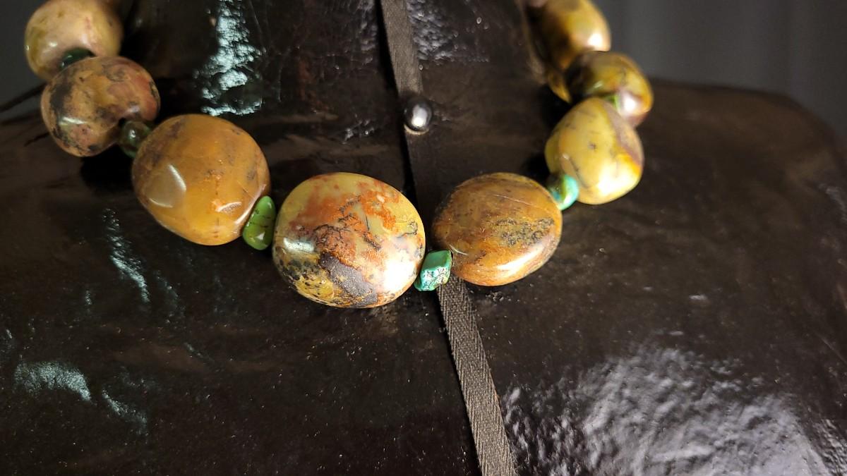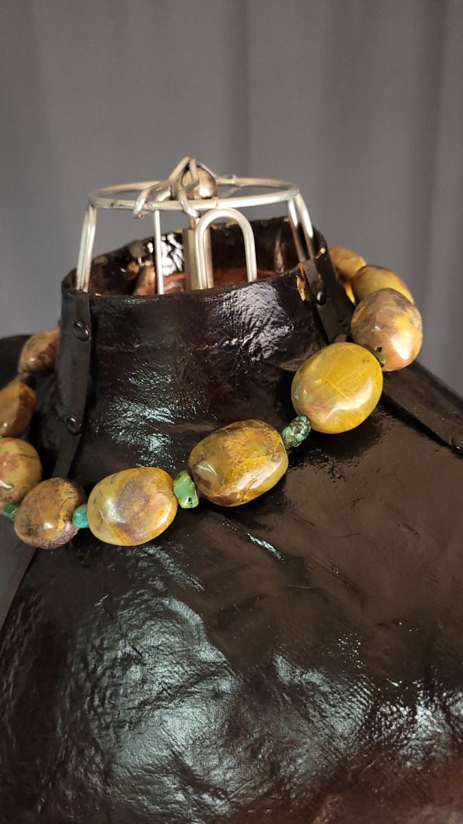 Lot 247: Vintage Polished Stone and Turquoise Chunky Necklace