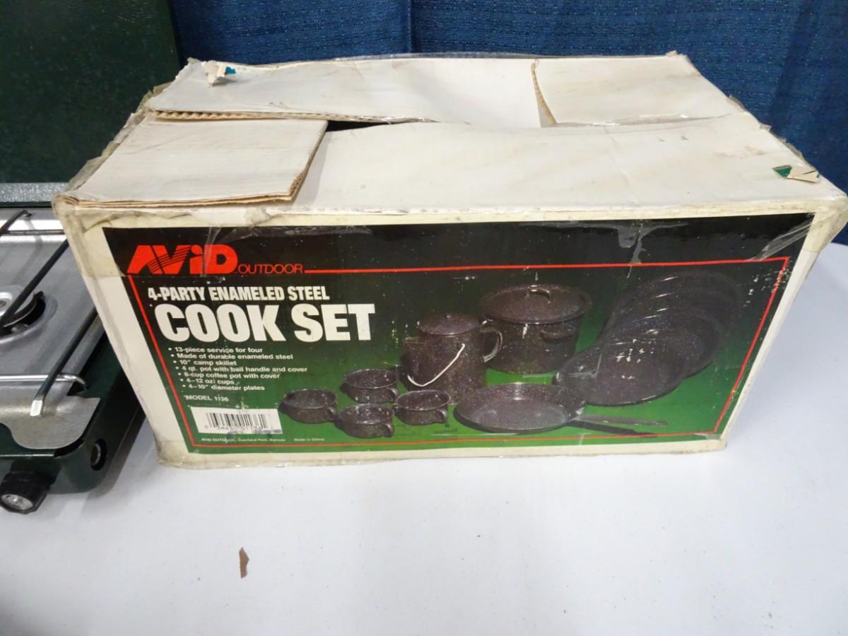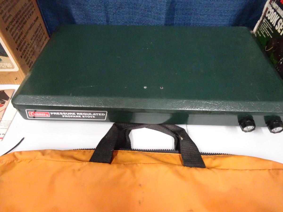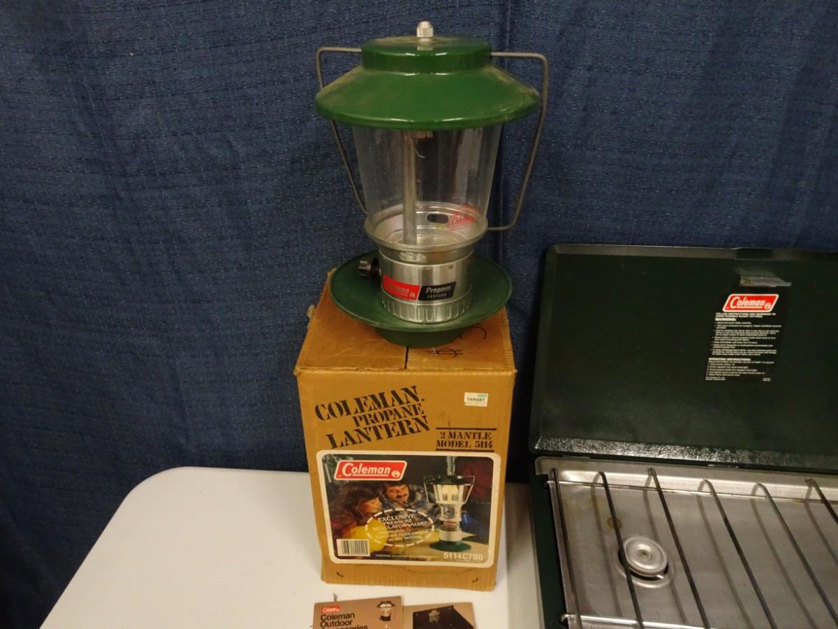 LOT 246. COLEMAN STOVE, CAMPING COOK SET AND COLEMAN LANTERN