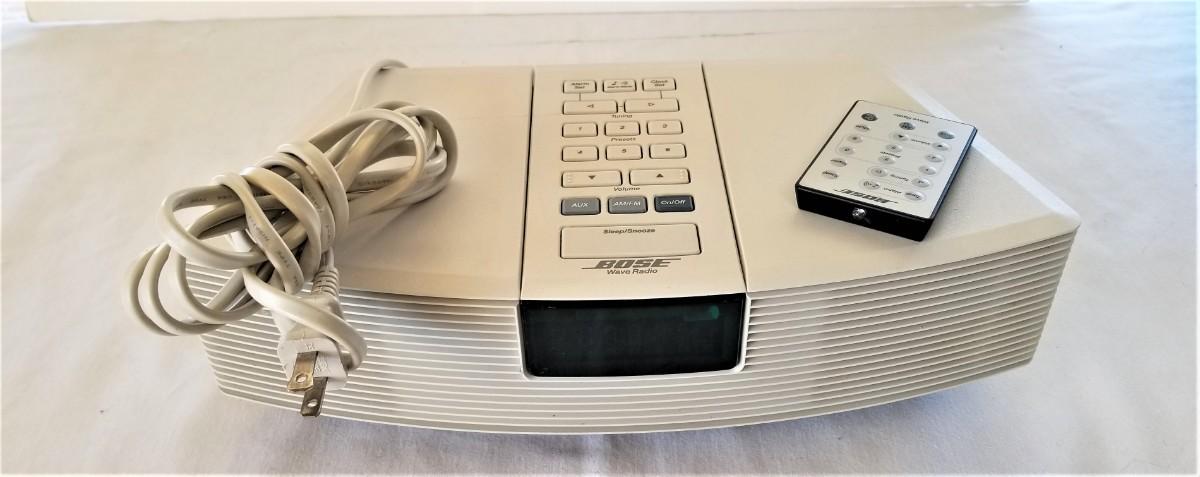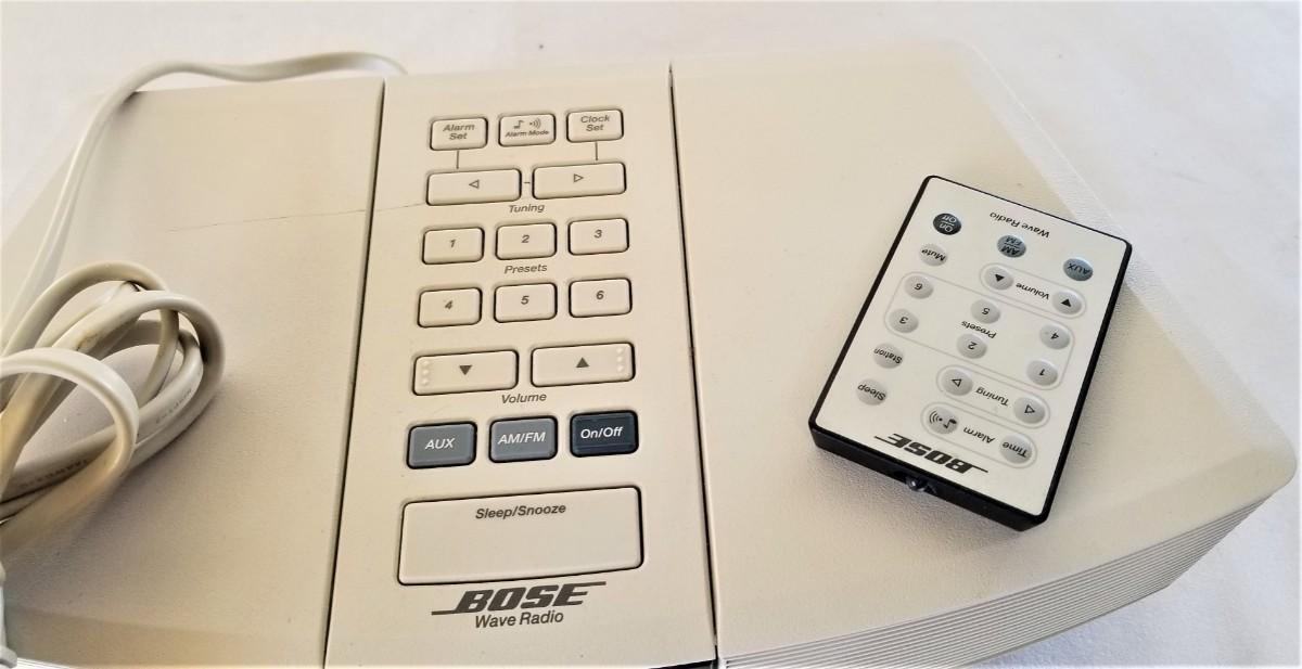 Nice BOSE Wave Radio - radio works (we were enjoying it while working on the sale) - has remote. We were not able to test remote as there were not batteries. Radio is 14" across and looks good.