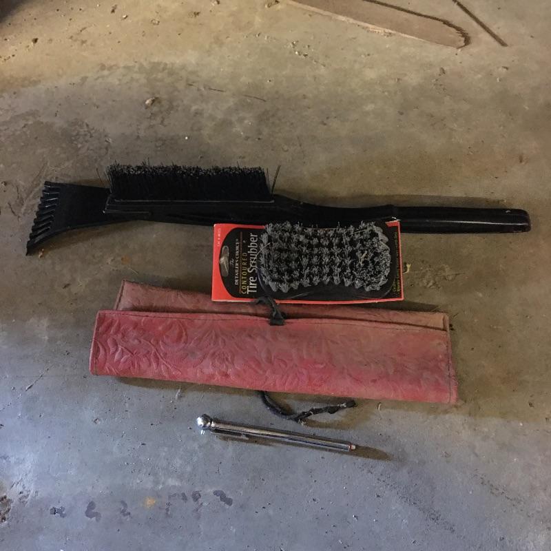 Winter is just around the corner and with this lot you can be prepared! Included are tire chains, receiver hitch, air gauge, polishing cloth, ice scraper and a tire scrubber.