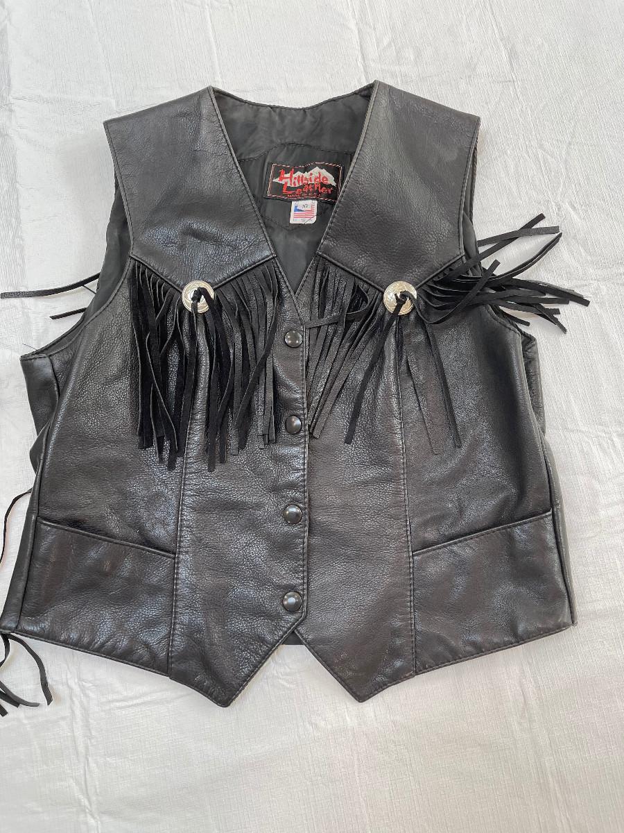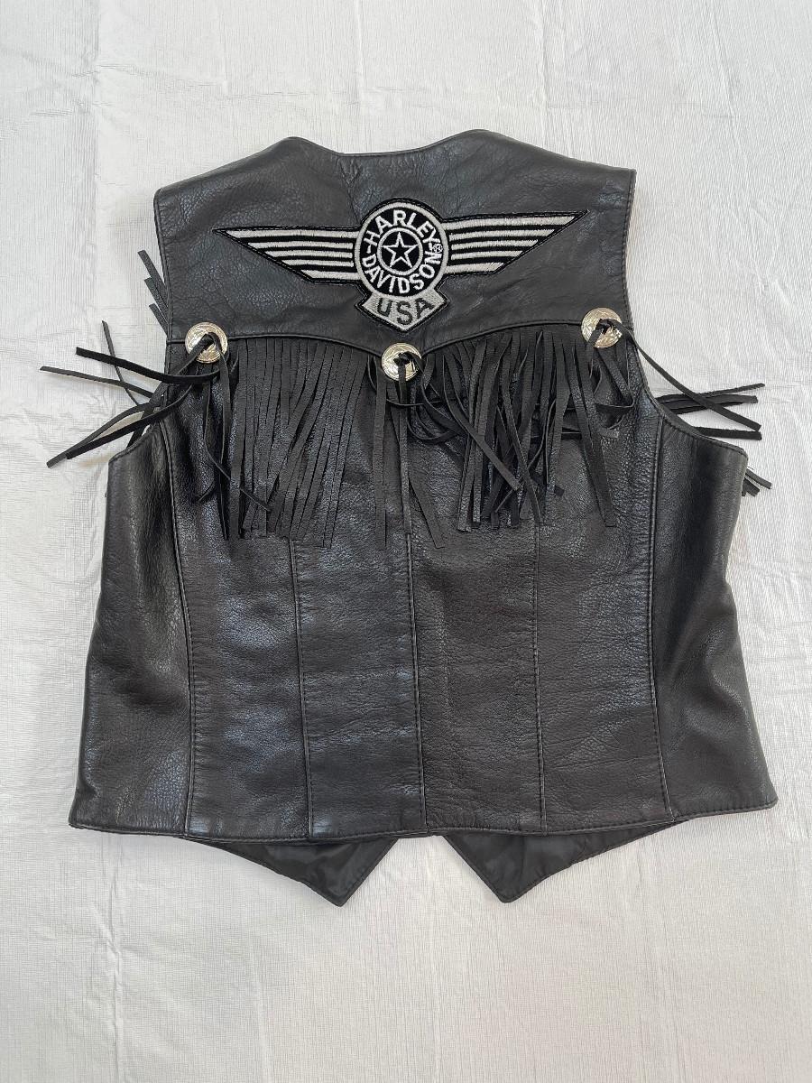 Black Leather Vest with Harley-Davidson Patch By Hillside Leather and Leather Vest with Fringes by Tribe America.