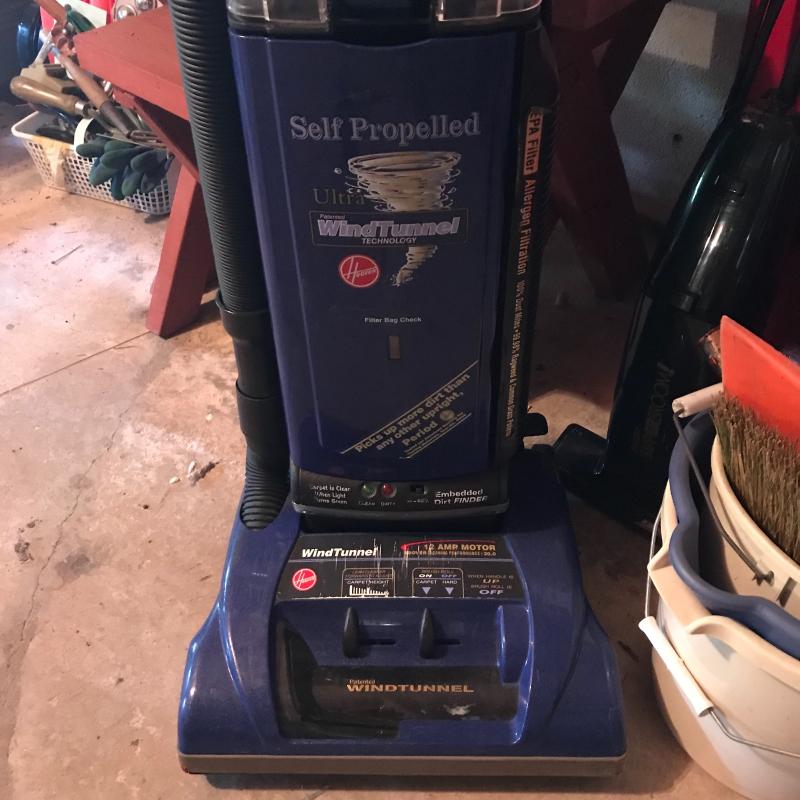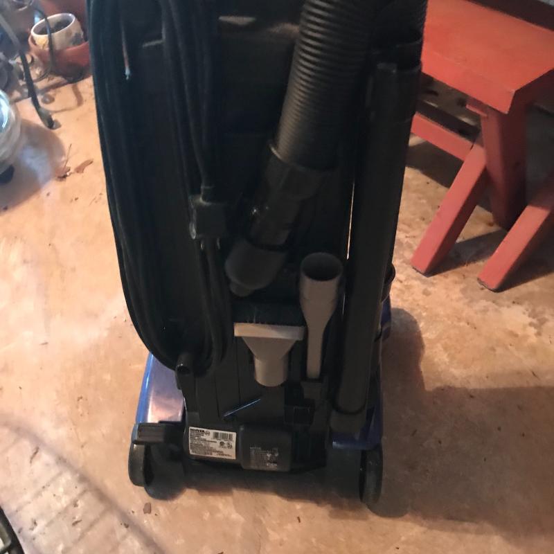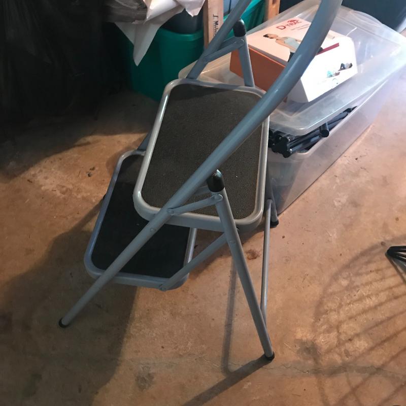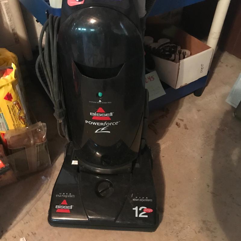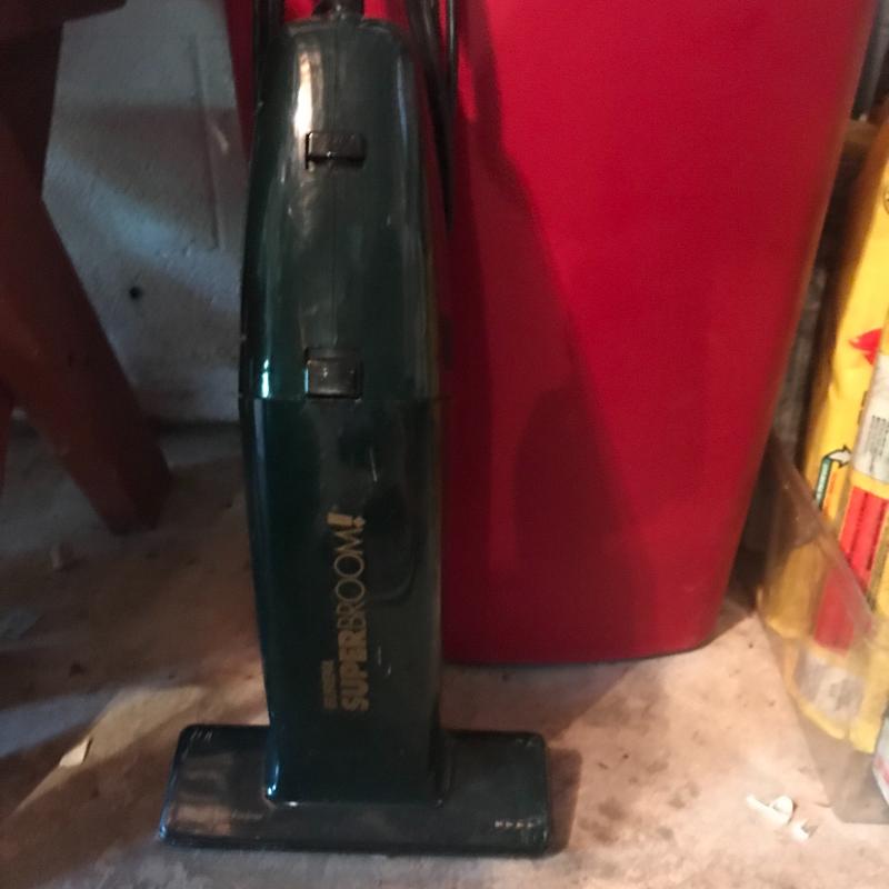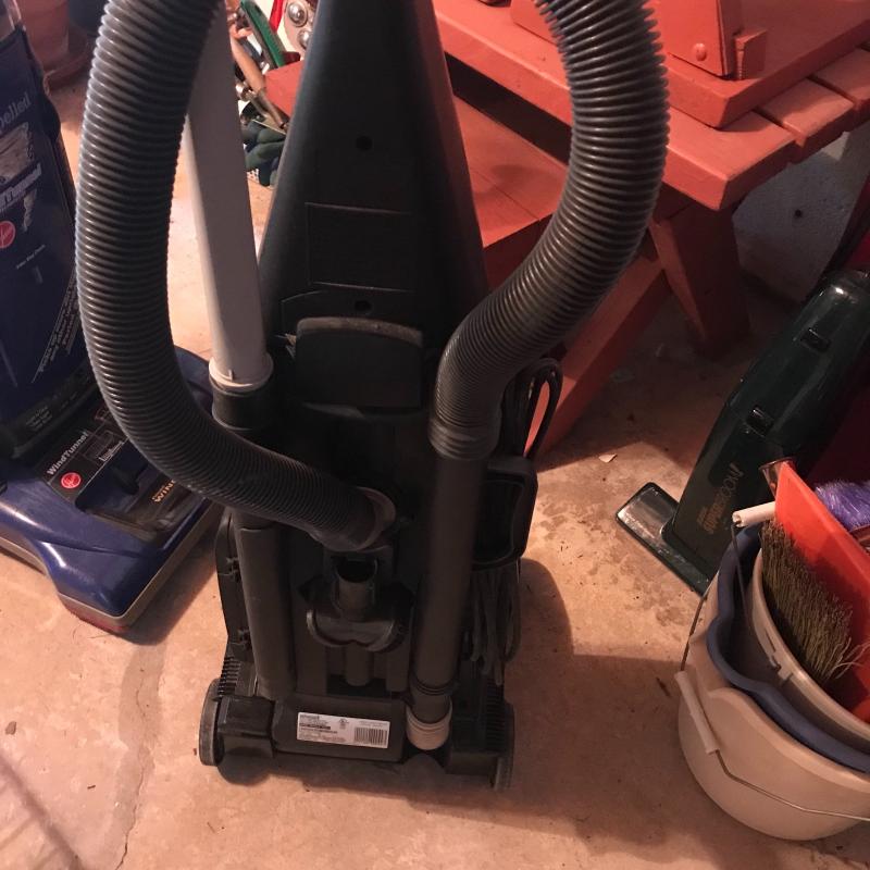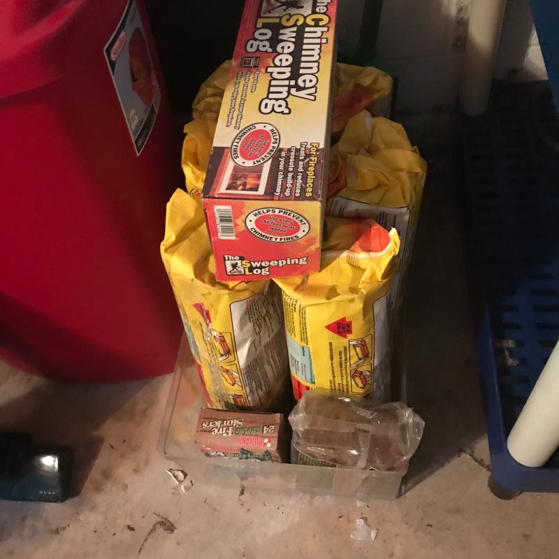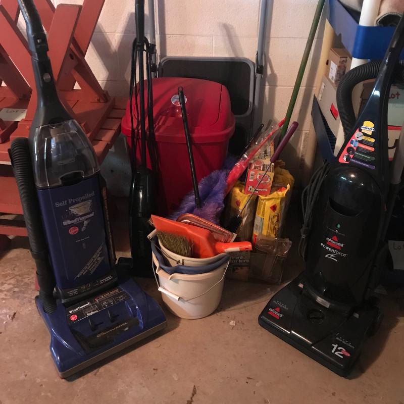 Step ladder, lidded trash can, two dust pans, whisk broom, a few feather dusters, bissell Powerforce vacuum and Hoover wind tunnel vacuum. Container of firelogs and fire starter pieces and three small buckets. Local pick up.
