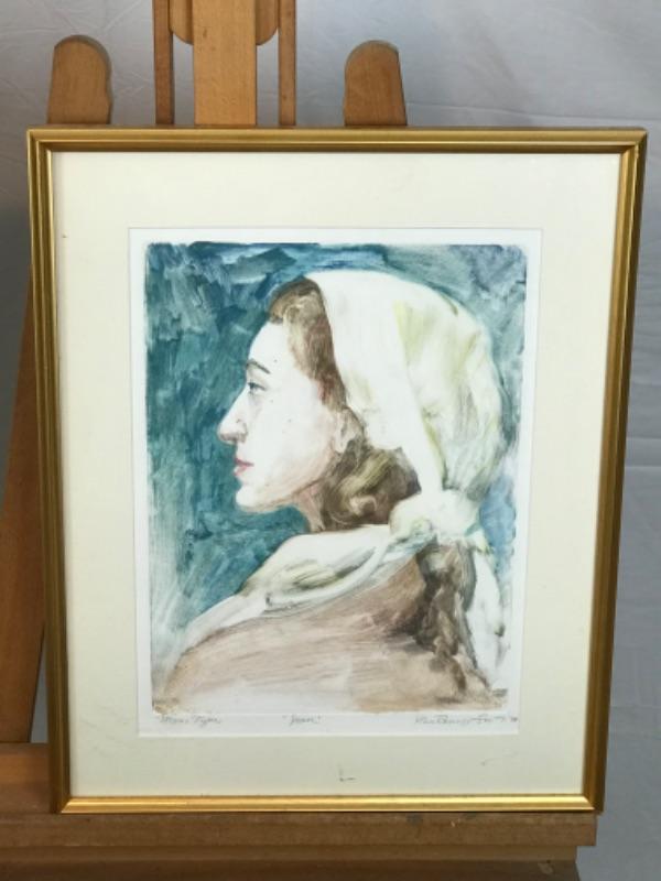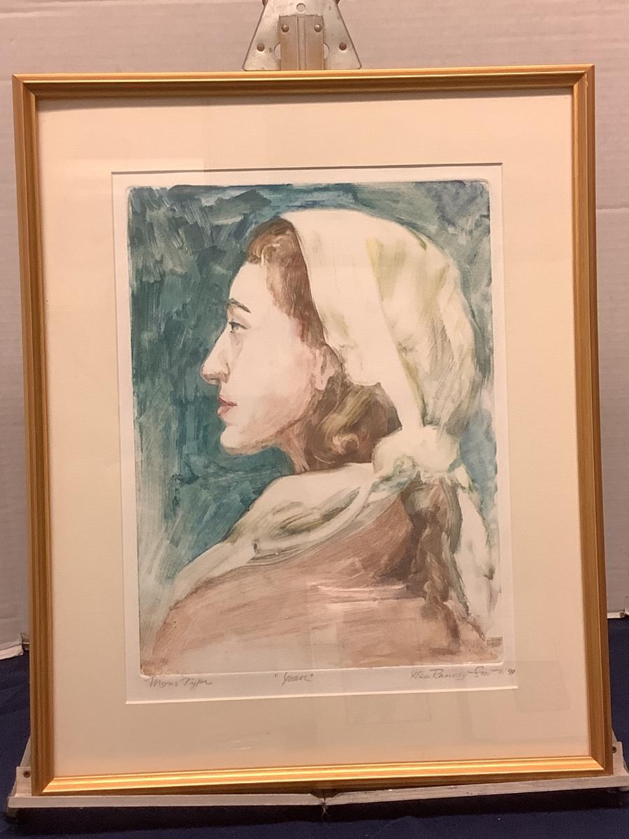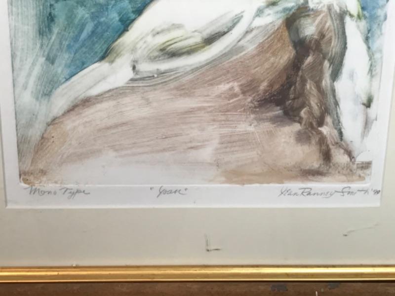 Jean Ranney Smith signed mono type art “Joan” is framed