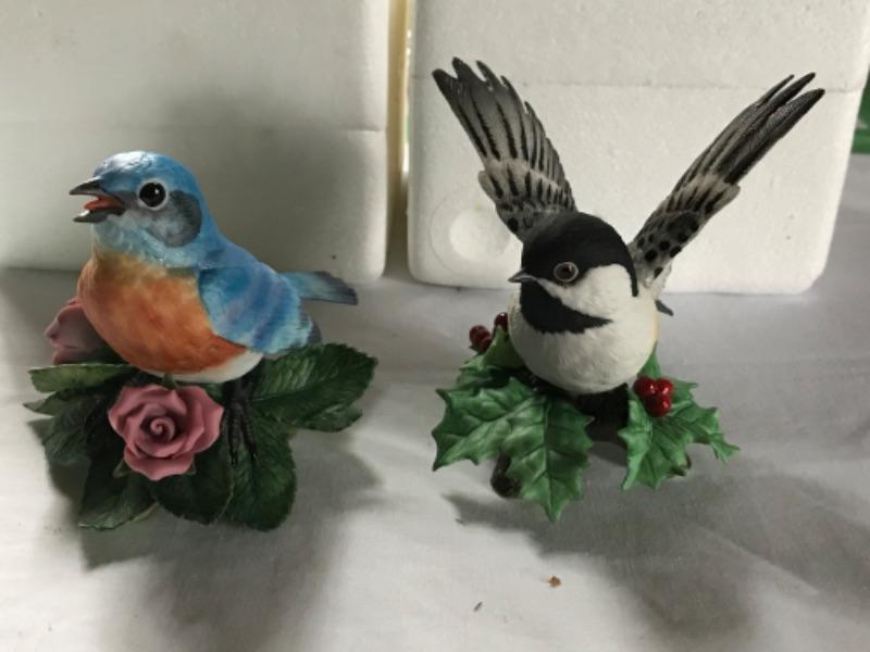 Lenox “The Garden Bird Collection” pair of porcelain birds. Chickadee and Eastern Blue Bird in excellent condition and come in original boxes