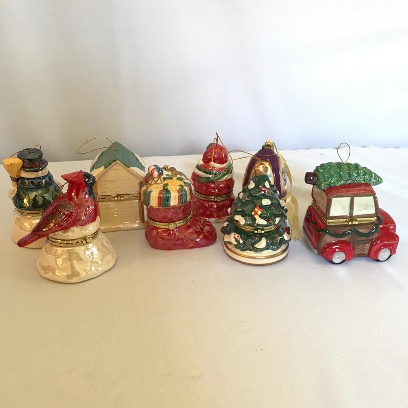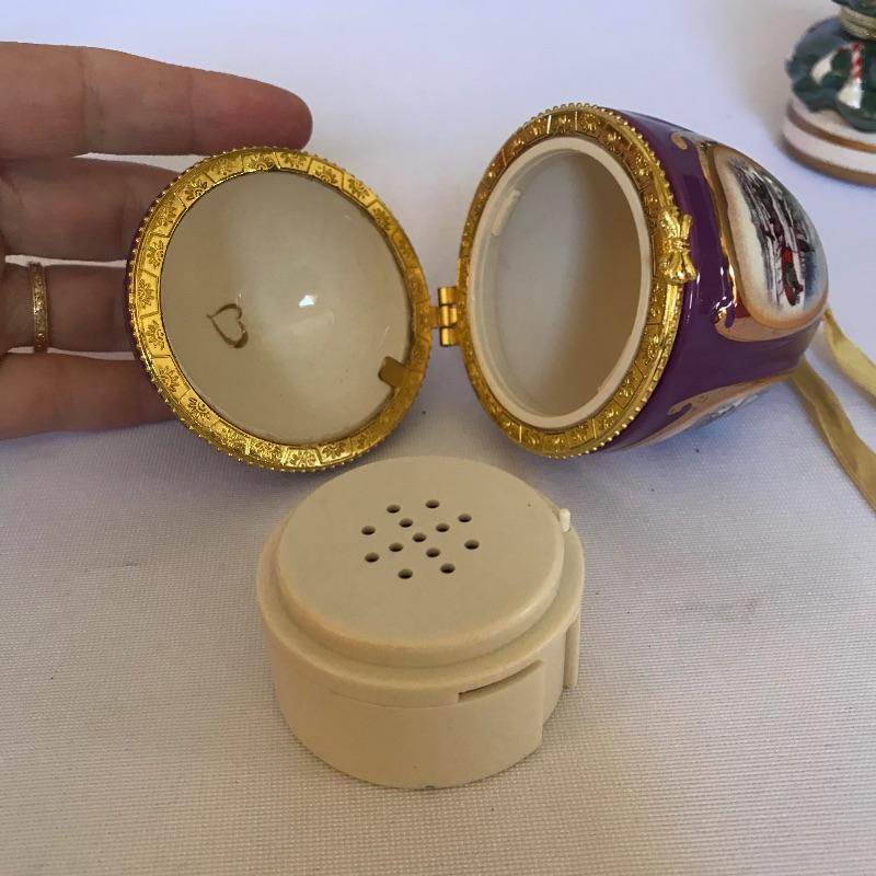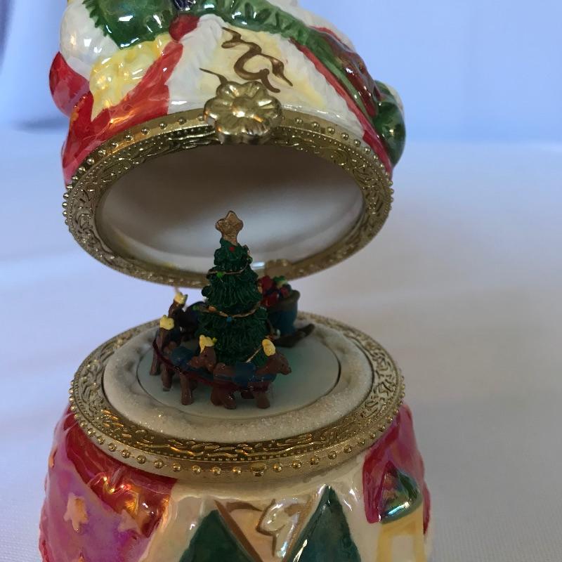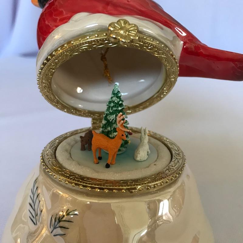Seven charming music boxes by Mr. Christmas with holiday music to warm up any home this holiday season. All are in working condition and play a variety of Christmas tunes. Also included in lot is a purple egg in a similar style as the Mr. Christmas boxes. The egg has a battery operated tune that sounds similar to a piano. All boxes are similar in height, the cardinal is approximately 4.75”. All boxes have string or ribbon for hanging. See photos. Shipping available.