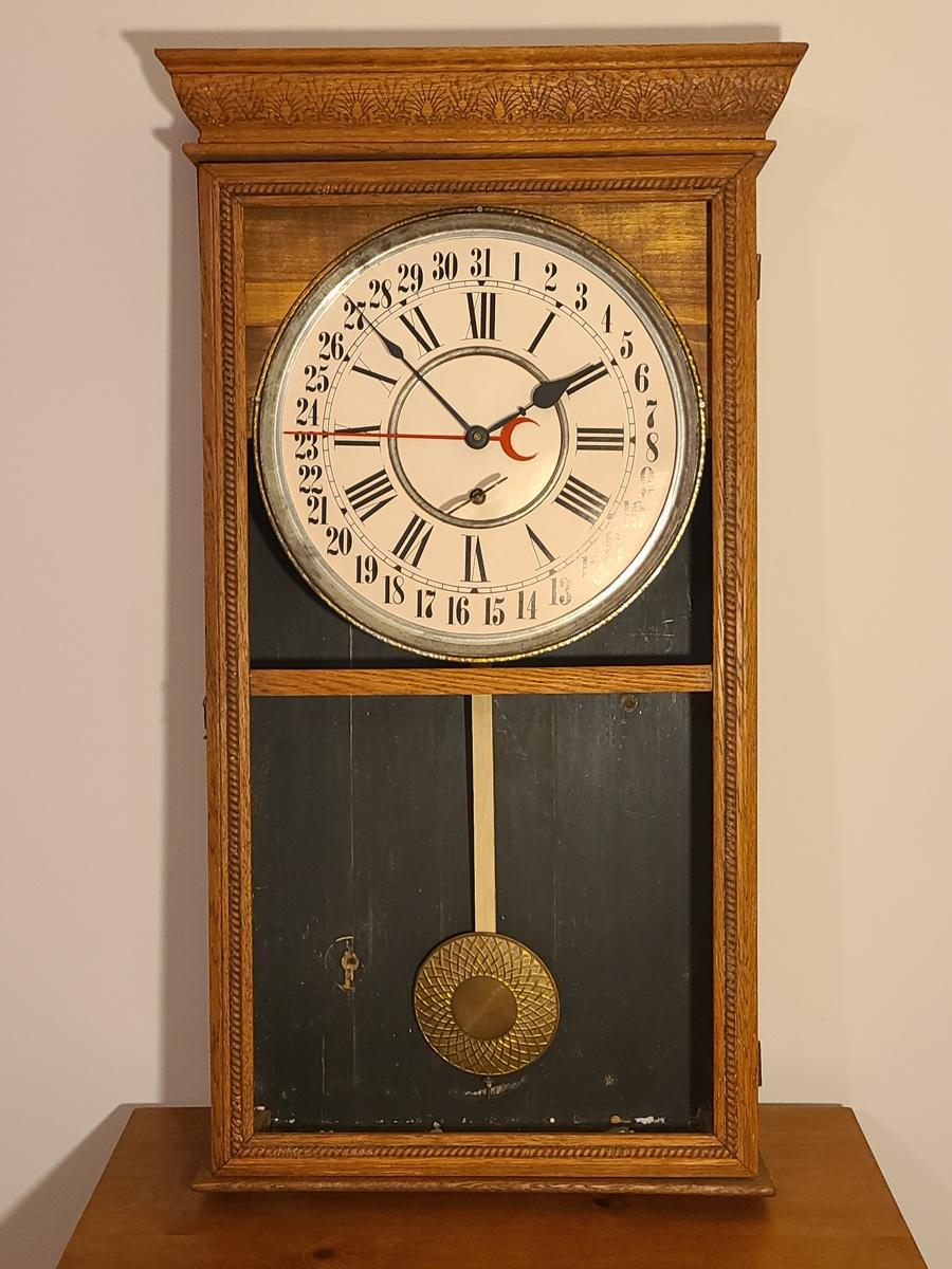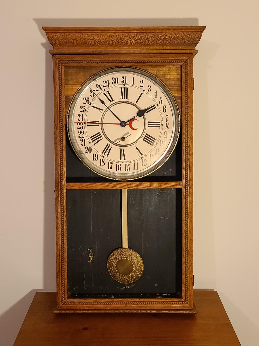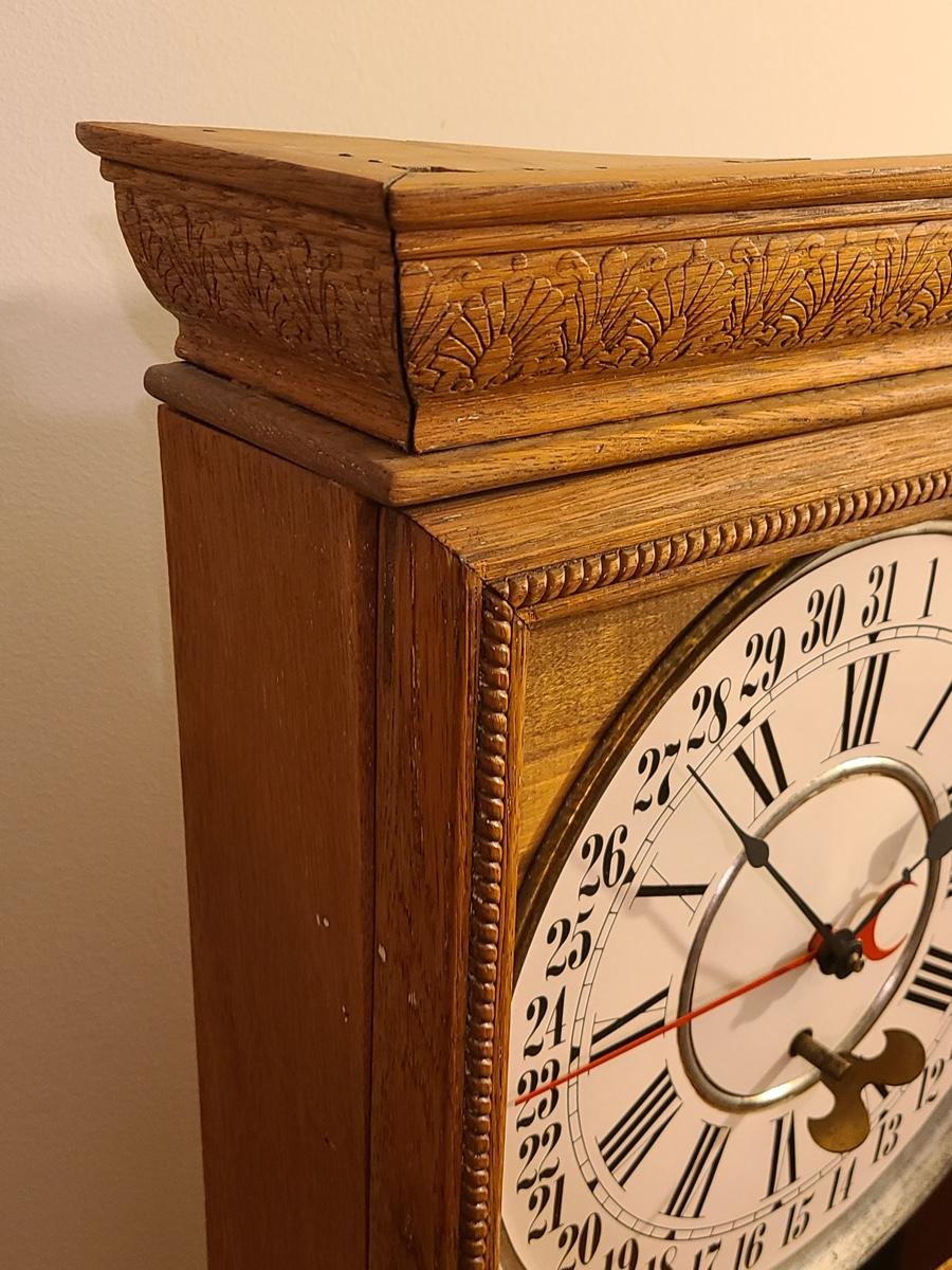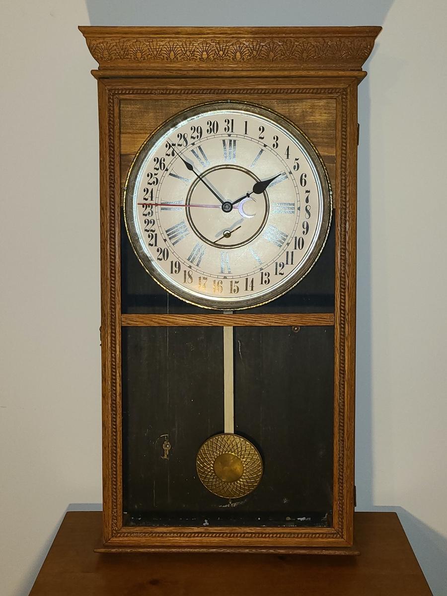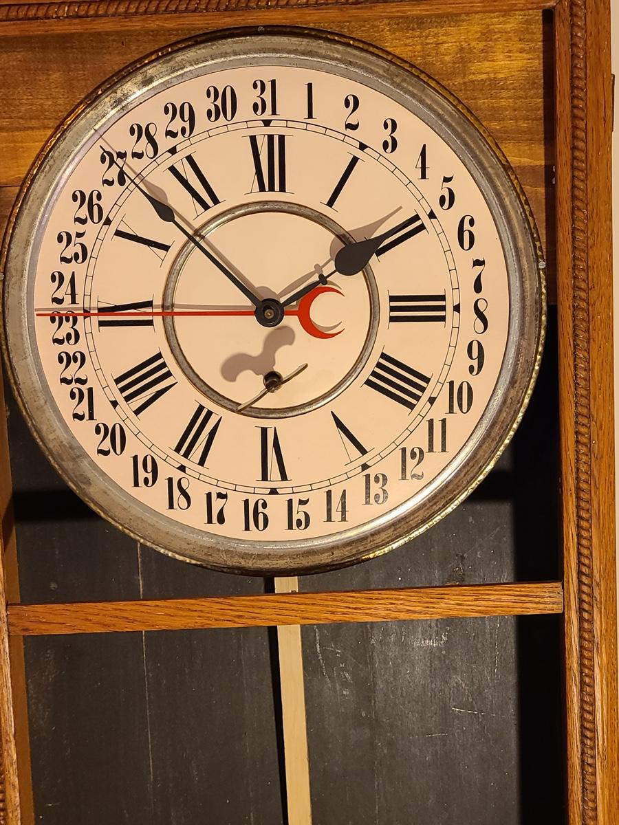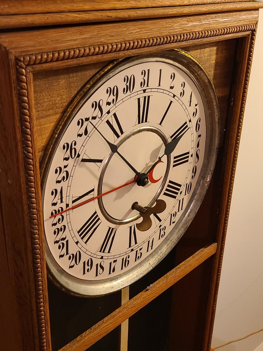 Lot 246: Vintage Regulator Calendar Clock (No Glass)