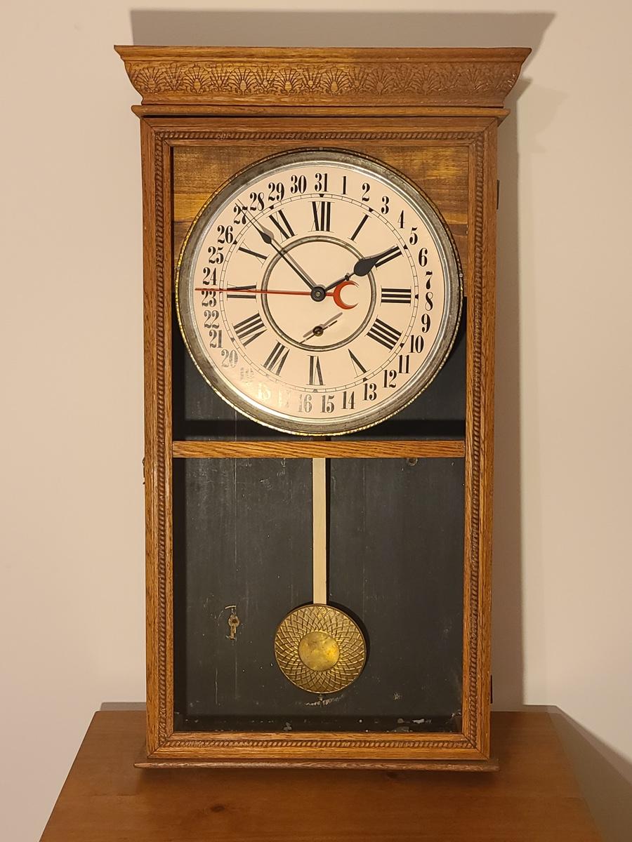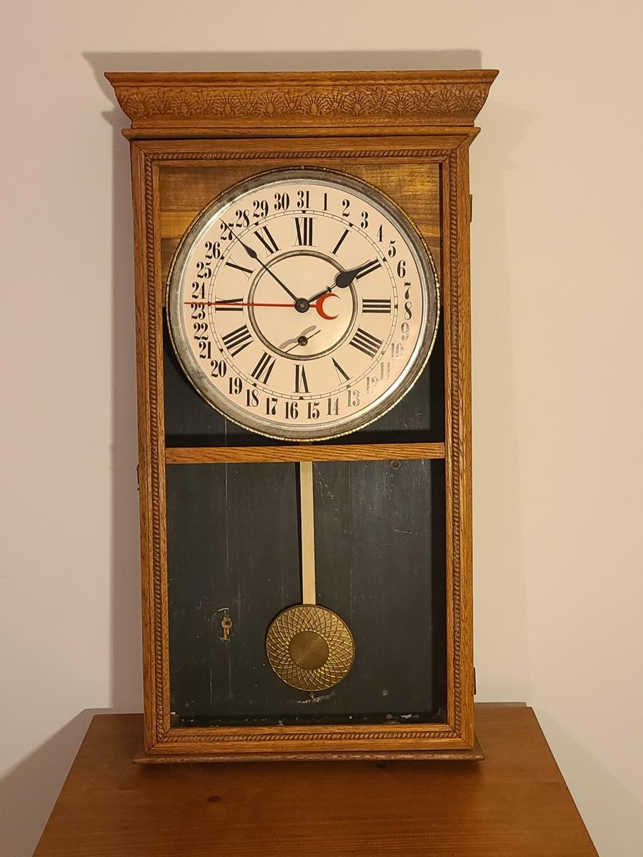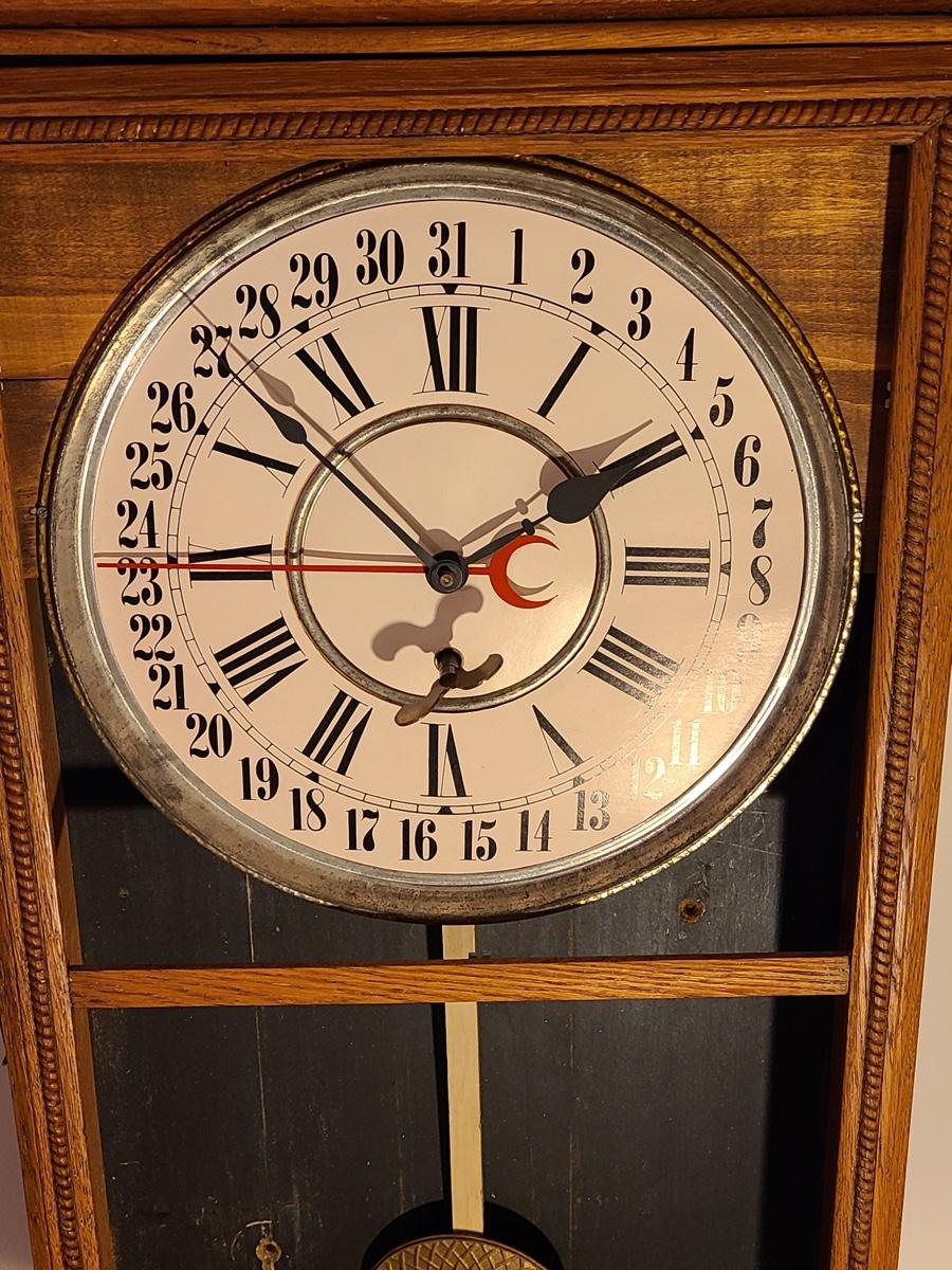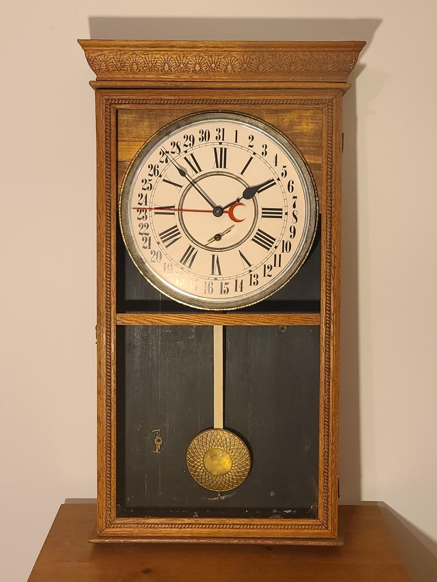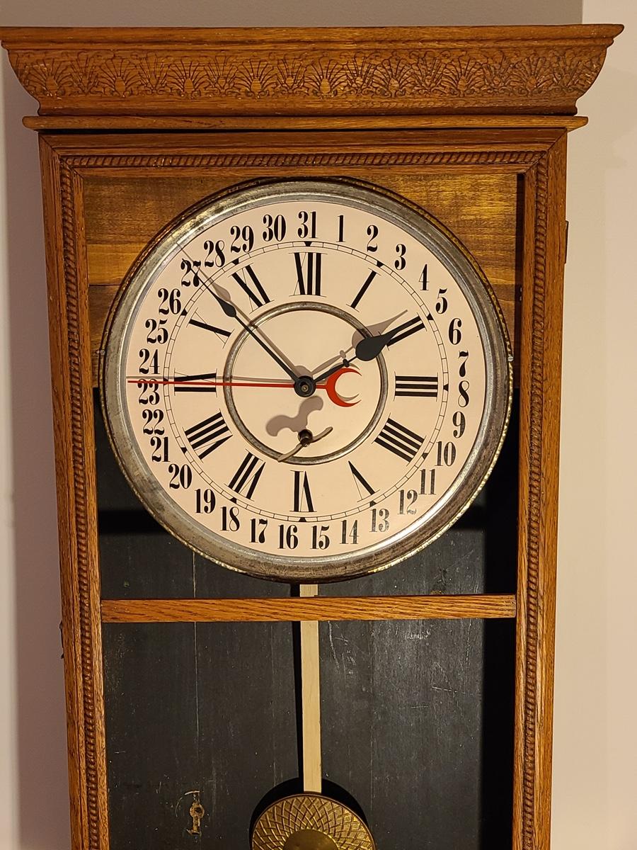 Lot 246: Vintage Regulator Calendar Clock (No Glass)