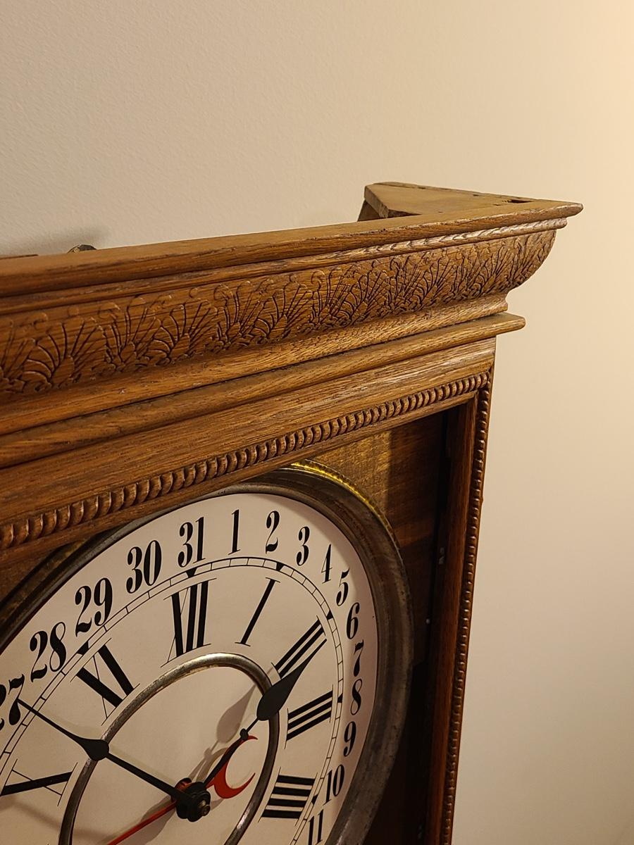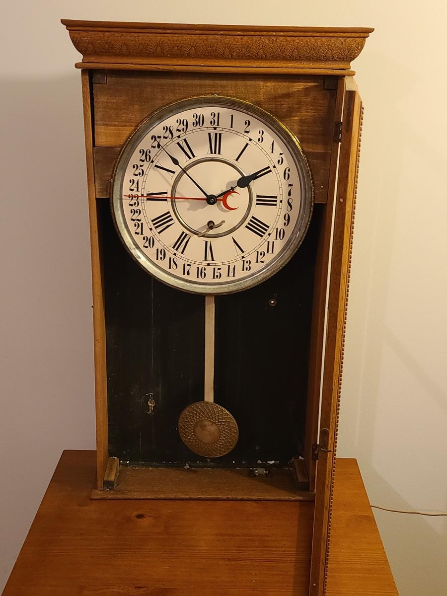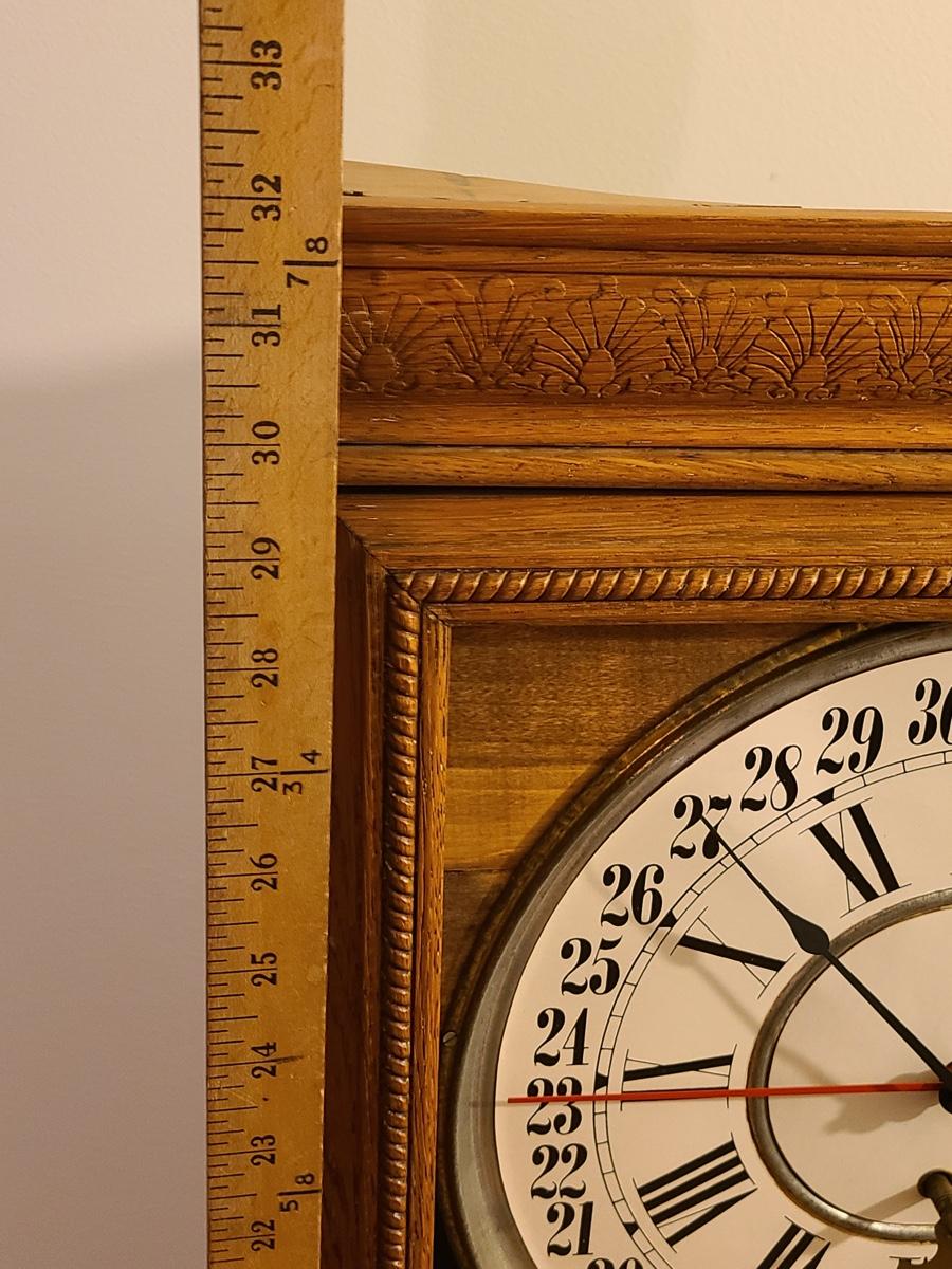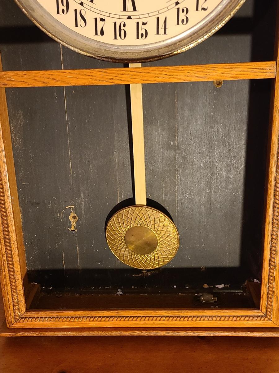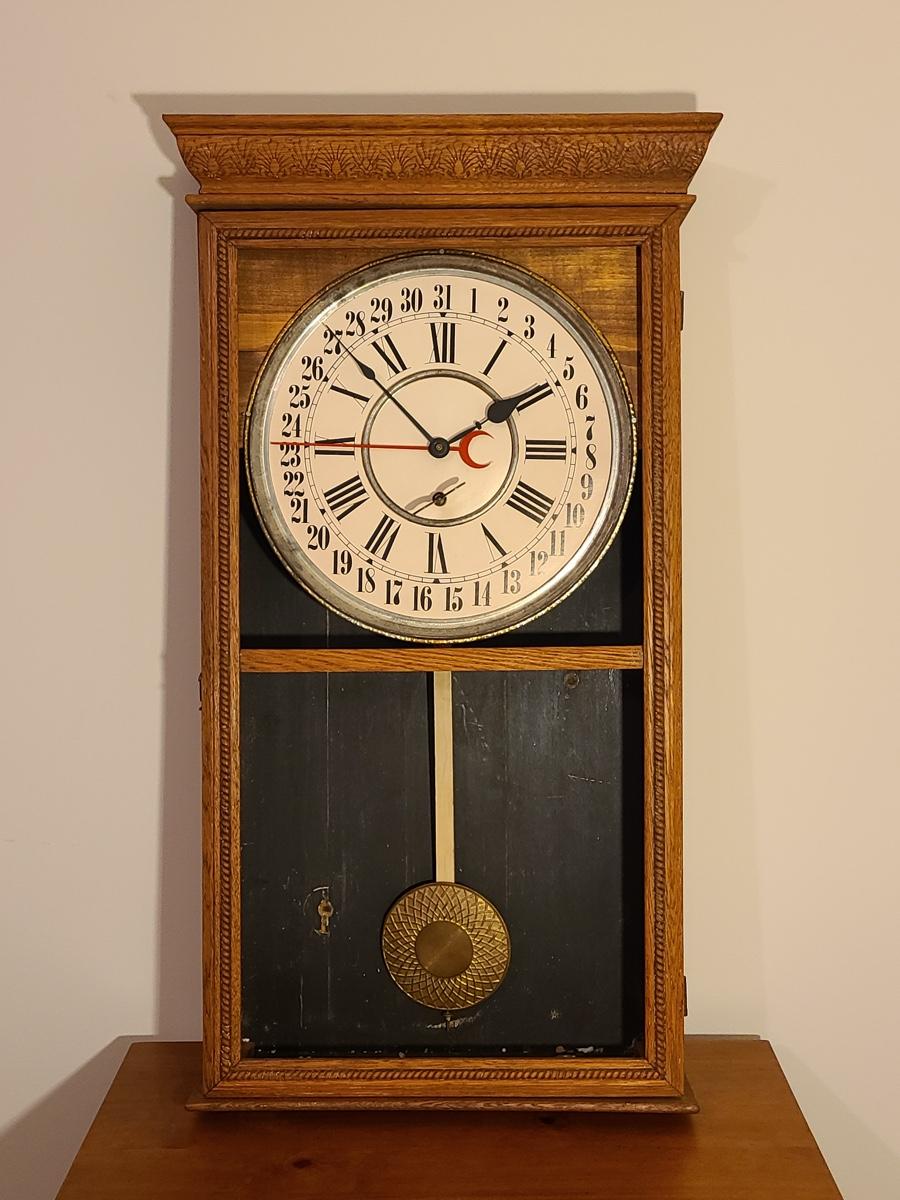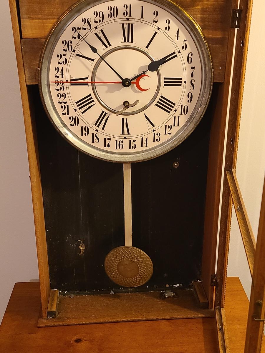 Lot 246: Vintage Regulator Calendar Clock (No Glass)