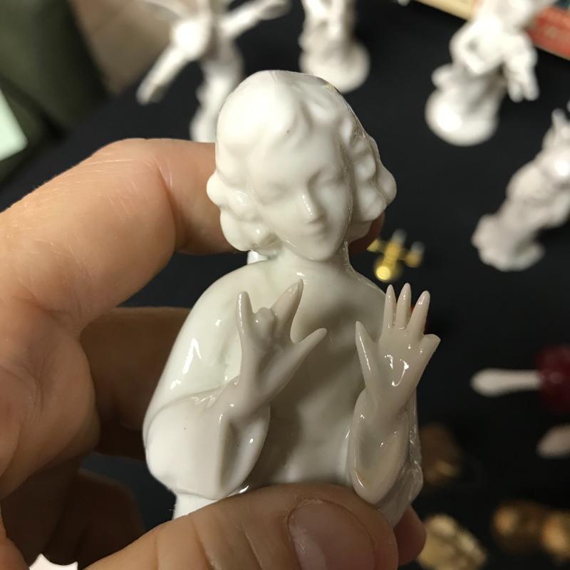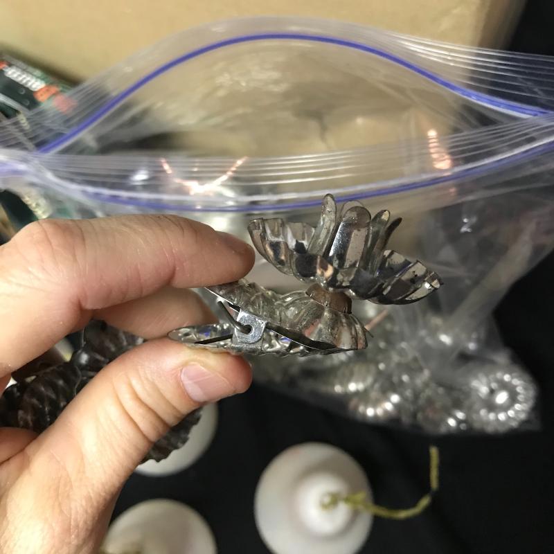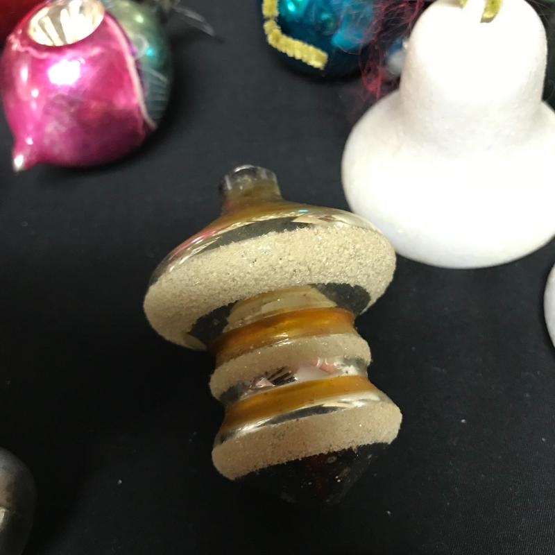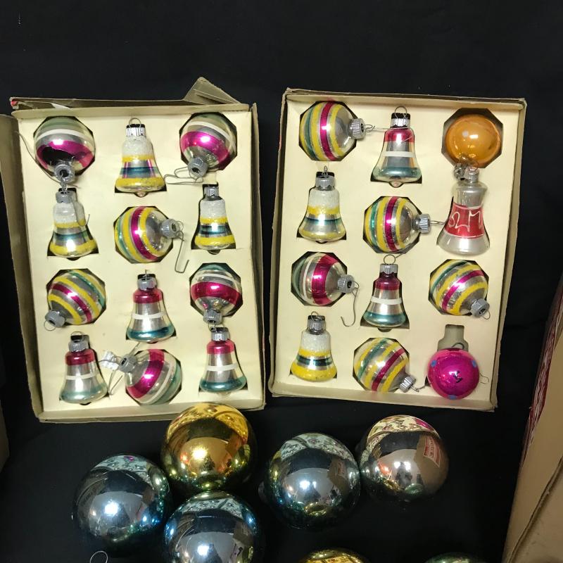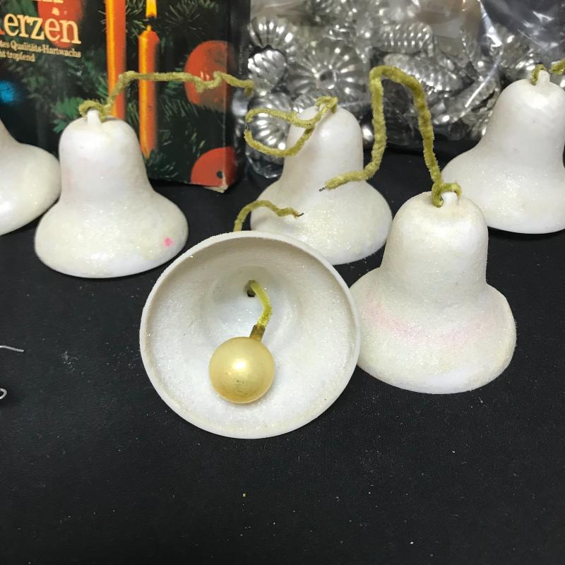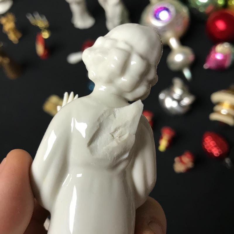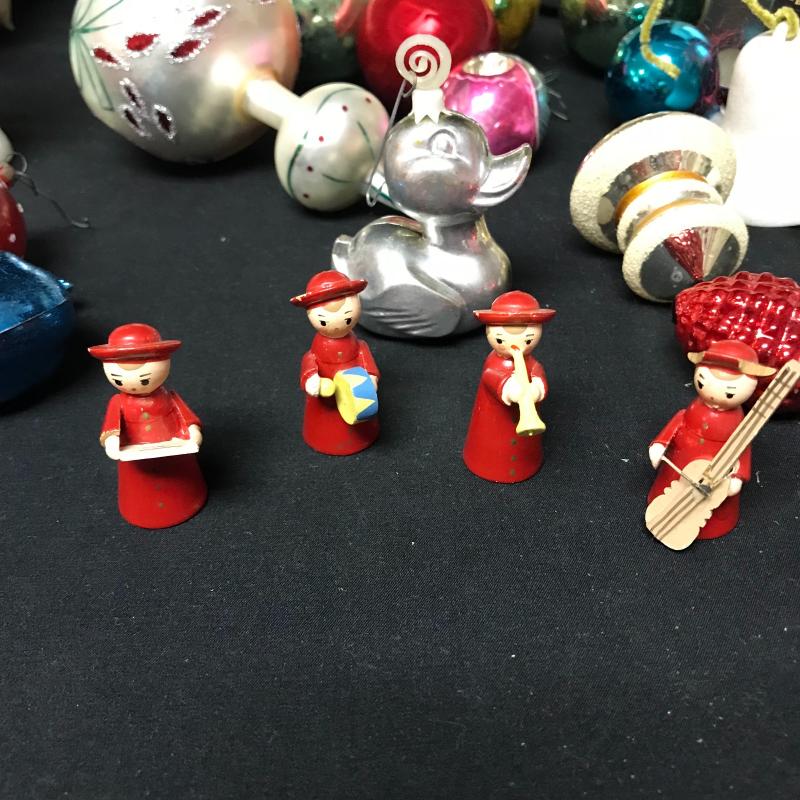Lot contains a variety of vintage Christmas decor including lights, German Dresden angel figurines, glass ornaments, clip-on candle holders and candles for Christmas tree and more. See pics. Local pickup only.