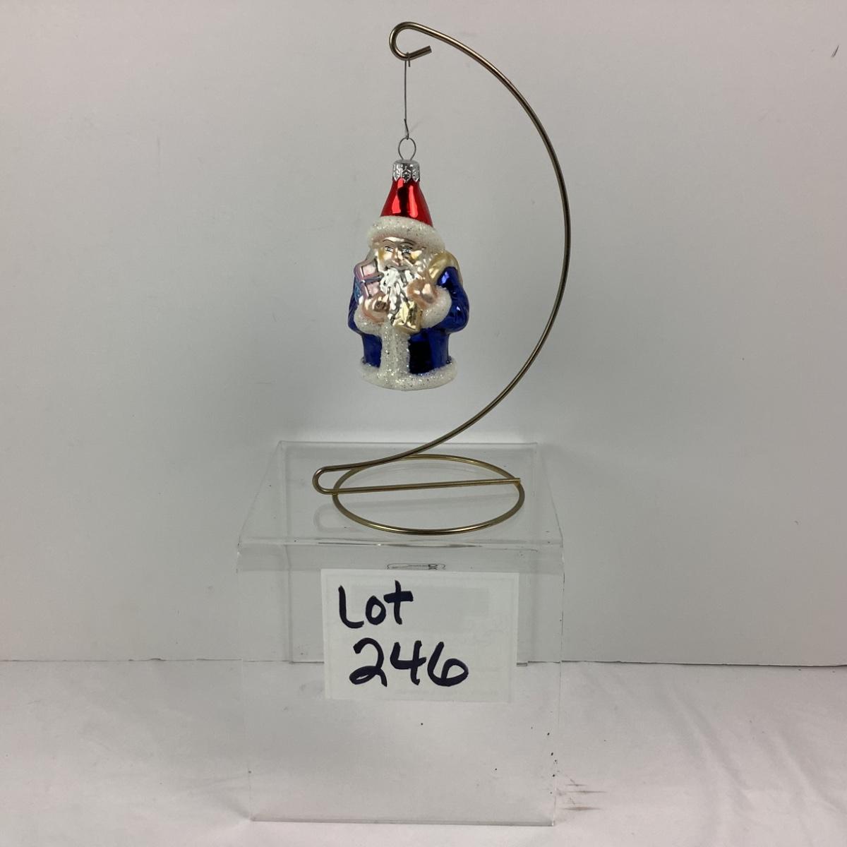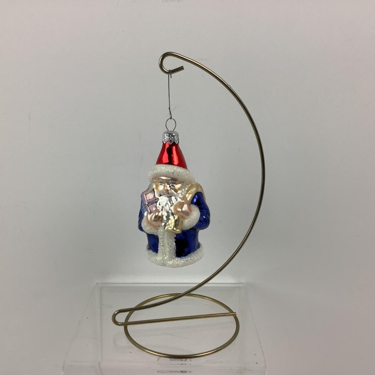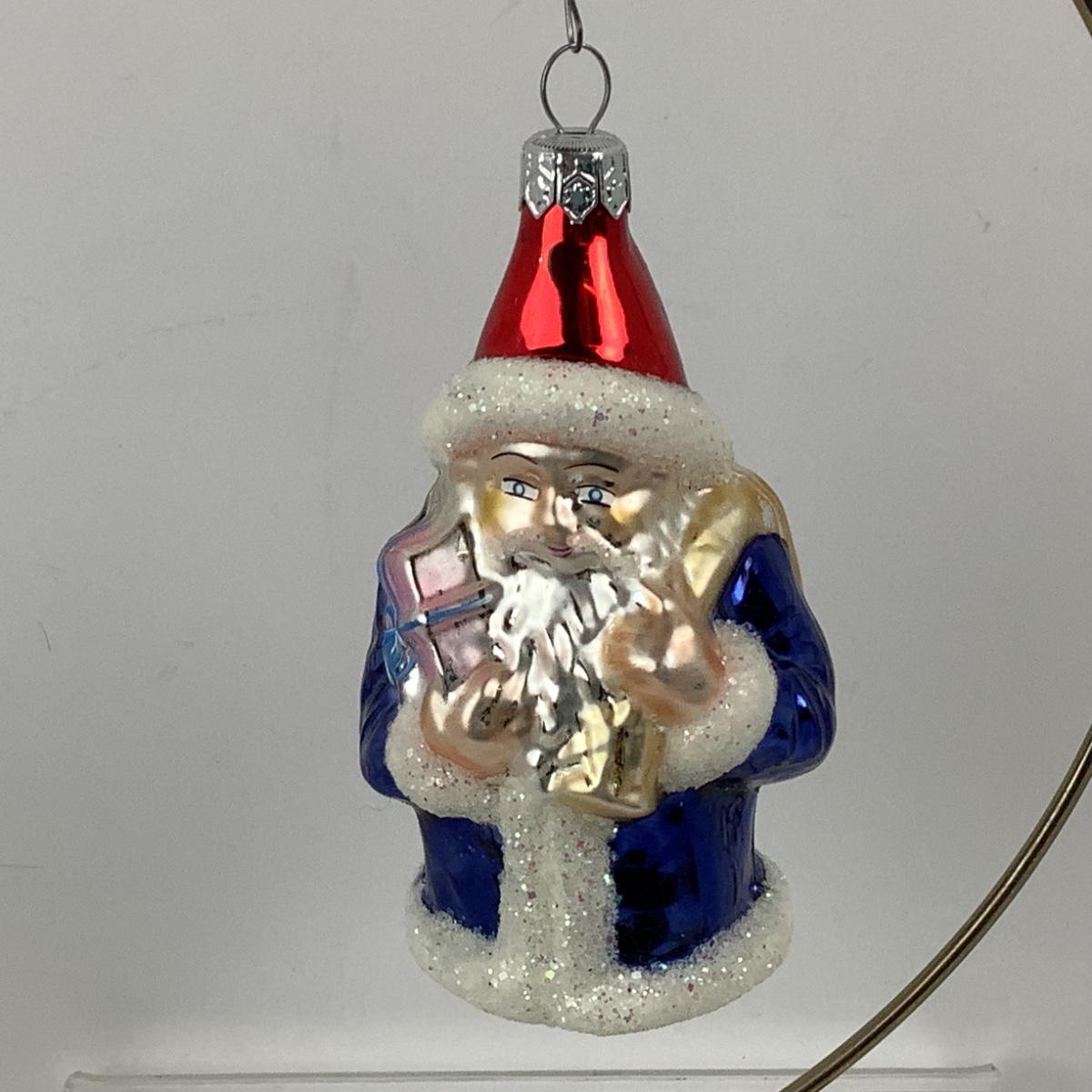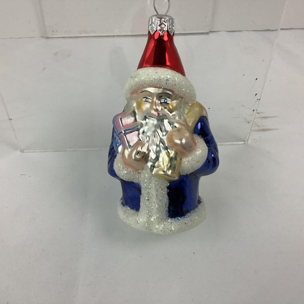 Lot 246 Vintage Christopher Radko Blue Santa Glass Ornament, Christmas Present