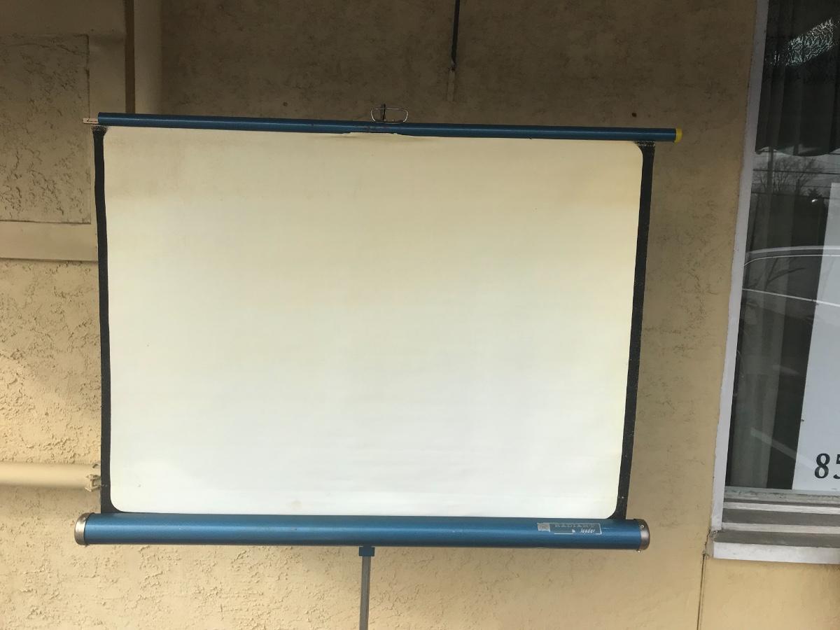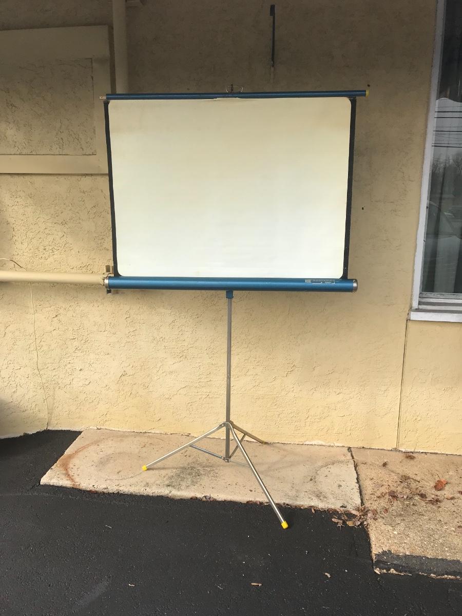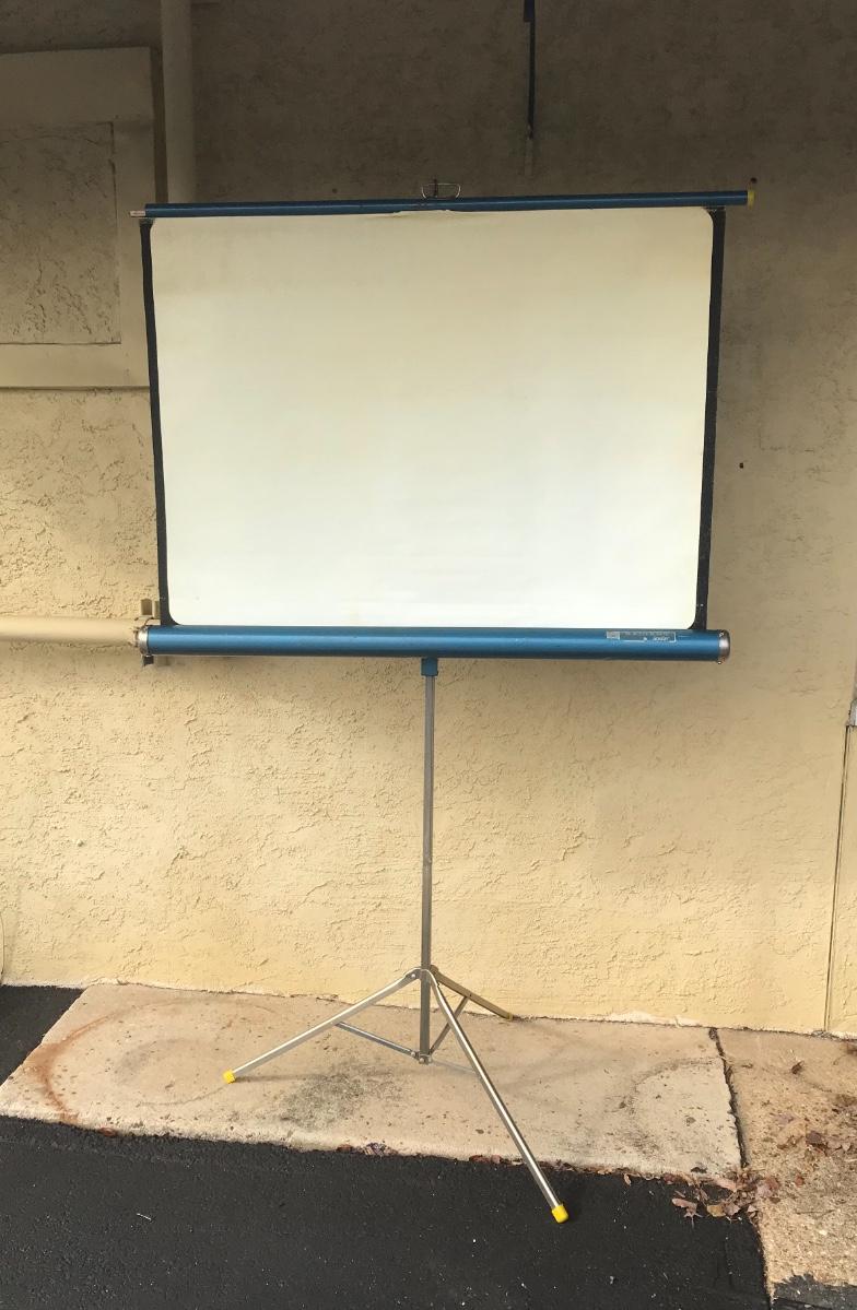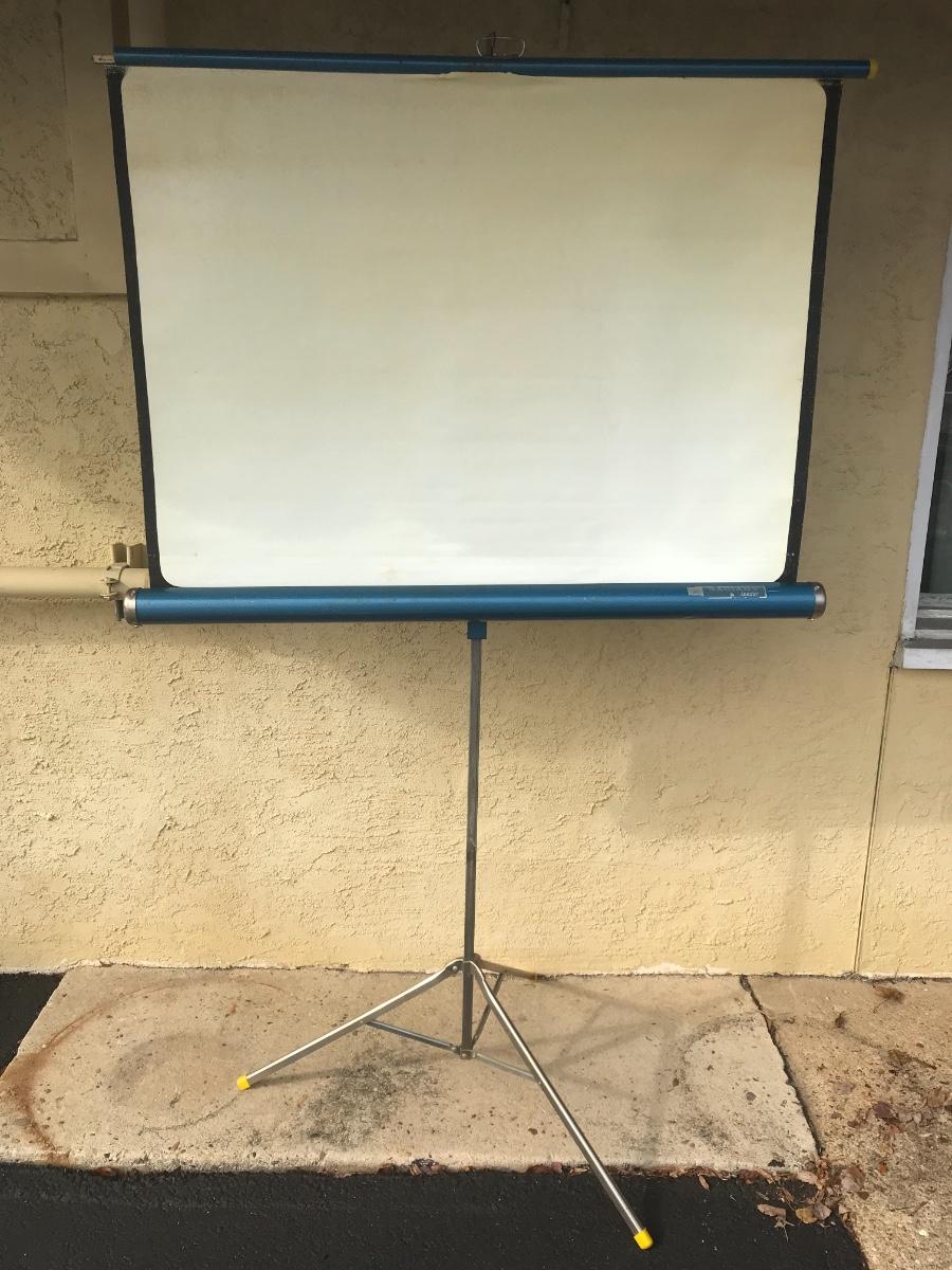 Vintage Radiant Leader Collapsible 30”X40” Movie Screen. Please see all pictures as they are the best representation of the items. The pictures show condition, measurements if taken, and what is included in the lot. Due to the large amount that we photograph and the time frame, we are not always able to take measurements. All items unless noted, are pre-owned and have been used. Please bring packing materials for your items. If you purchased furniture, you must bring help. We do not allow one person to carry large furniture out on their own. Bring help, tools and a truck for your personal safety. Company policy. Thank you.