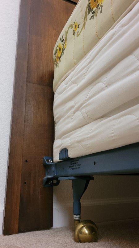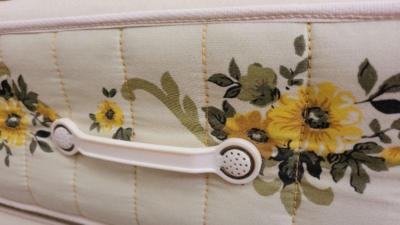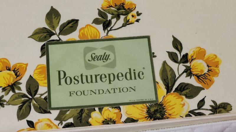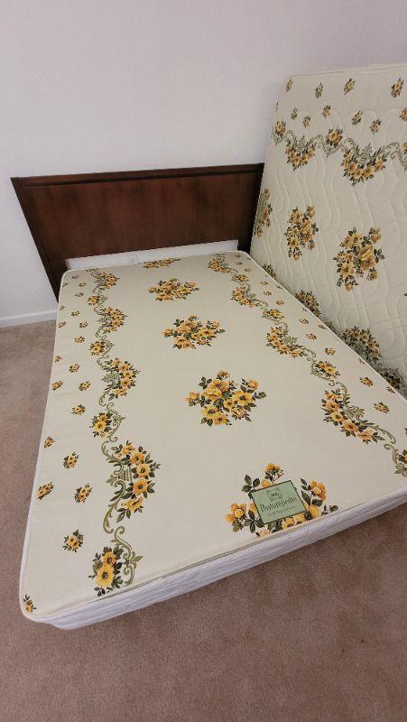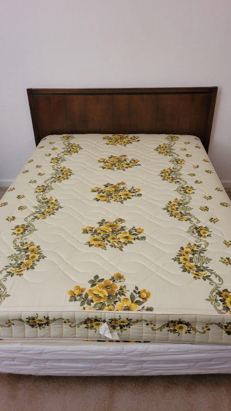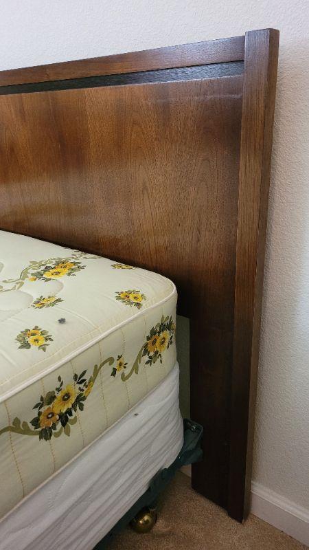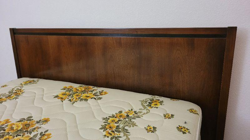 Lot 247: Vintage LANE Walnut Queen Size Mid Century Modern Bed Headboard w/ SEALY POSTURPEDIC Floral Mattress