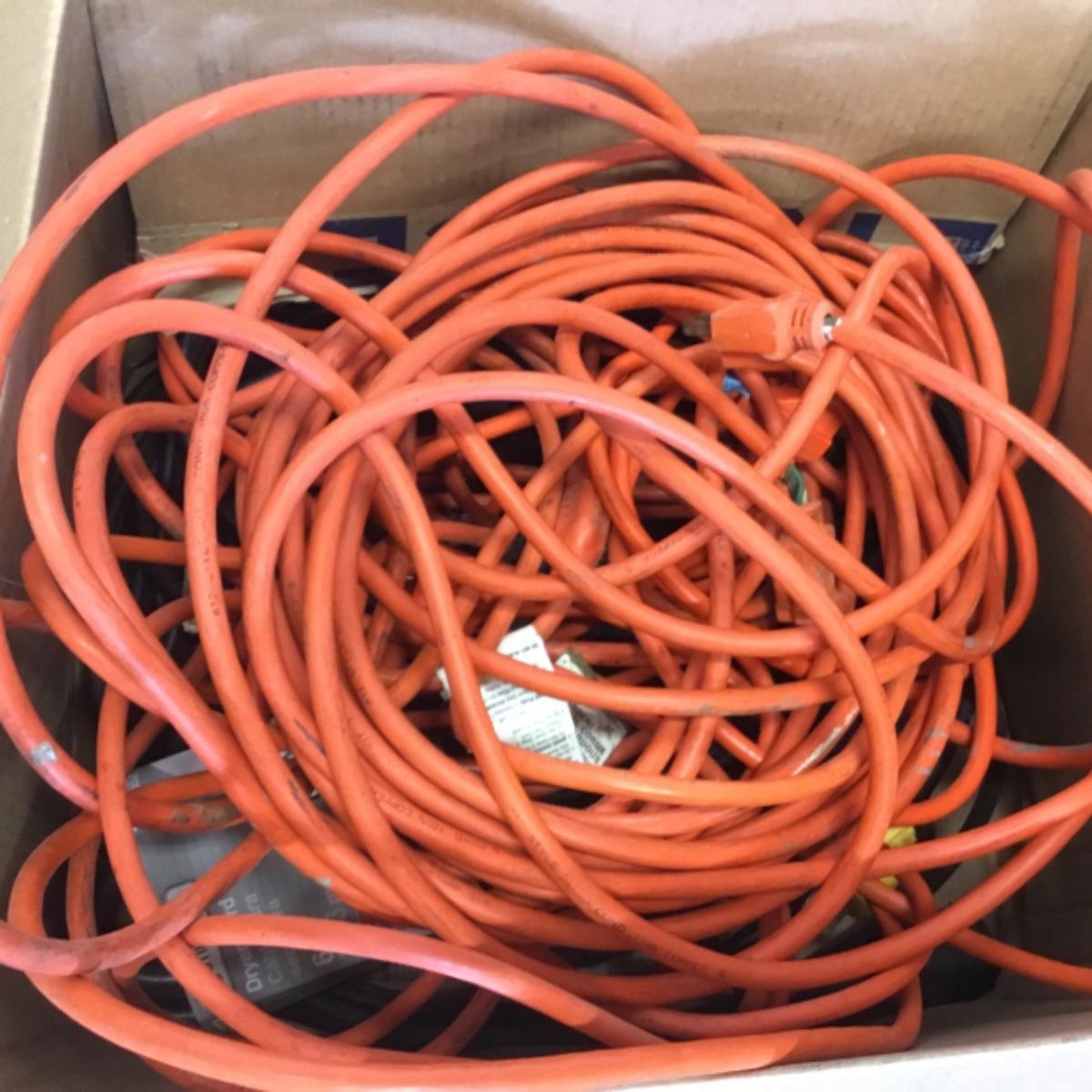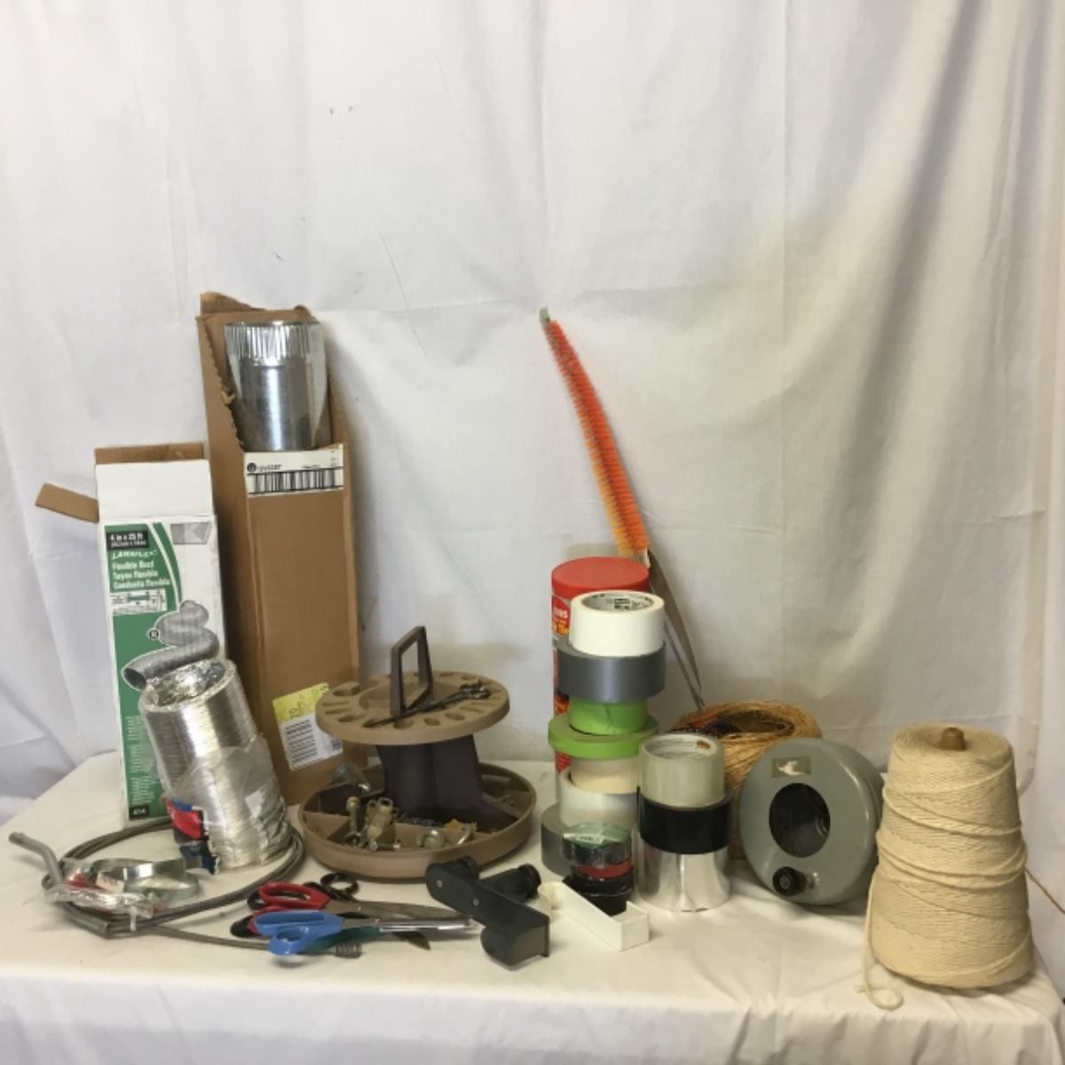 Lot includes every day needed household items! Notice long orange extension cords, brushes, zip ties, duct tape and more! See photos for details and further inventory. Local pick up only.
