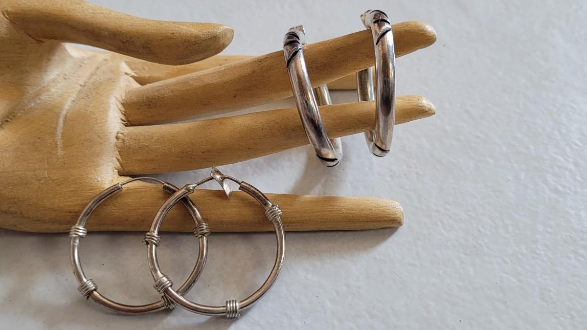 Lot 247: (2) Sterling Silver Hoop Earrings