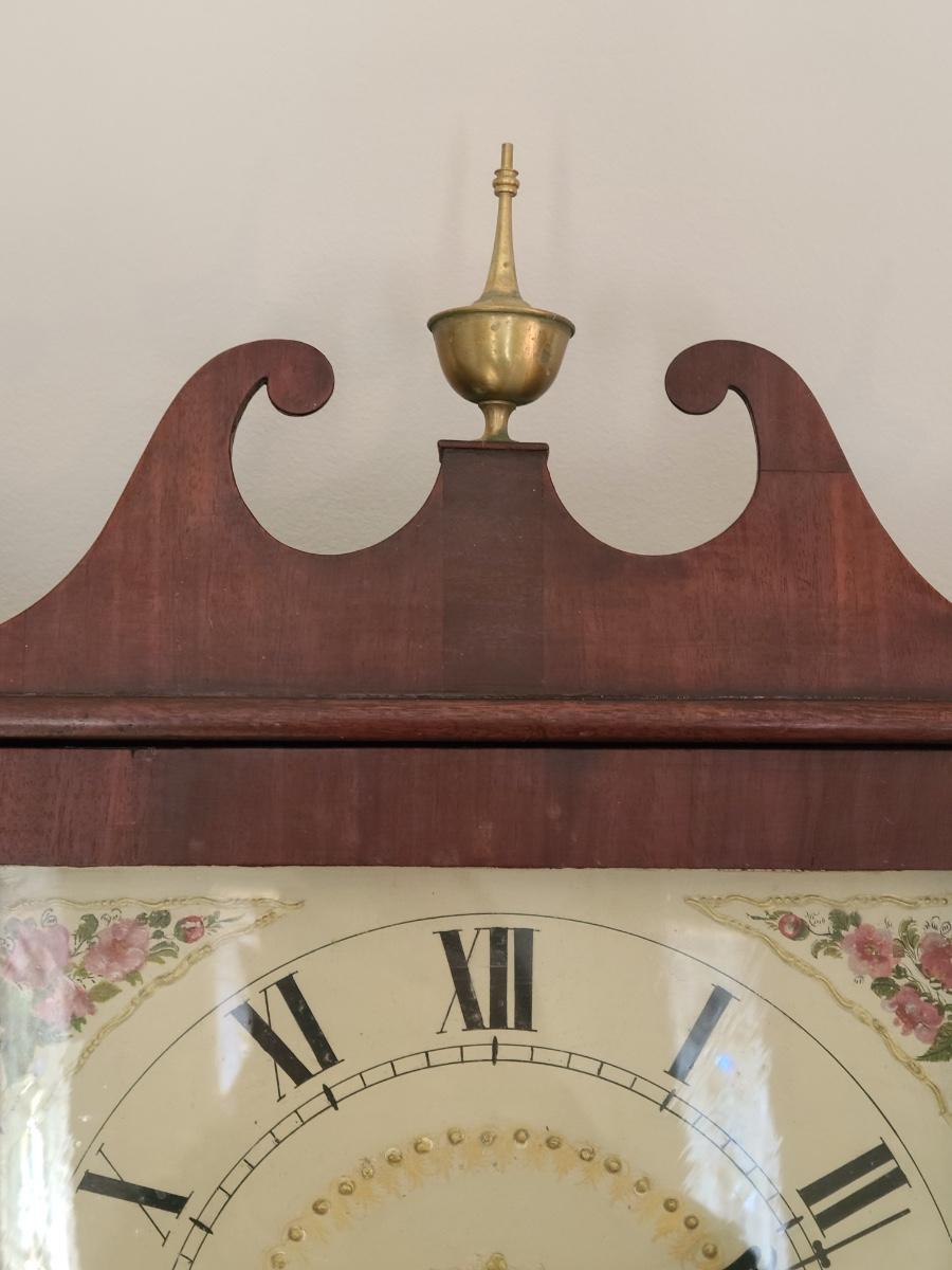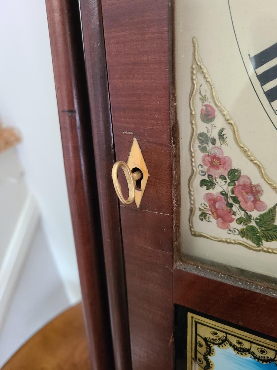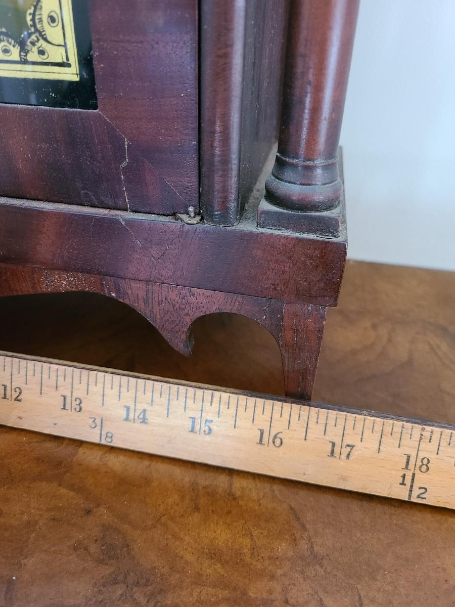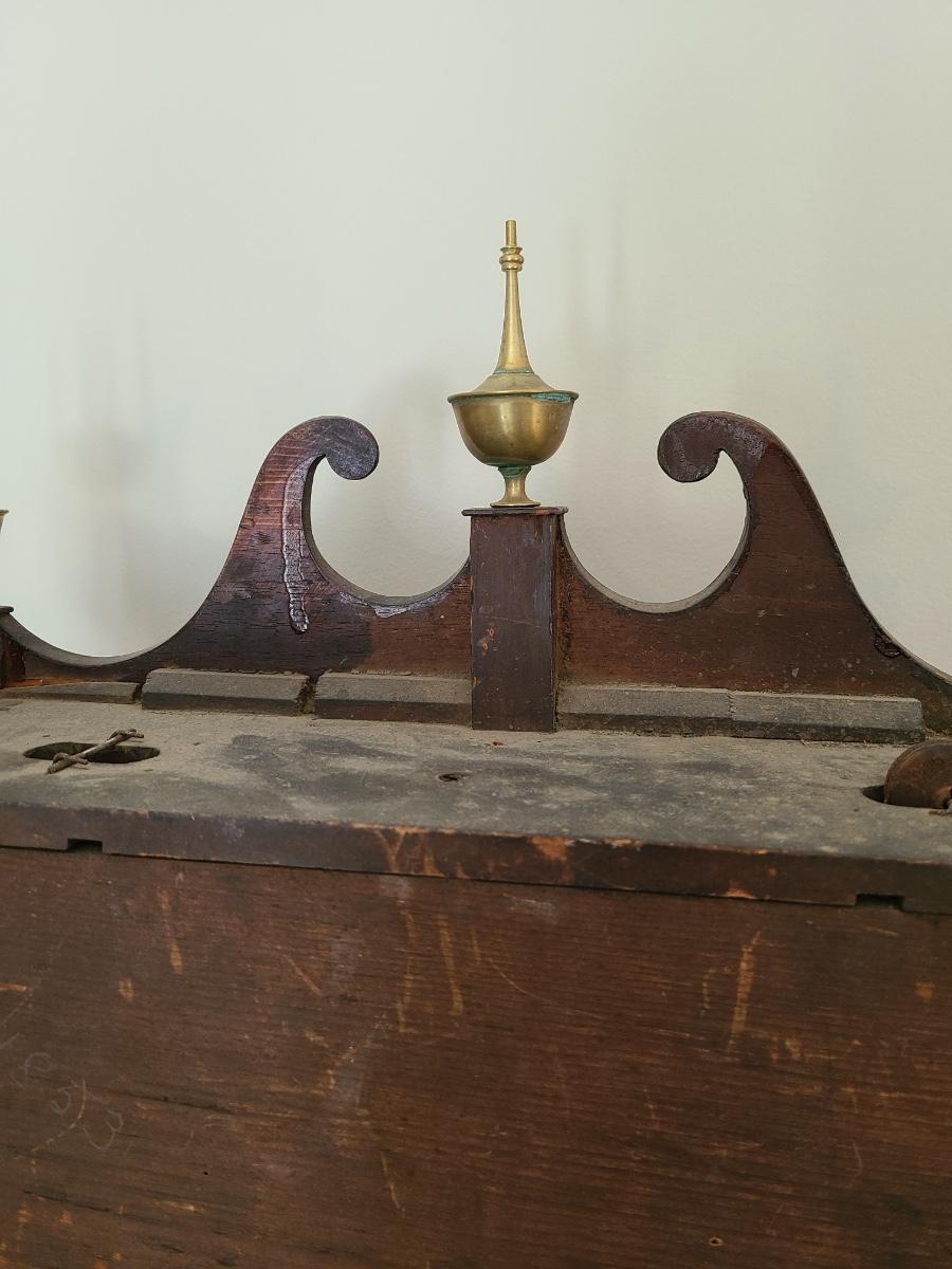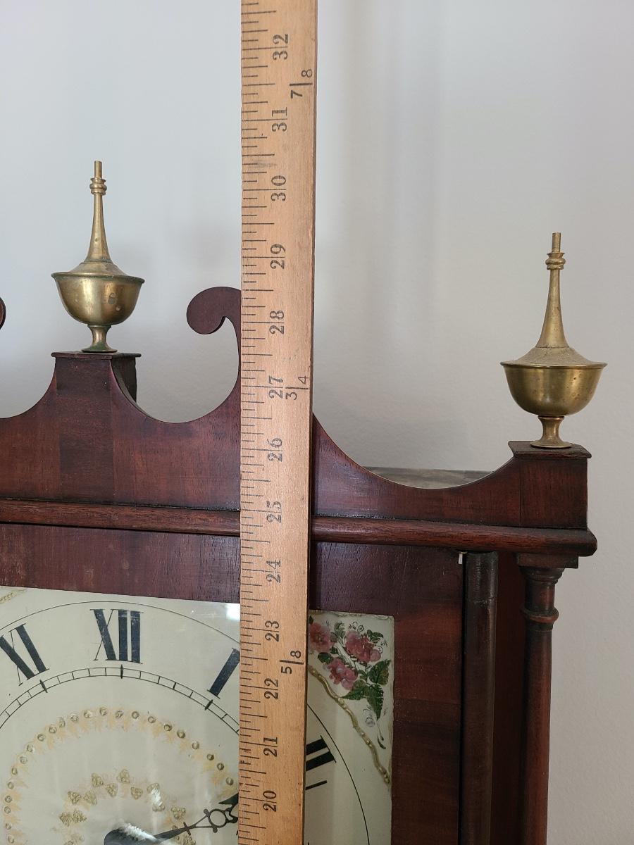 There is a reserve on this piece. This piece is amazing! This clock has its original paperwork inside on the back walls, the small key for the front, and 3 brass finials. It is rare to find this piece complete, intact, and working. The finials may not be original. The clock does work. It does not have a crank key included. The chime sounds perfect! There is a reserve set on this clock. A piece in average condition recently sold as parts online and sold for almost $800. A chance to own a piece of history! Please see all pictures as they are the best representation of the items. The pictures show condition, measurements if taken, and what is included in the lot. Due to the large amount that we photograph and the time frame, we are not always able to take measurements. All items unless noted, are pre-owned and have been used. If you purchased furniture, you must bring help. We do not allow one person to carry large furniture out on their own. Bring help, tools and a truck for the safety of our client’s homes, and your personal safety. Company policy. Thank you.