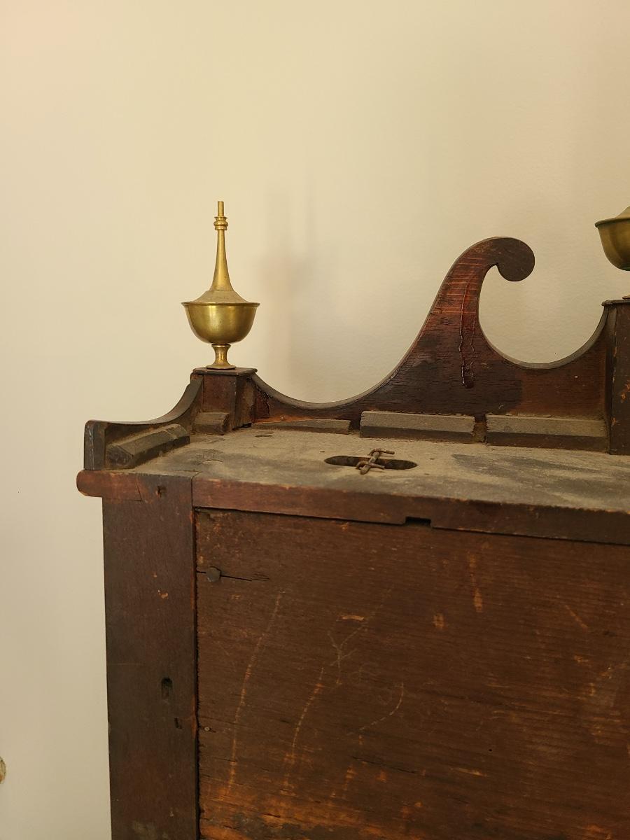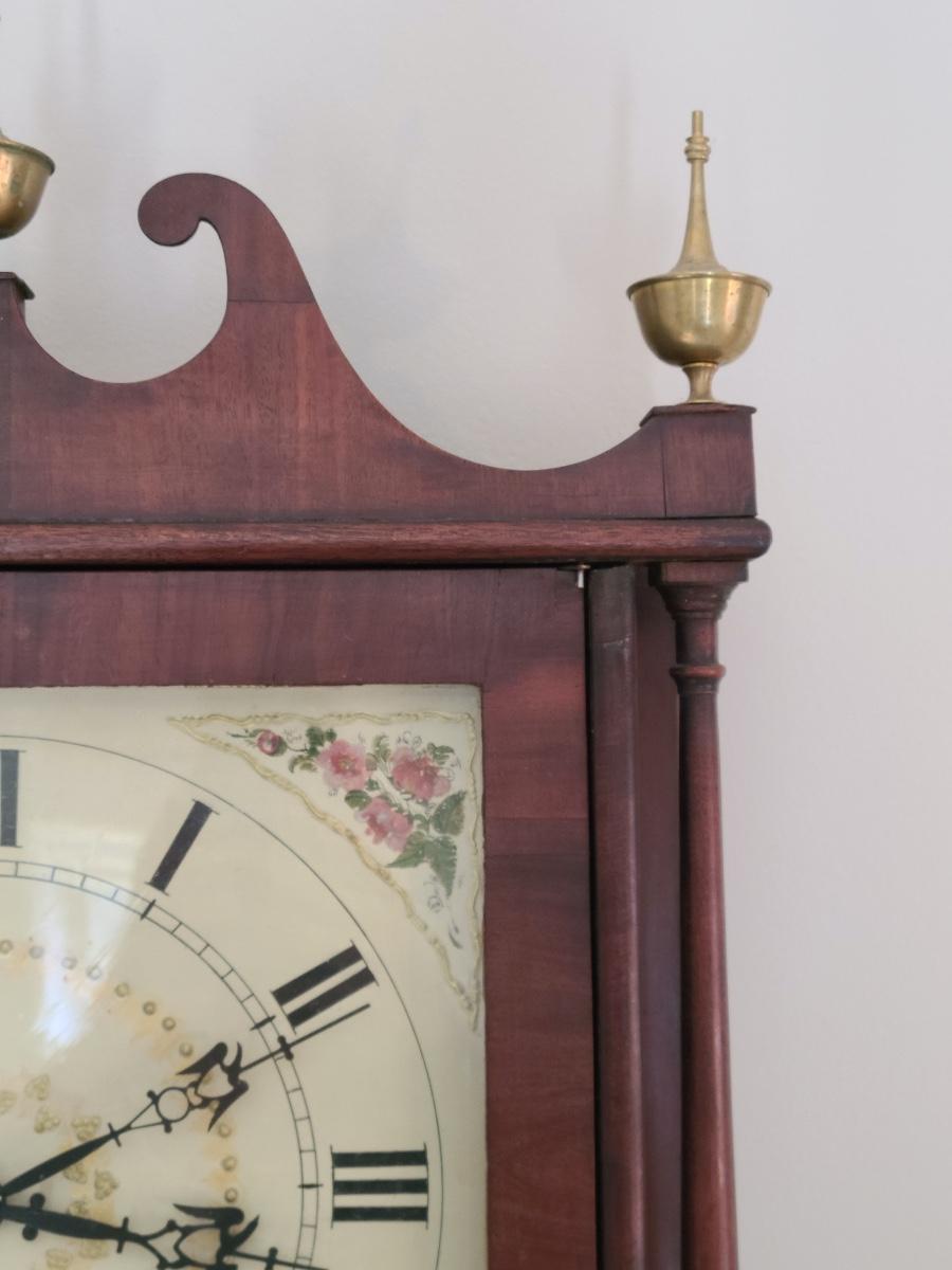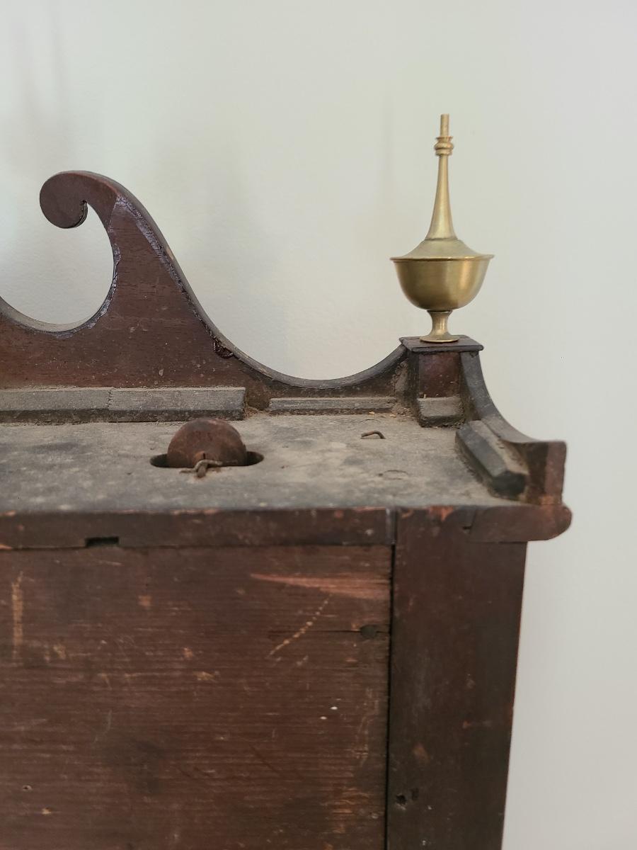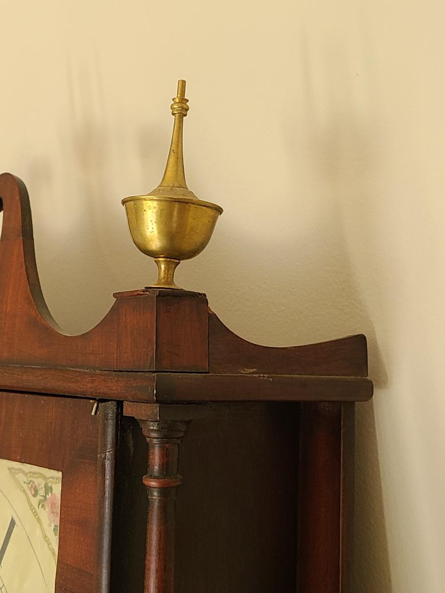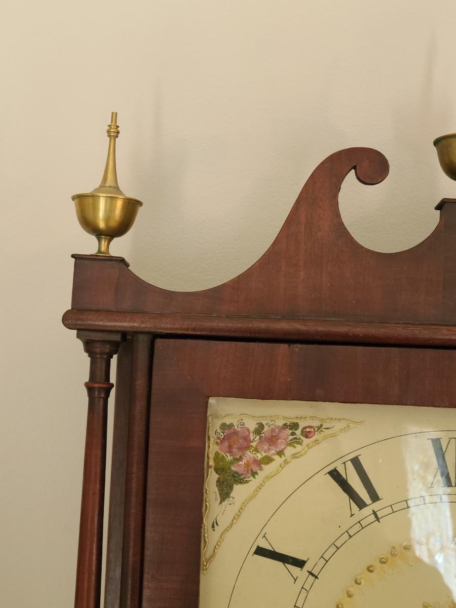 There is a reserve on this piece. This piece is amazing! This clock has its original paperwork inside on the back walls, the small key for the front, and 3 brass finials. It is rare to find this piece complete, intact, and working. The finials may not be original. The clock does work. It does not have a crank key included. The chime sounds perfect! There is a reserve set on this clock. A piece in average condition recently sold as parts online and sold for almost $800. A chance to own a piece of history! Please see all pictures as they are the best representation of the items. The pictures show condition, measurements if taken, and what is included in the lot. Due to the large amount that we photograph and the time frame, we are not always able to take measurements. All items unless noted, are pre-owned and have been used. If you purchased furniture, you must bring help. We do not allow one person to carry large furniture out on their own. Bring help, tools and a truck for the safety of our client’s homes, and your personal safety. Company policy. Thank you.