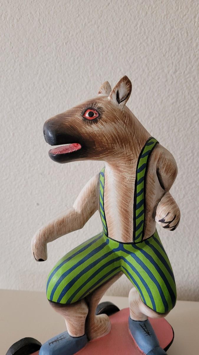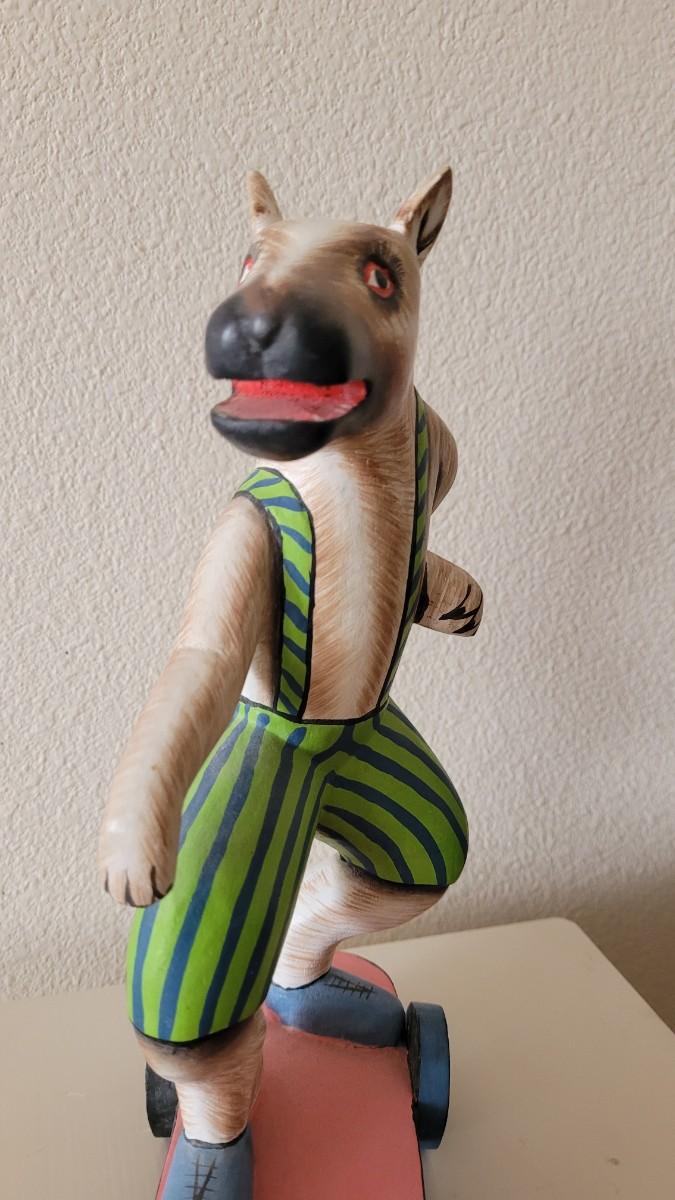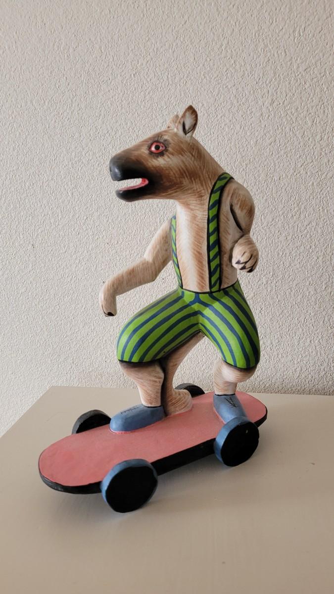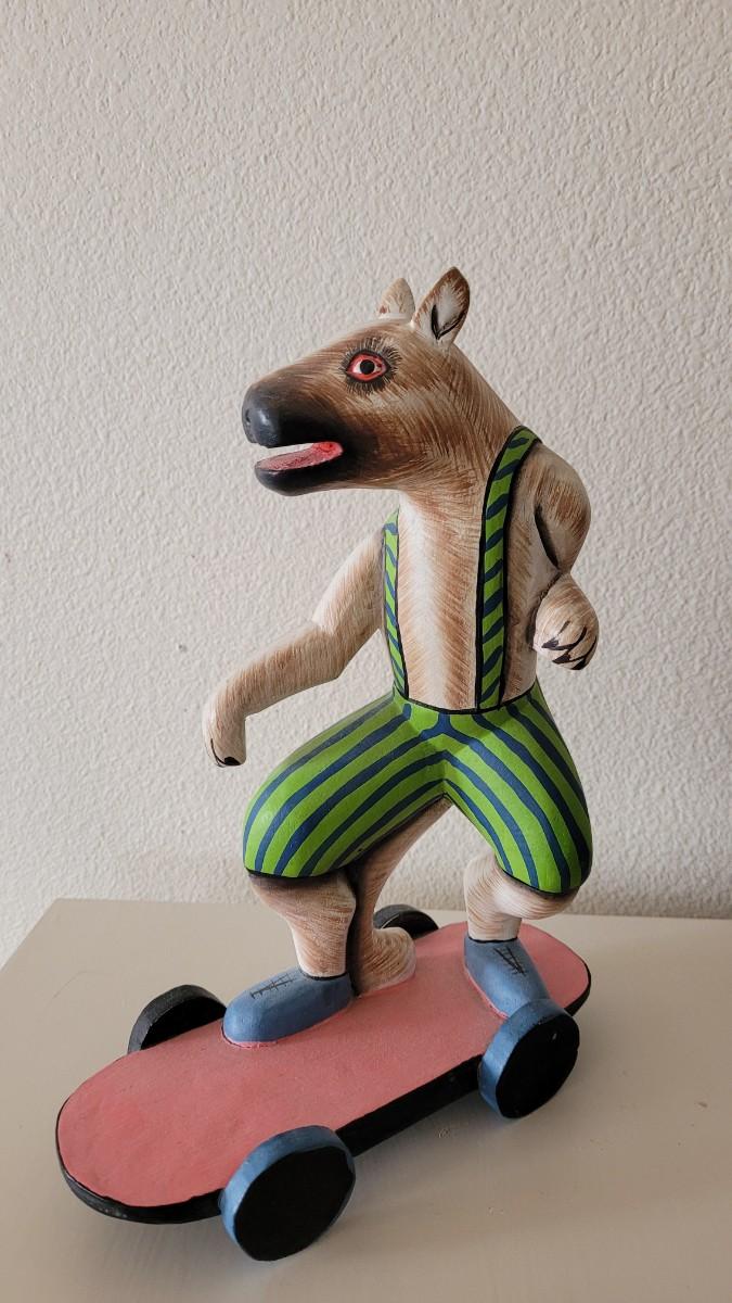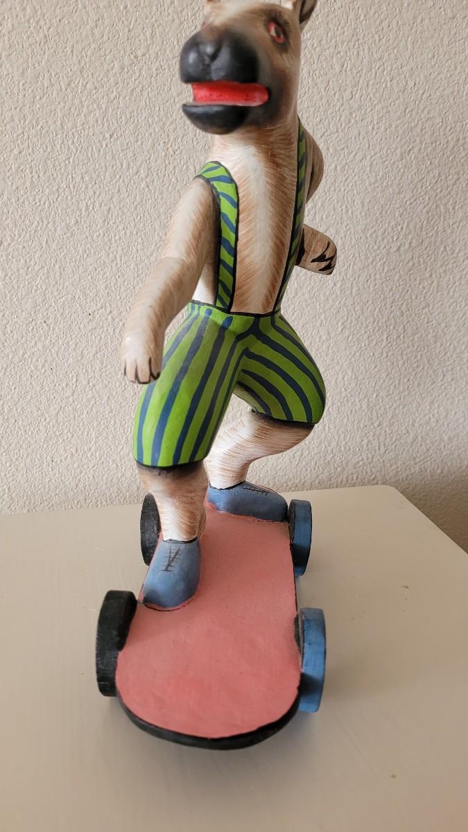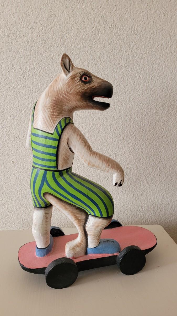 Lot 247: Wood Folk Art Animal Riding a Skateboard