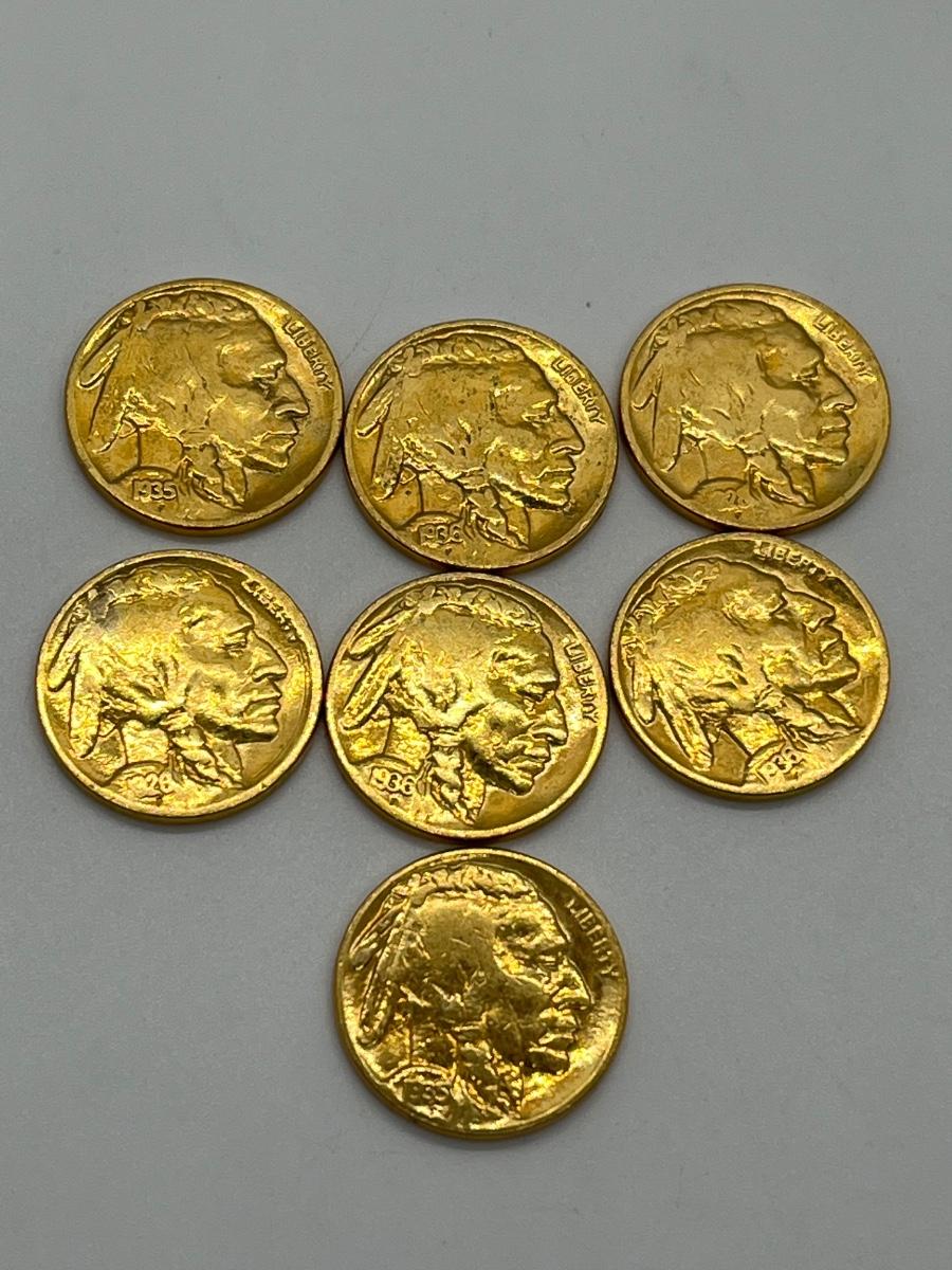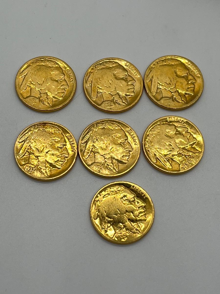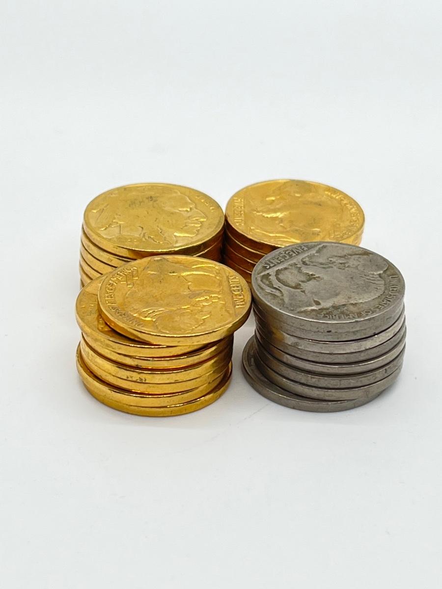 LOT 247: Collection of Buffalo Nickels - 21 24K Gold Plated and 8 Regular