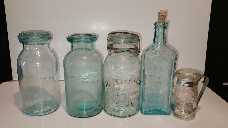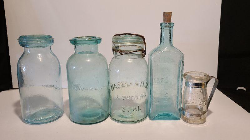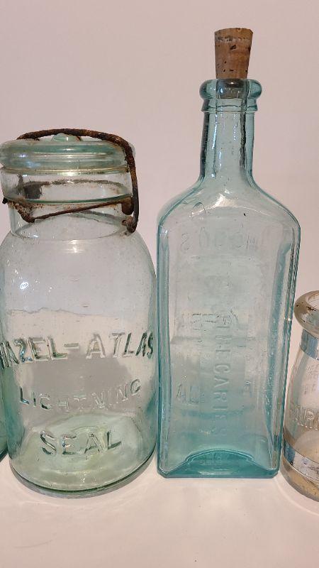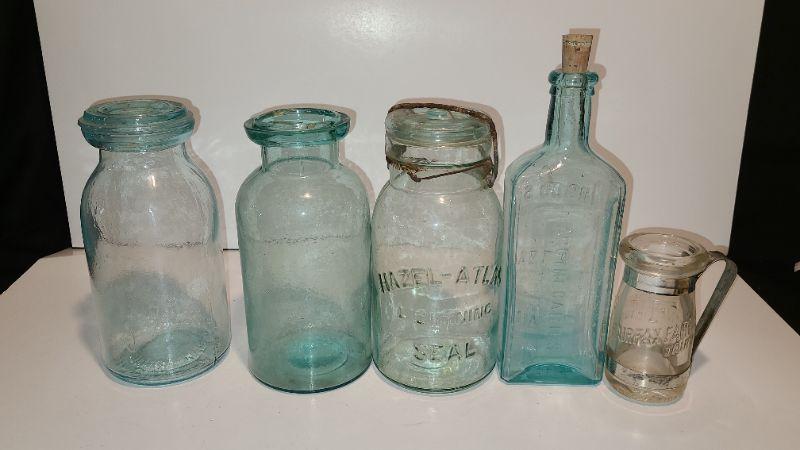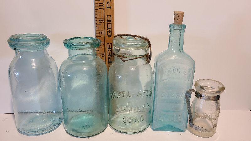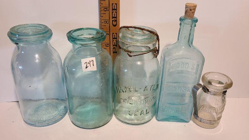 Lot 247: Antique Bottles/Jars  (Union Fruit Jar, Hazel Atlas, Hoods, Fairfax Dairy and more)
