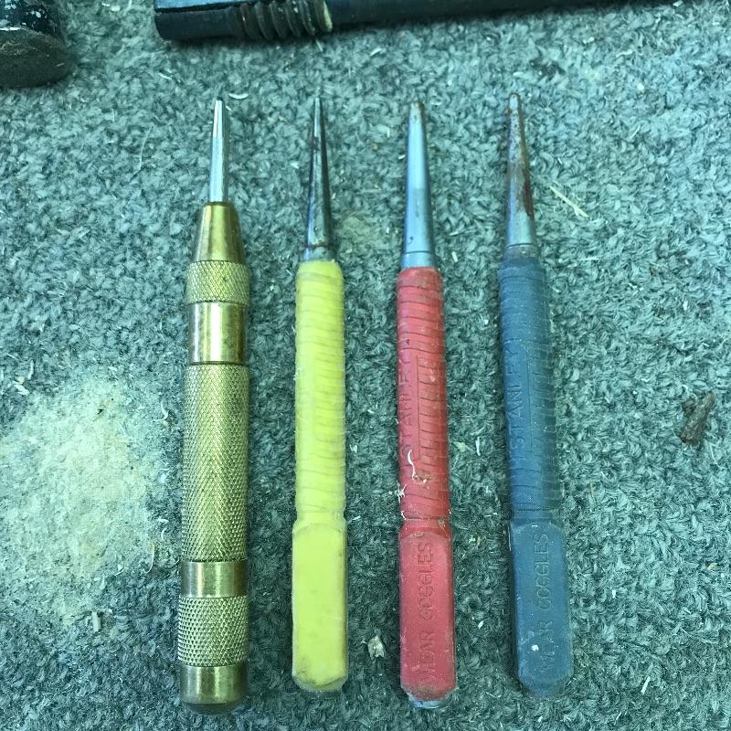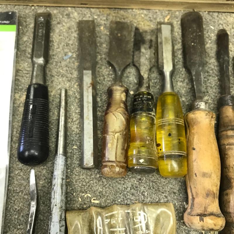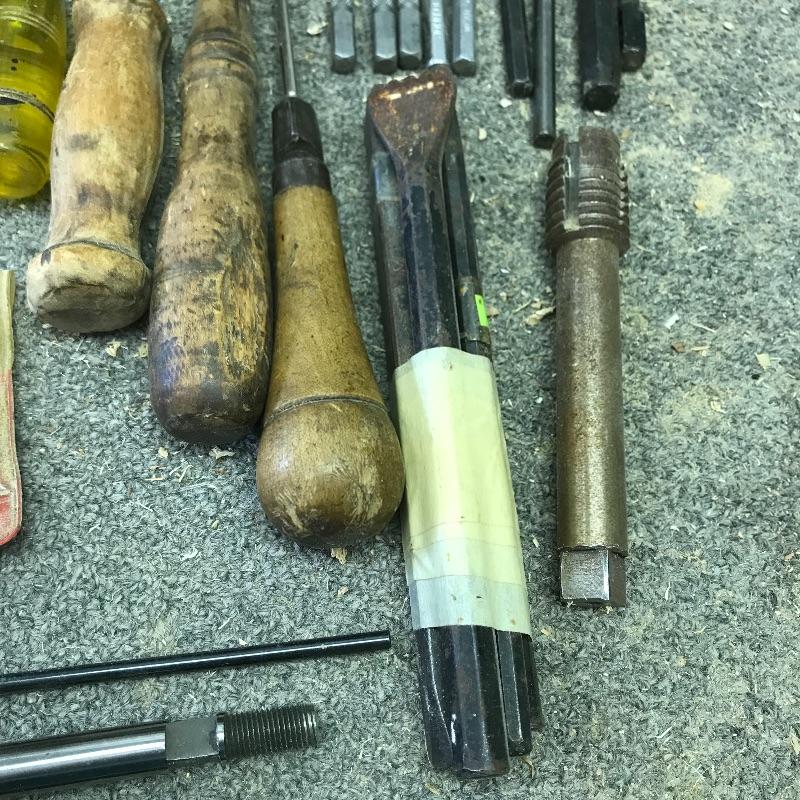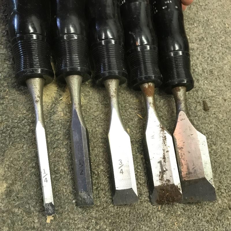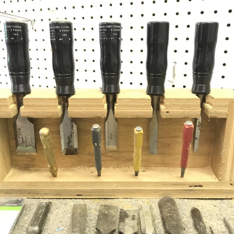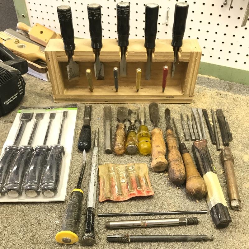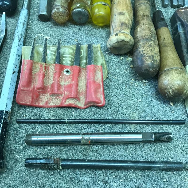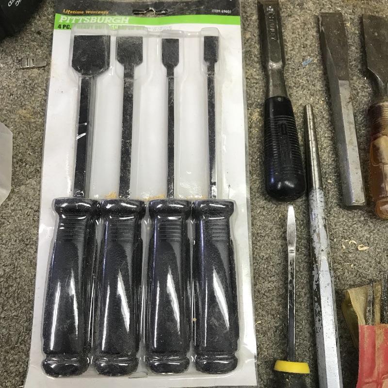 Large collection of various sized chisels and punches. Lot includes Craftsman set numbered 9 36821 through 25. Includes newer and more vintage tools. No shipping. See photos.