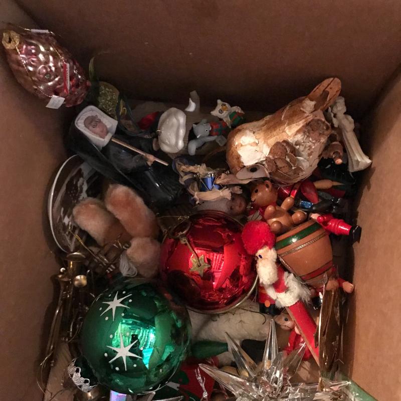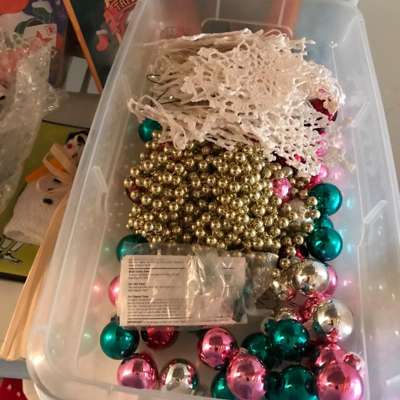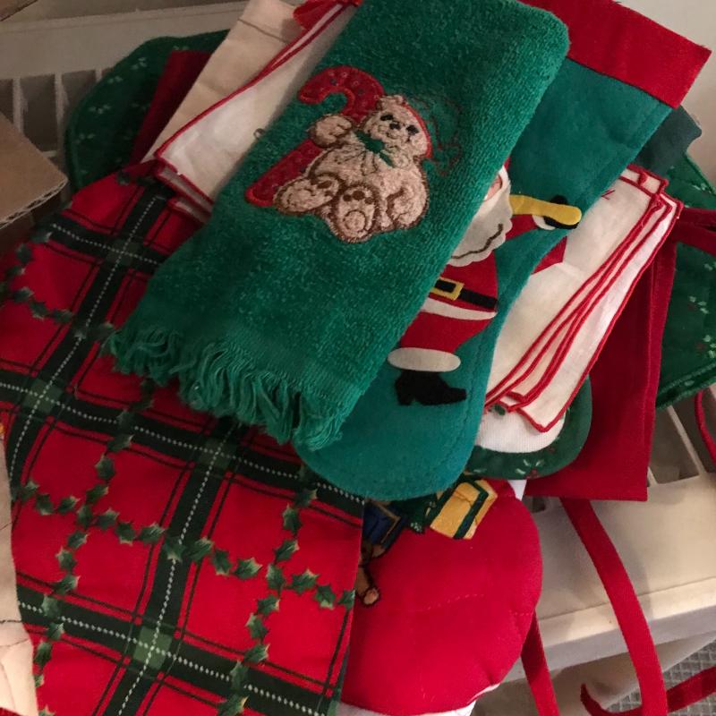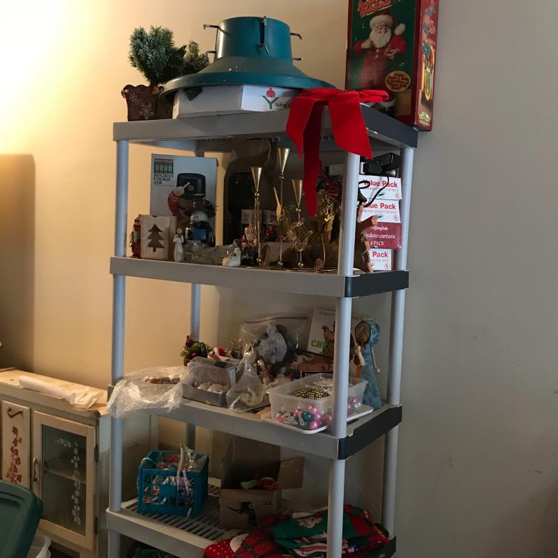 This large lot has everything you need to decorate your house this Christmas, inside and out! Ornaments, mini Christmas trees, wreath, holiday cookie jar, kitchen linens, candle holders, wrapping supplies, tree stand, nativity, and so much more. See pics. Local pickup only.