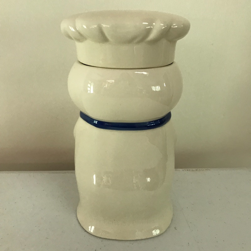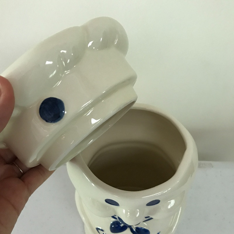 Add some charm to your kitchen with this Pilsbury Doughboy cookie jar. He is a good sized container for lots of cookies measuring 10” tall.