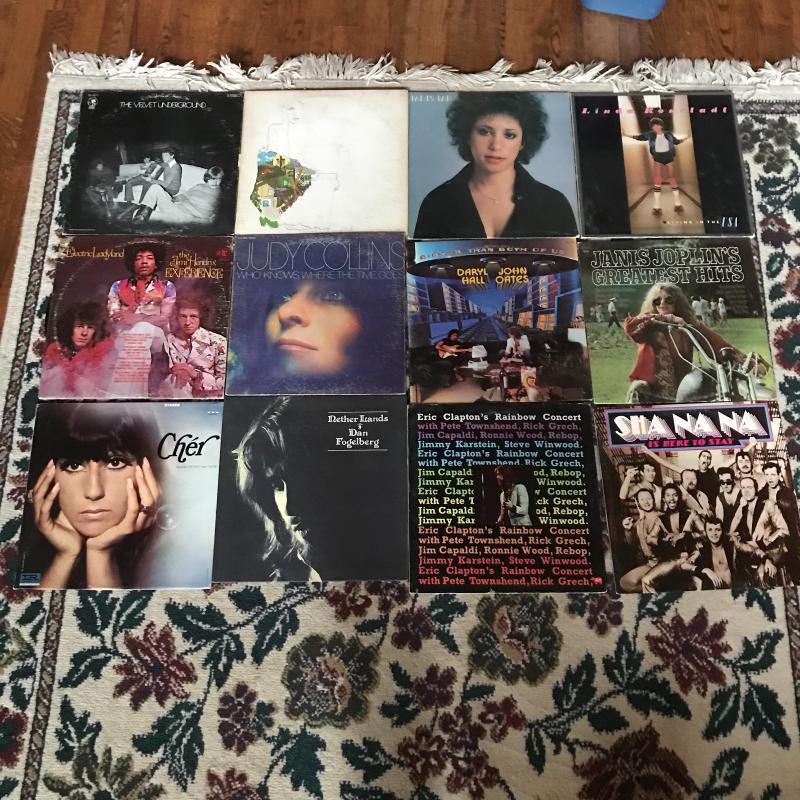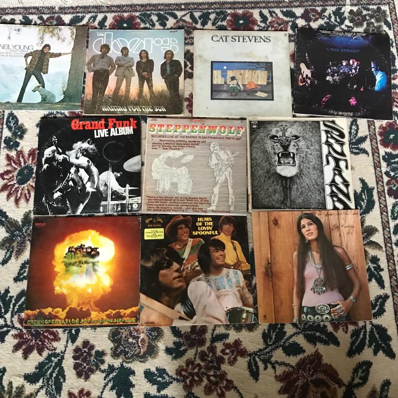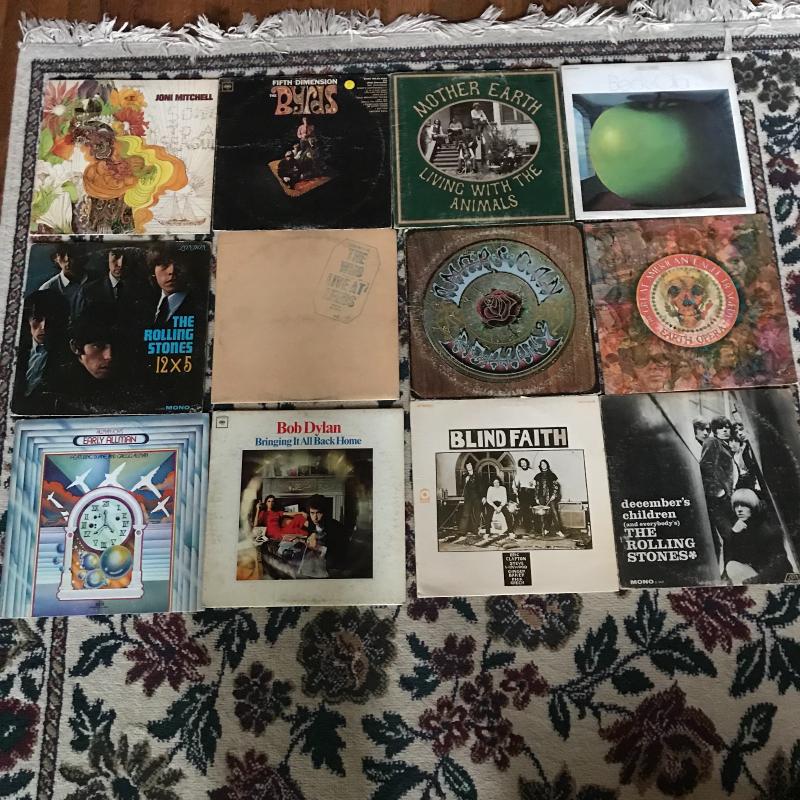 Close to 100 albums of artists like Janis Joplin, Greatful Dead, Beck, Grand Funk, Steppinwolf, Doors, Rolling Stones and much more. Pix are not of each album but gives an idea of collection. Records and album covers are worn but still usable.