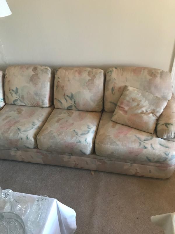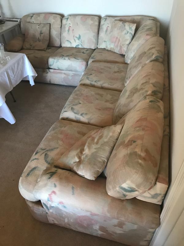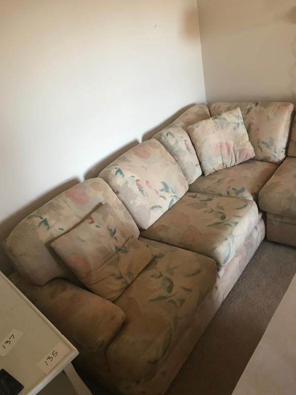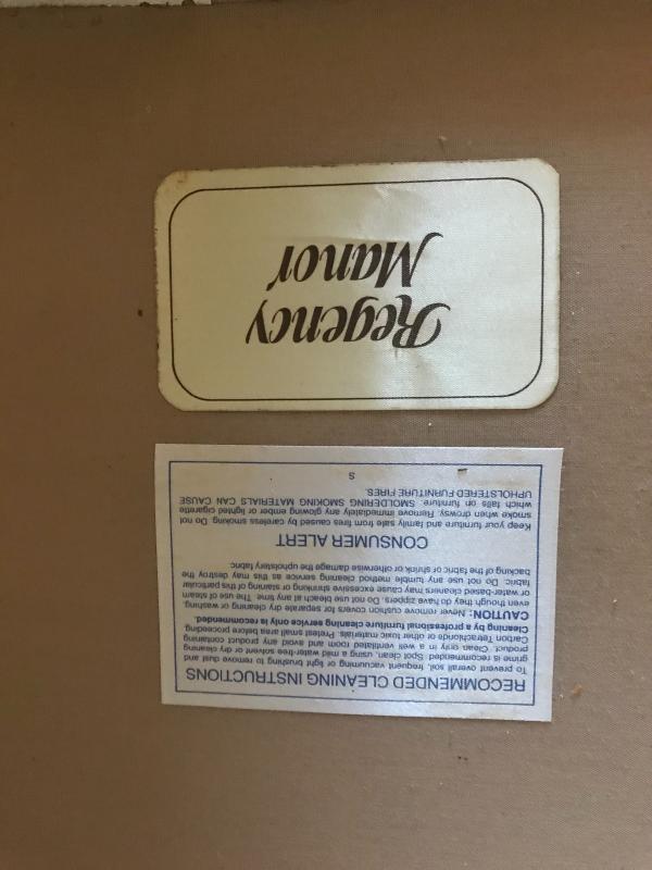 Regency Manor 1980’s style sectional sofa. Two pieces each measuring 76” x 36” x 32”. This lot will have to be moved up one flight of stairs and is only available for local pick up in Asheville, NC.