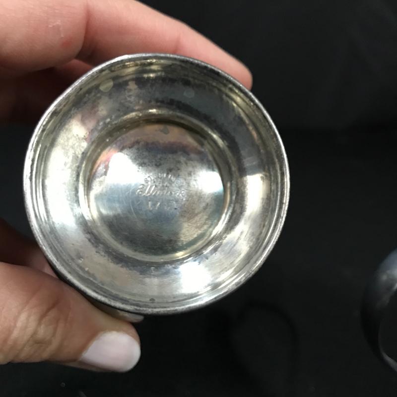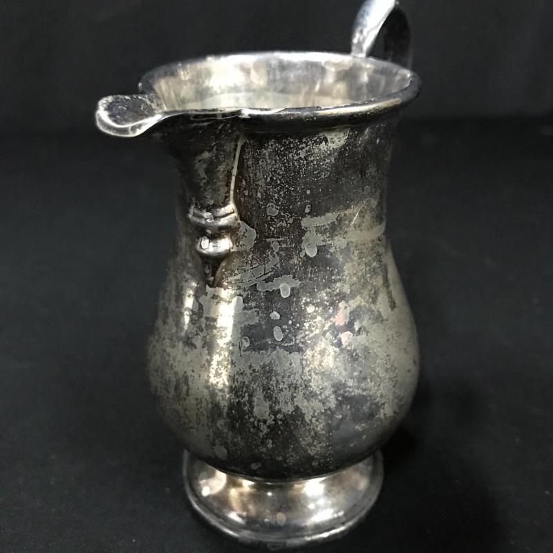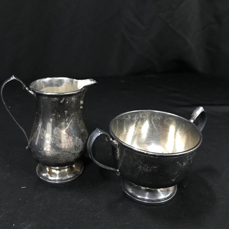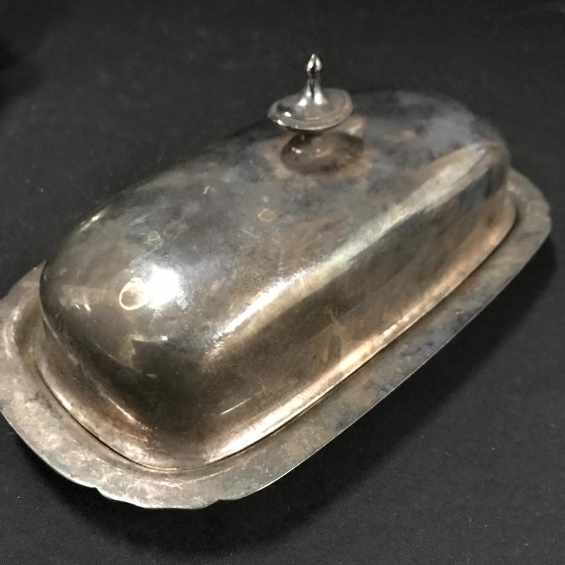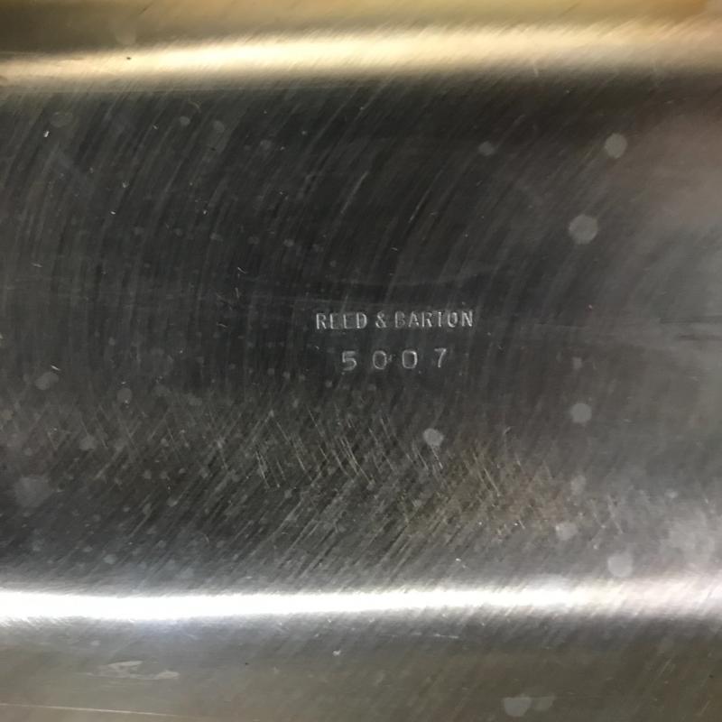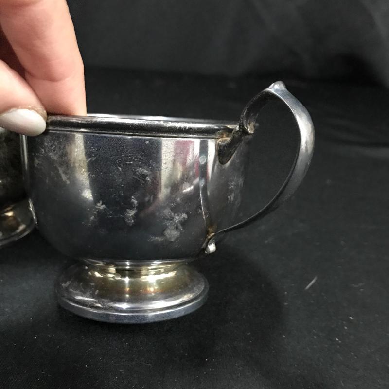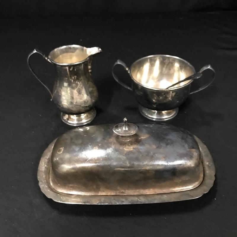Creamer and Sugar set marked “Sterling by Elmore 1732”. Spoon has a an initial engraved in handle and is marked Sterling. Butter Dish does not say sterling but is made by Reed and Barton. Sterling pieces weigh 8.5oz. Starting price is approximate melt value. Shipping or local pick up in Asheville