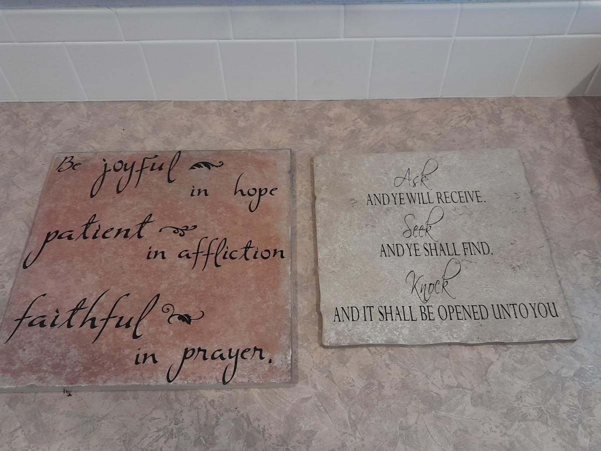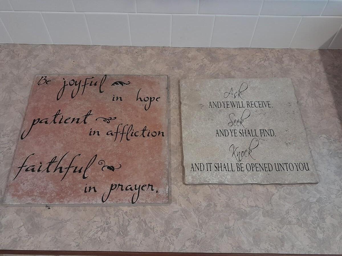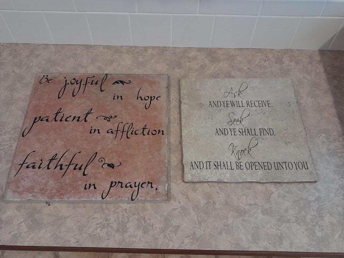 TWO TILES WITH RELIGIOUS ENGRAVINGS.