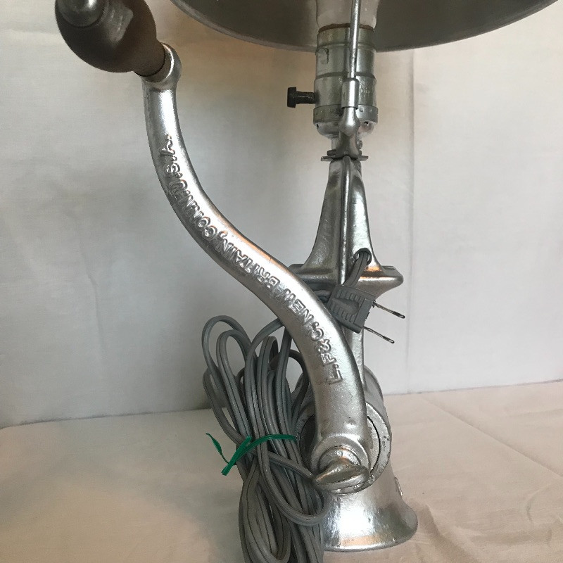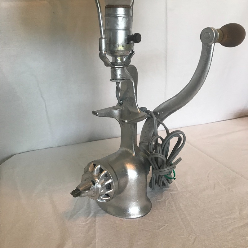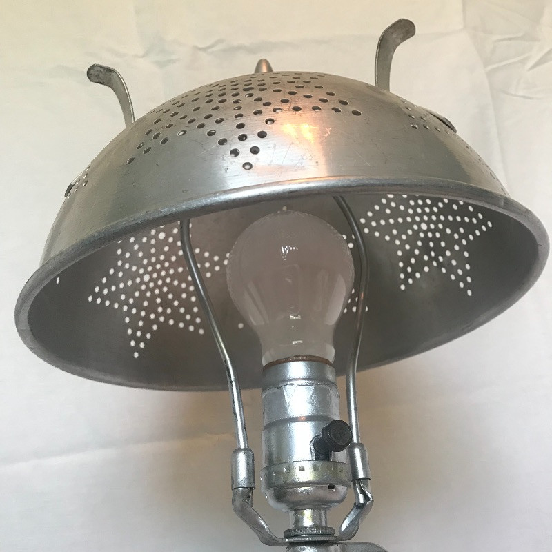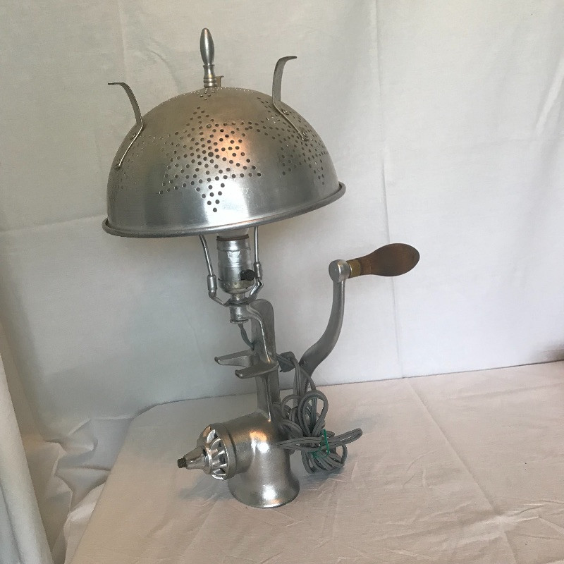 Check out this totally unique lamp that is made from a colander and meat grinder and spray painted silver. Looks brand new. Great conversation piece in the kitchen or Kitchenette. Local pick up only..