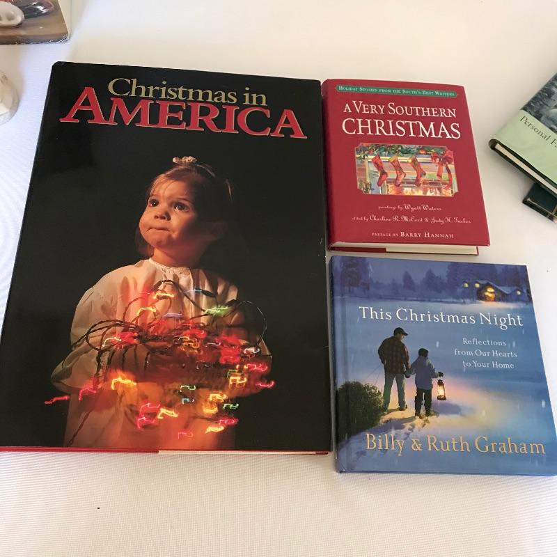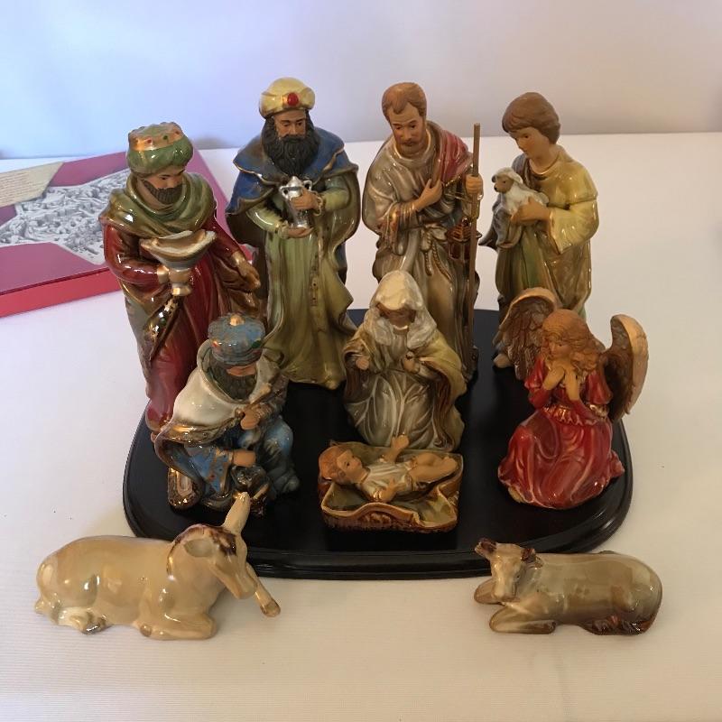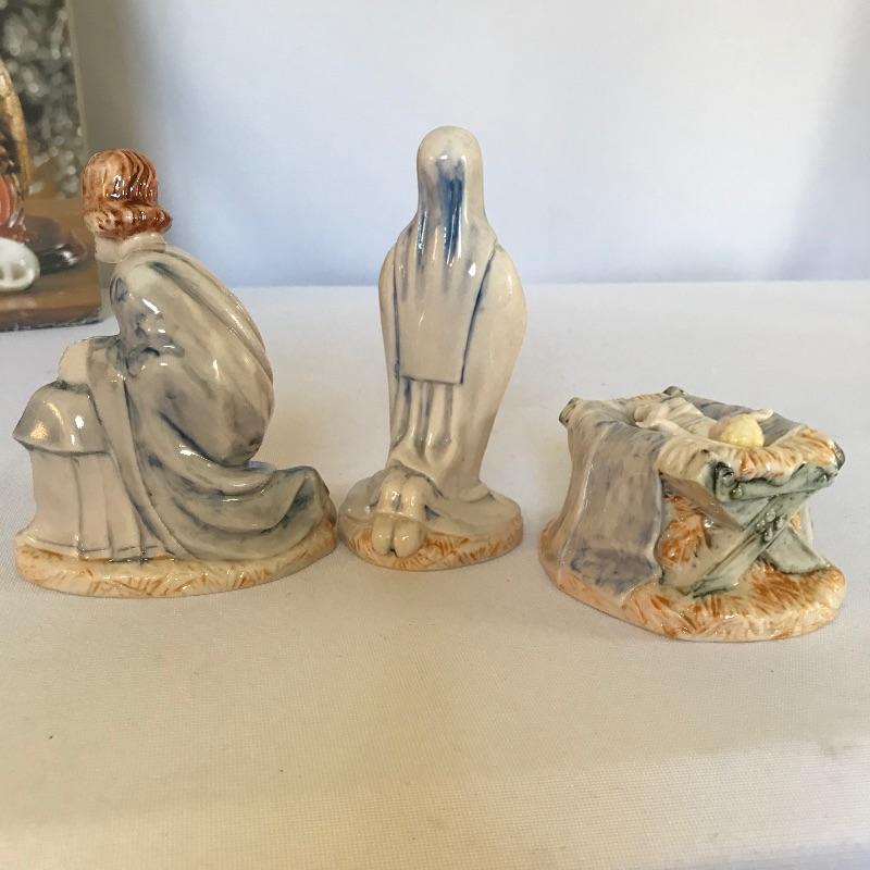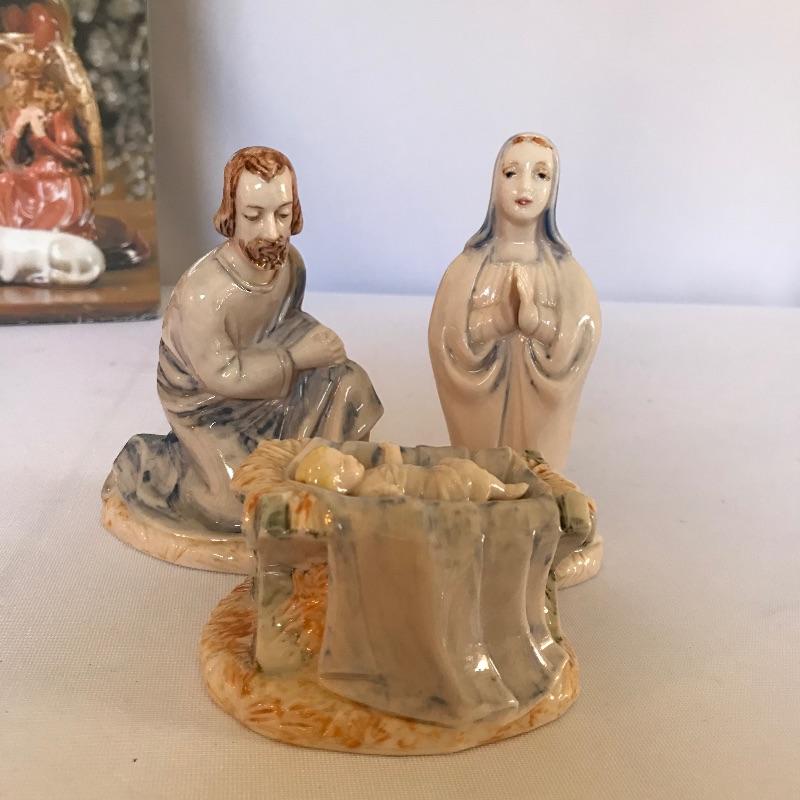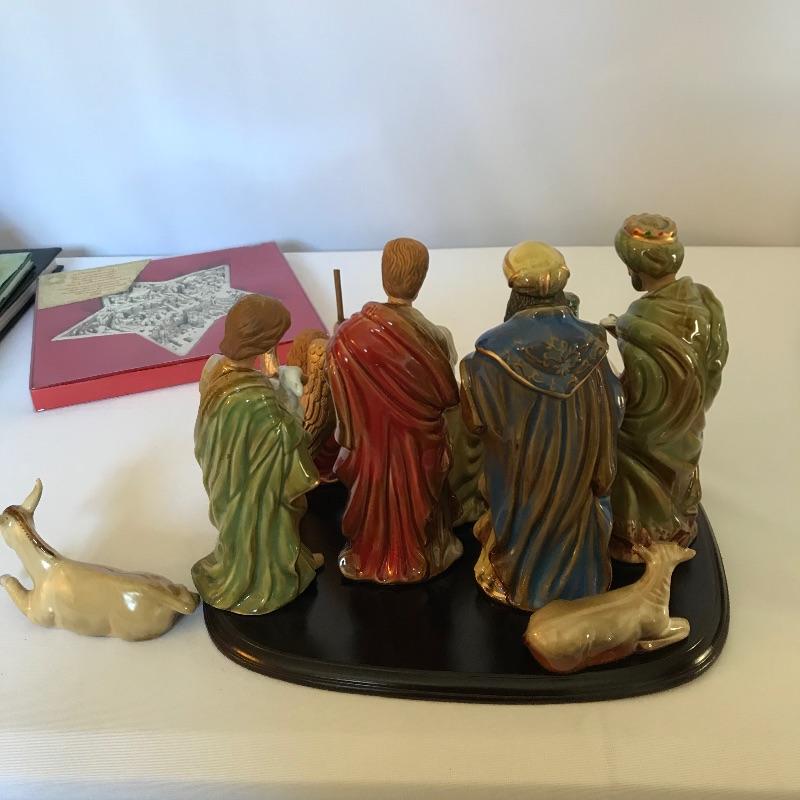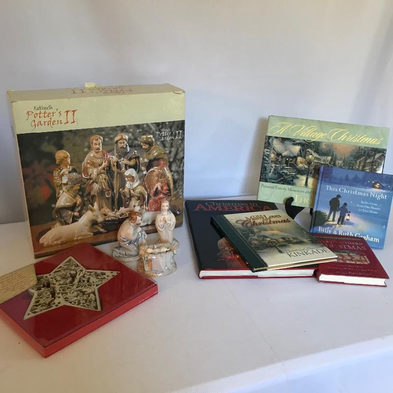 Bringing the spirit of the season to you! Nice Mary, Joseph, Jesus figurines signed Jean Koll 1967 and also a newer Kirkland’s Potter’s Garden II nativity figurines. Joseph stands 7.5” tall. Also, from the Christian Bookstores, a star wall art that appears to be created from a heavy plaster material. Five books including two Thomas Kinkade and more! See photos. No shipping.