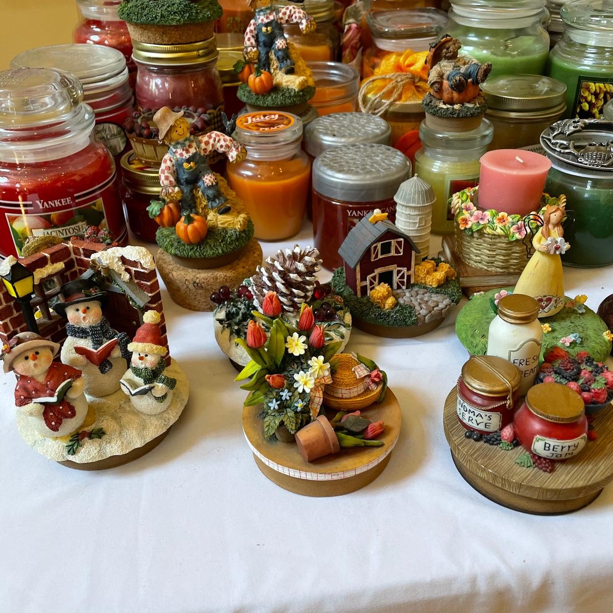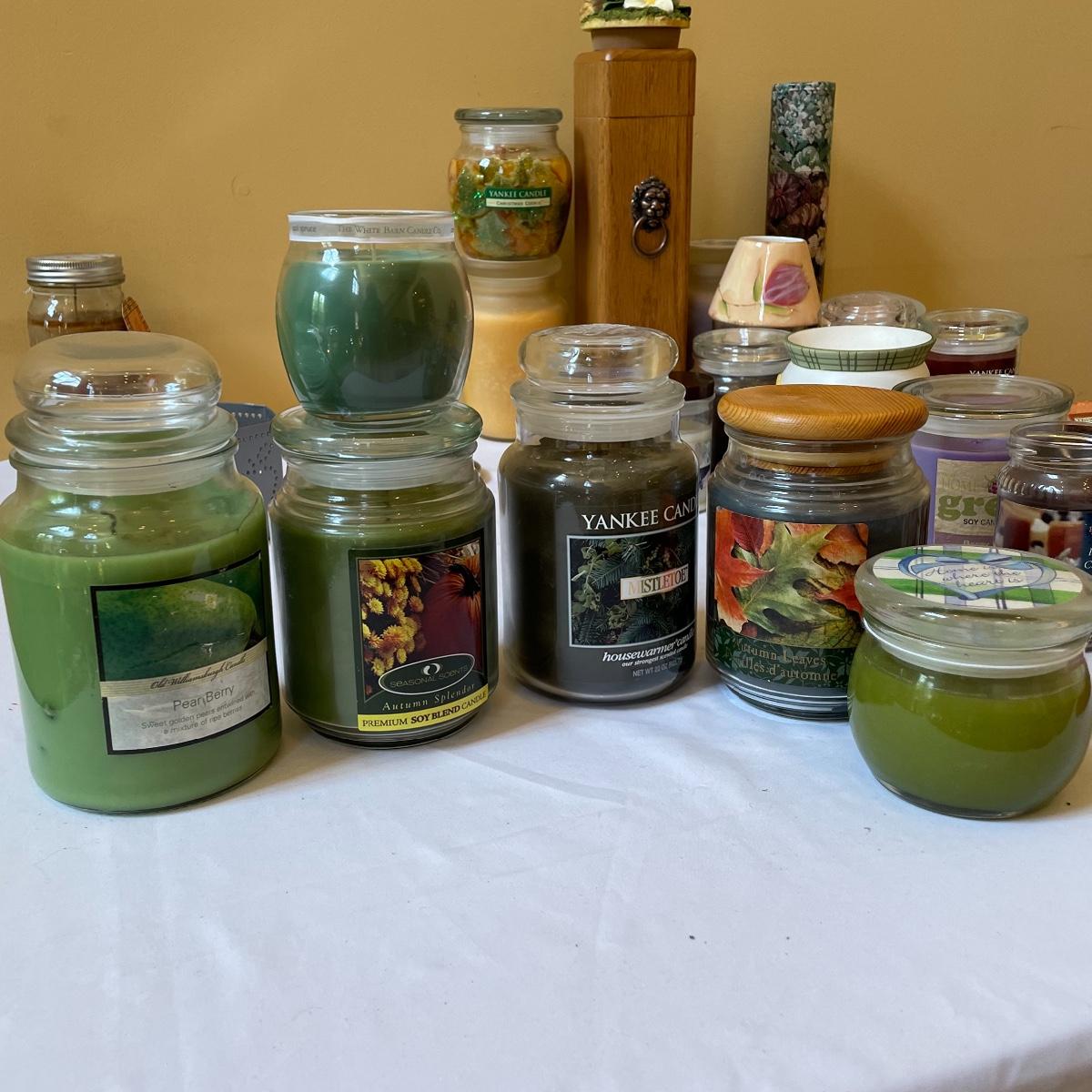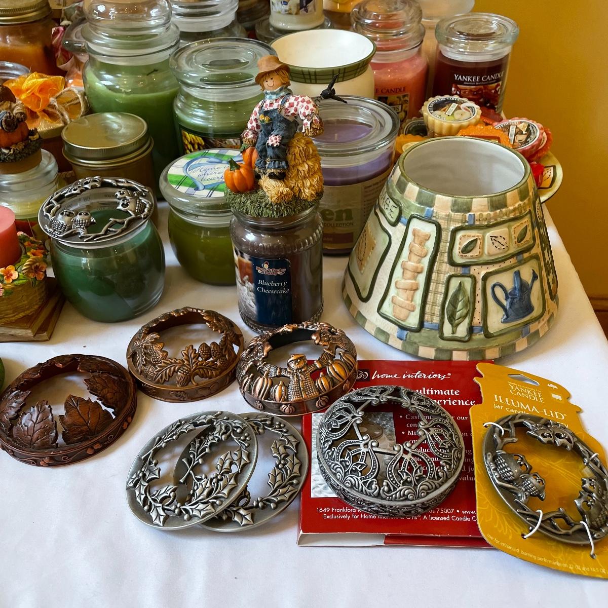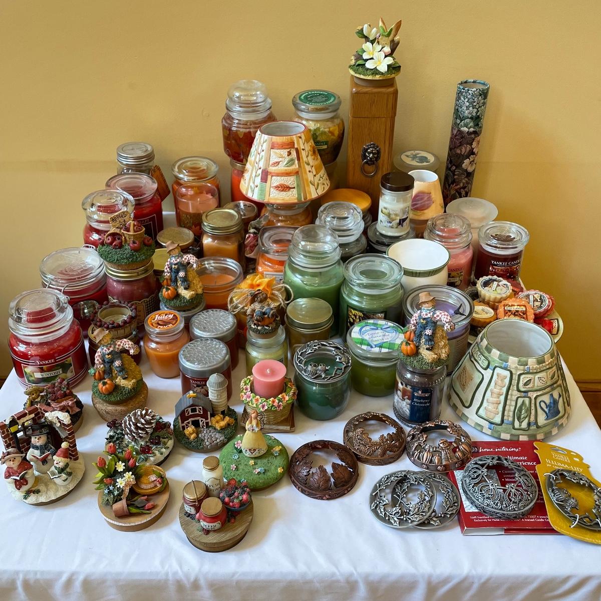 This lot offers a huge selection of sought after yankee candles for all seasons. This lot includes other brands as well with sensational scents. Light up your rooms with apple spice, mmm bacon, autumn scents, cut roses, berry & sage and more! The candles are unlit and come with a variety of decorative metal candle cappers, two 4.5” Yankee Candle Co ceramic lamp shades, two boxes of match sticks that are about 12” and plenty of cork style ceramic or cast resin figurine lids. See images. Local pick up only.
