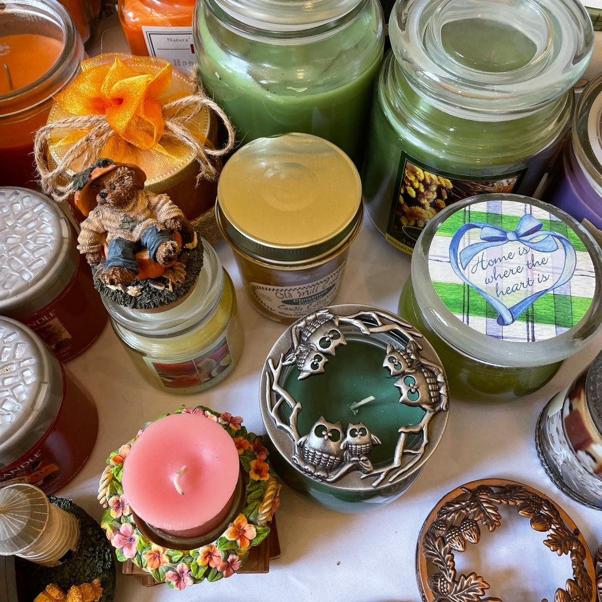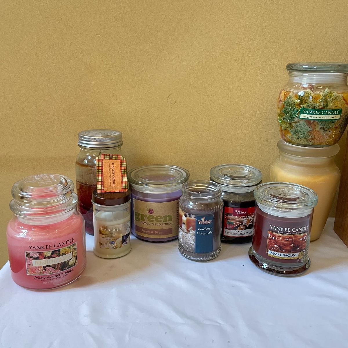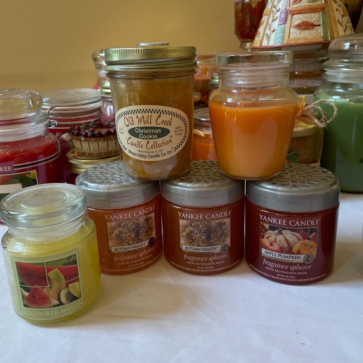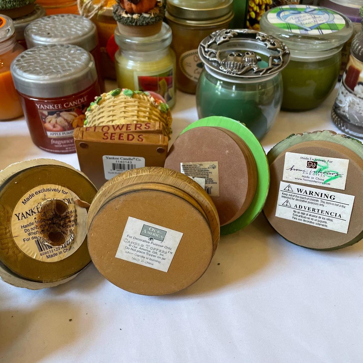 This lot offers a huge selection of sought after yankee candles for all seasons. This lot includes other brands as well with sensational scents. Light up your rooms with apple spice, mmm bacon, autumn scents, cut roses, berry & sage and more! The candles are unlit and come with a variety of decorative metal candle cappers, two 4.5” Yankee Candle Co ceramic lamp shades, two boxes of match sticks that are about 12” and plenty of cork style ceramic or cast resin figurine lids. See images. Local pick up only.