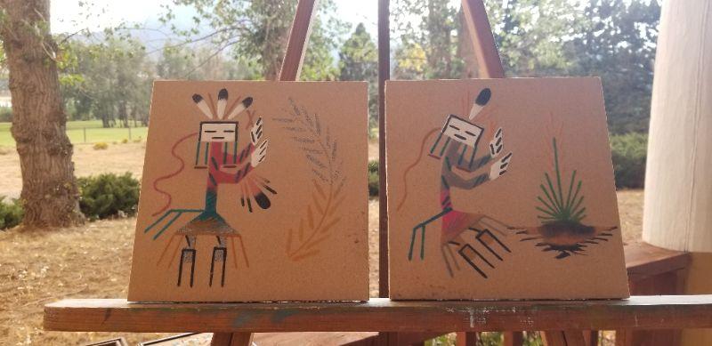 Lot 2-479: Pair of (2) Vintage Navajo Sand Paintings 8" x 8"