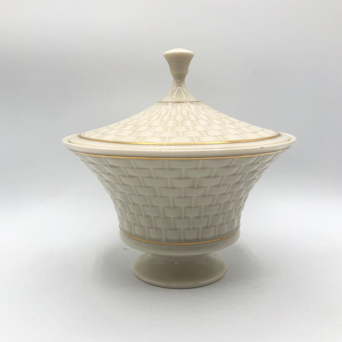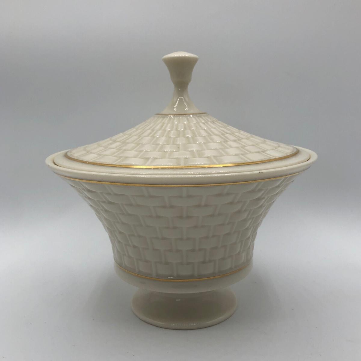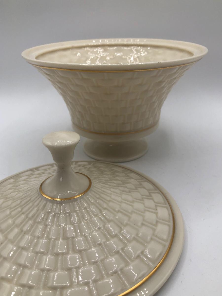 LOT 247F: Lenox Collection - Woven Basket Lidded Dish, Pink Swans & Wave Dish