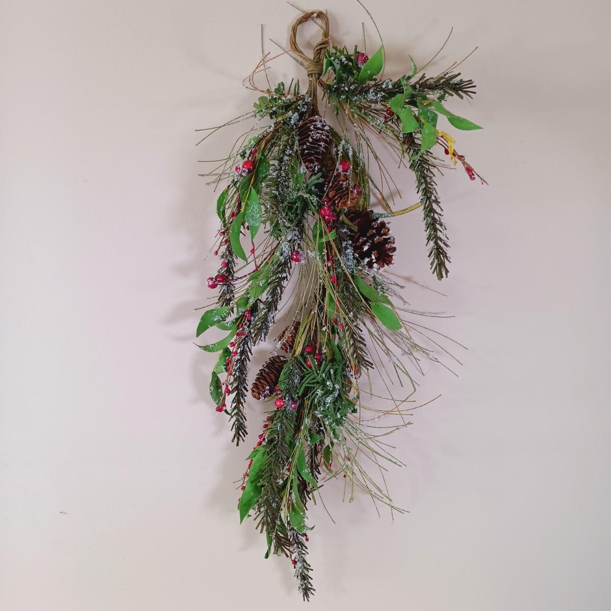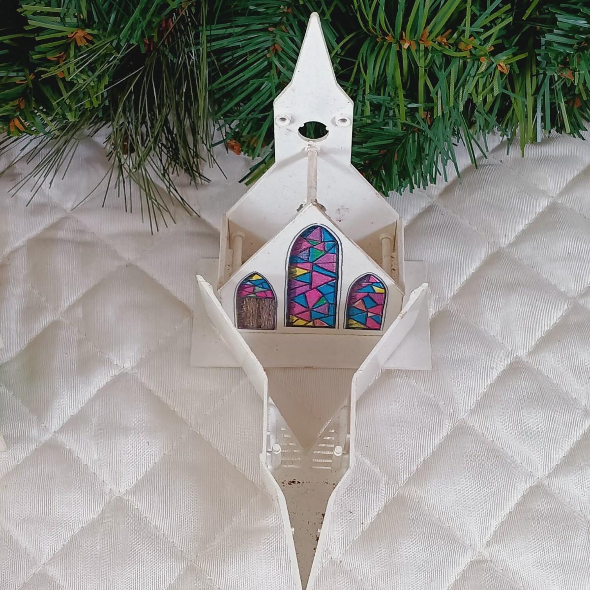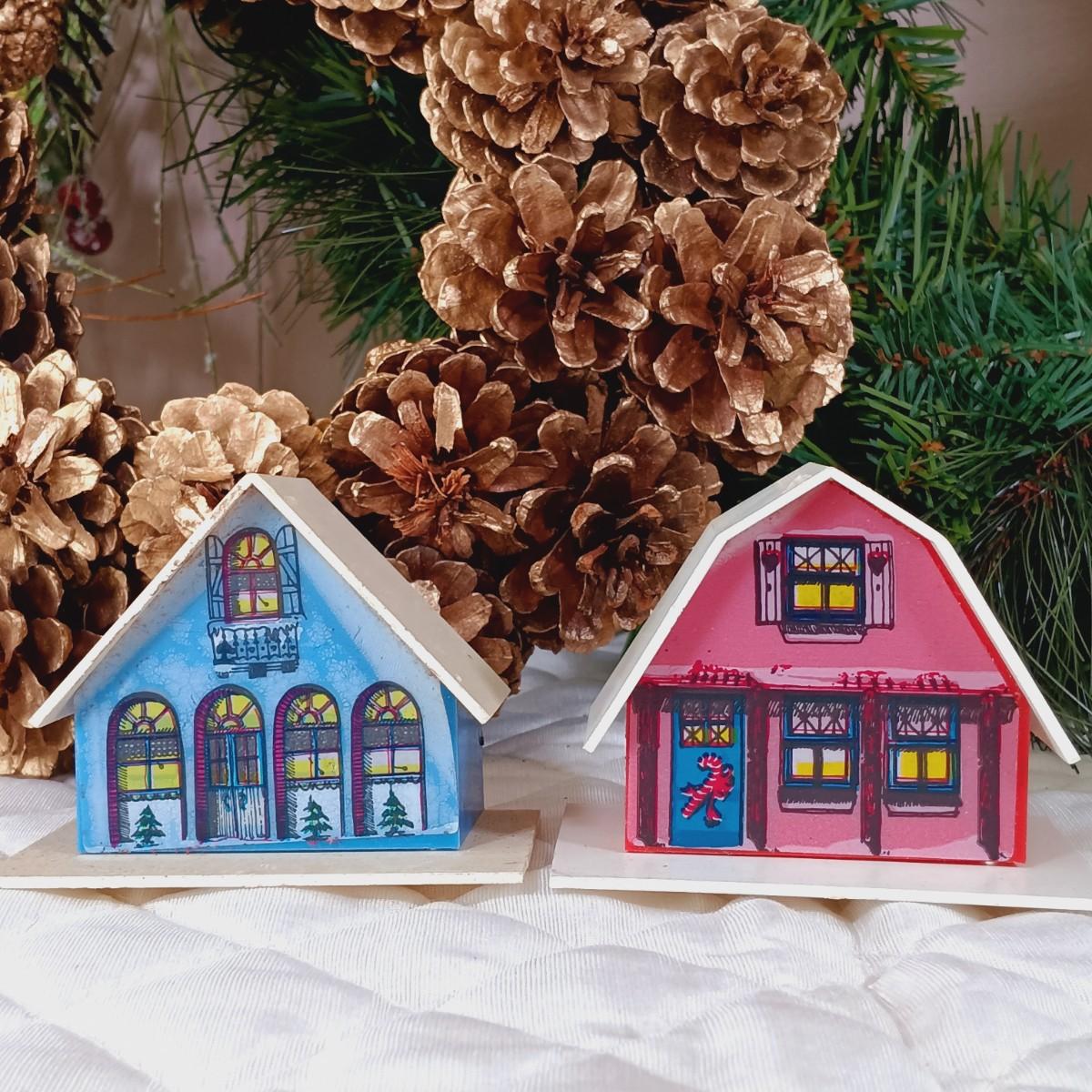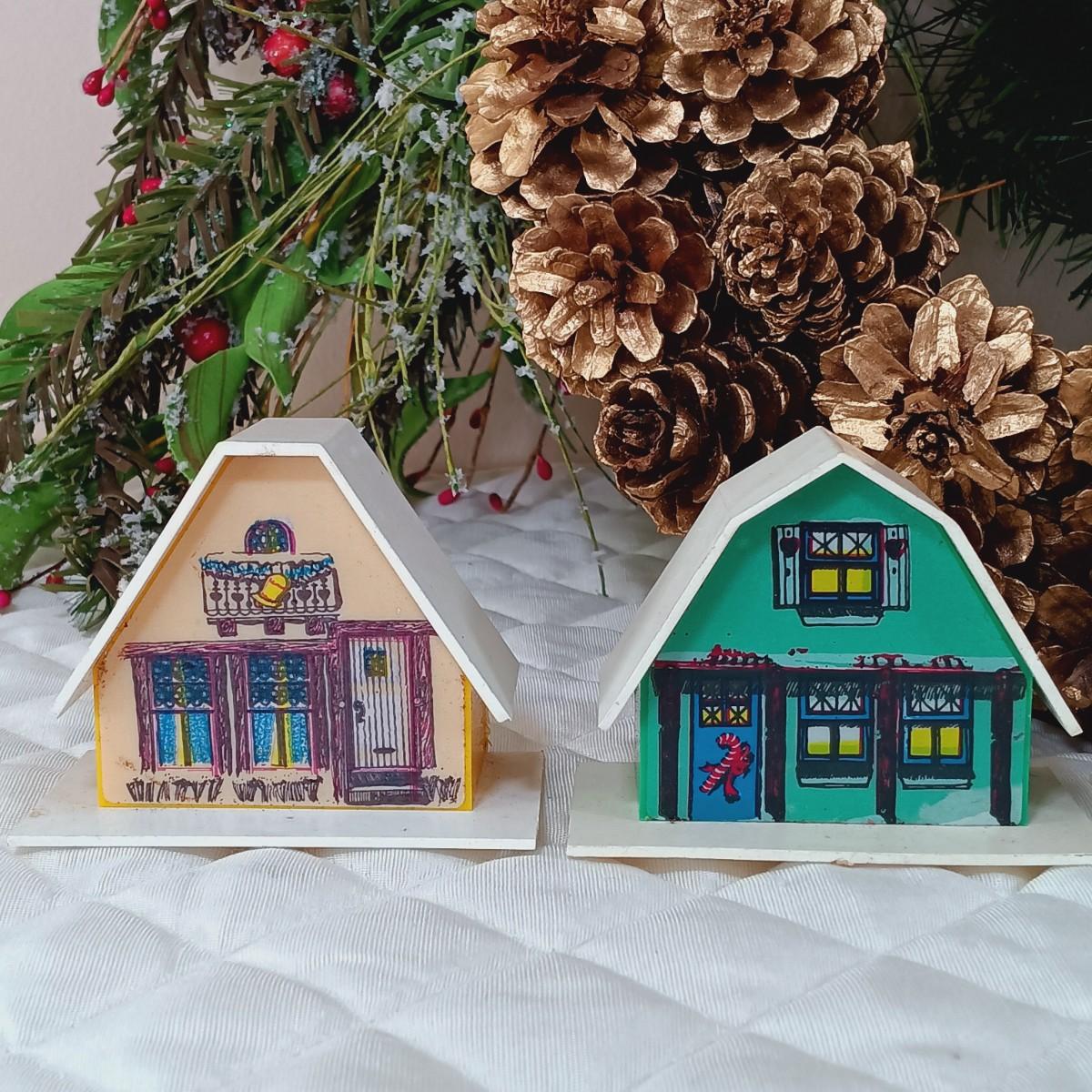 LOT 248: Vintage Alpine Village Plastic Houses with Wreaths, Garland & Tree Skirt