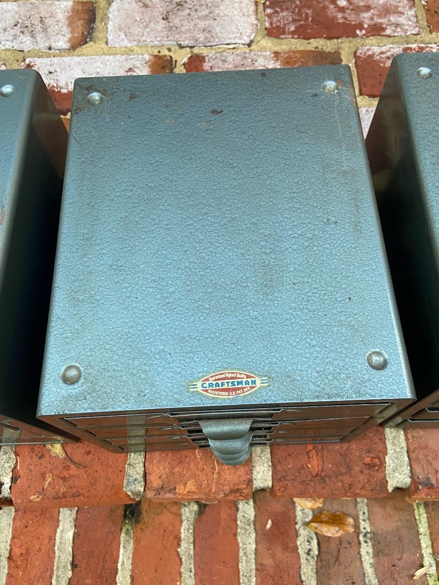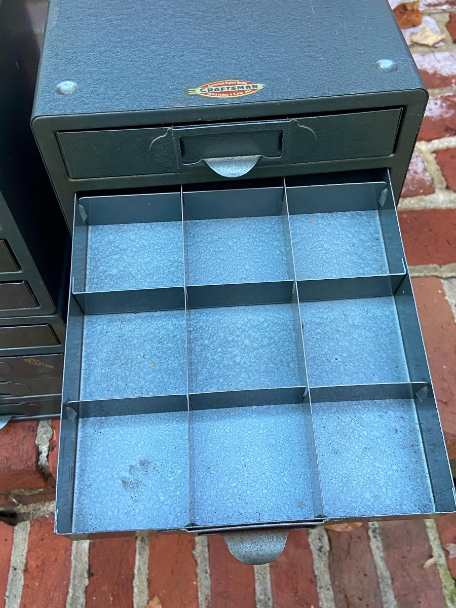 4 Craftsman tool/parts storage chests. Please see all pictures as they are the best representation of the items. The pictures show condition, measurements if taken, and what is included in the lot. Due to the large amount that we photograph and the time frame, we are not always able to take measurements. All items unless noted, are pre-owned and have been used. If you purchased furniture, you must bring help. We do not allow one person to carry large furniture out on their own. Bring help, tools and a truck for the safety of our client’s homes, and your personal safety. Company policy. Thank you.