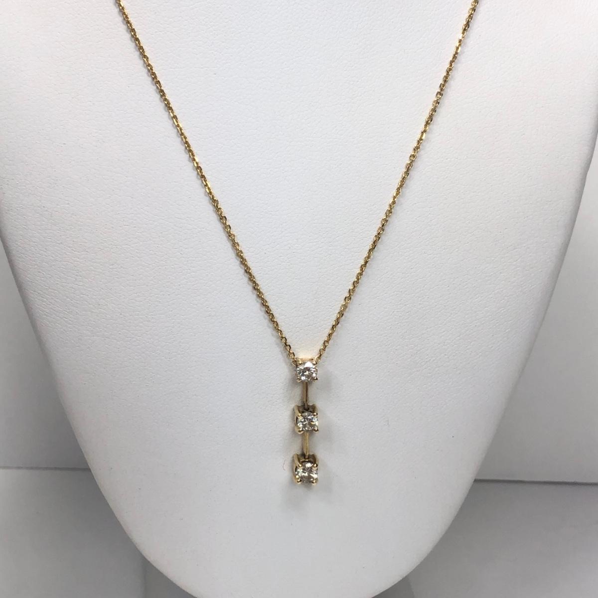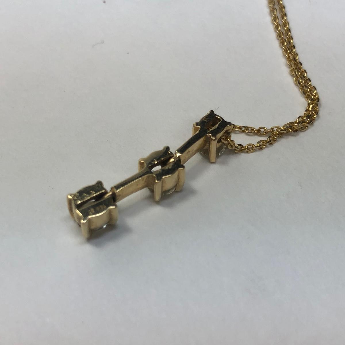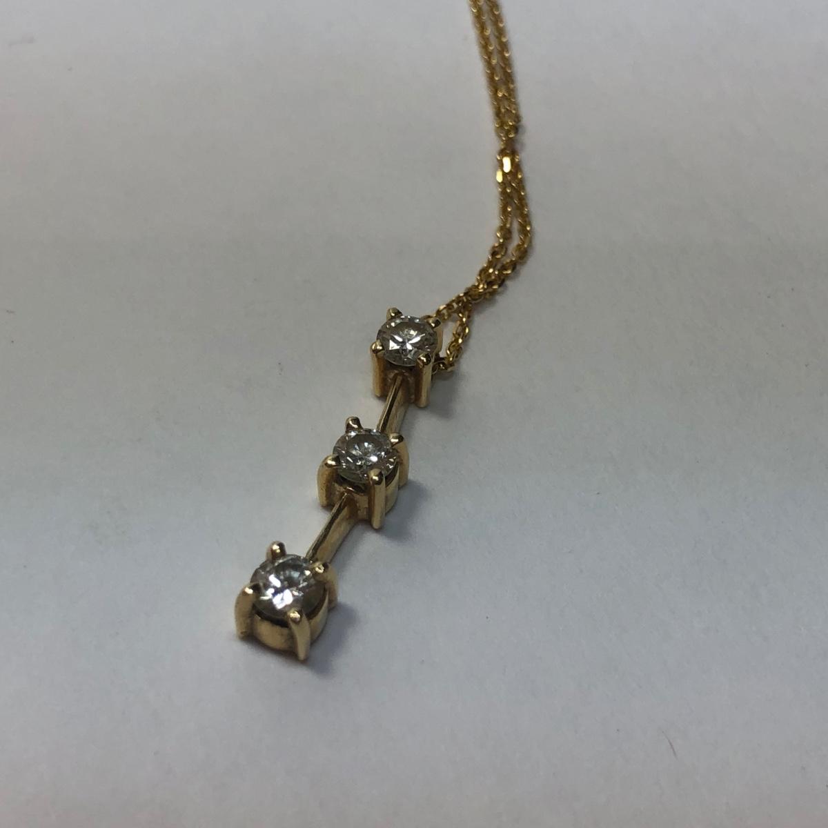 LOT 248: 14K Gold Three Diamond Pendant on 18" 14K Gold Chain 3.1 gtw