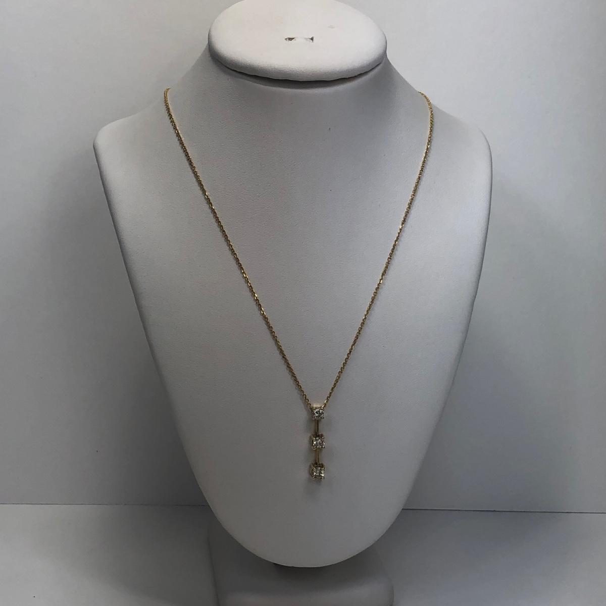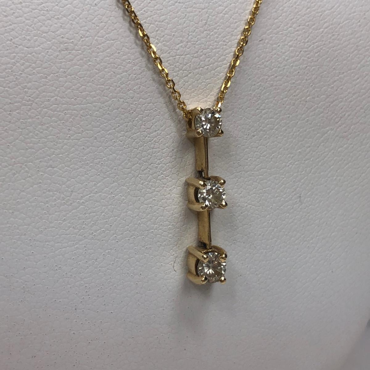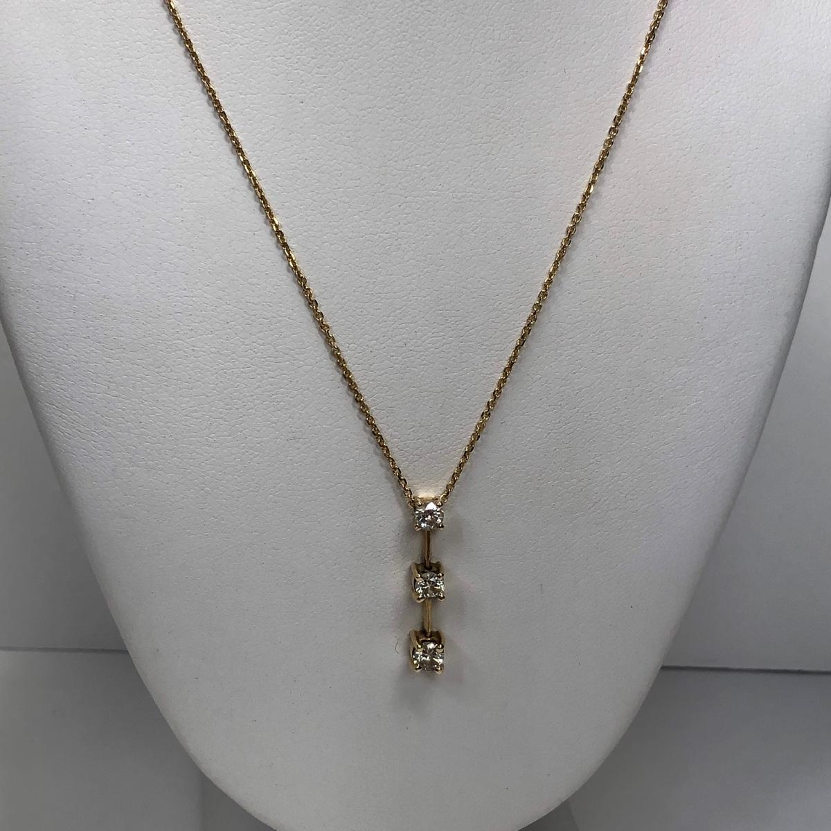 LOT 248: 14K Gold Three Diamond Pendant on 18" 14K Gold Chain 3.1 gtw