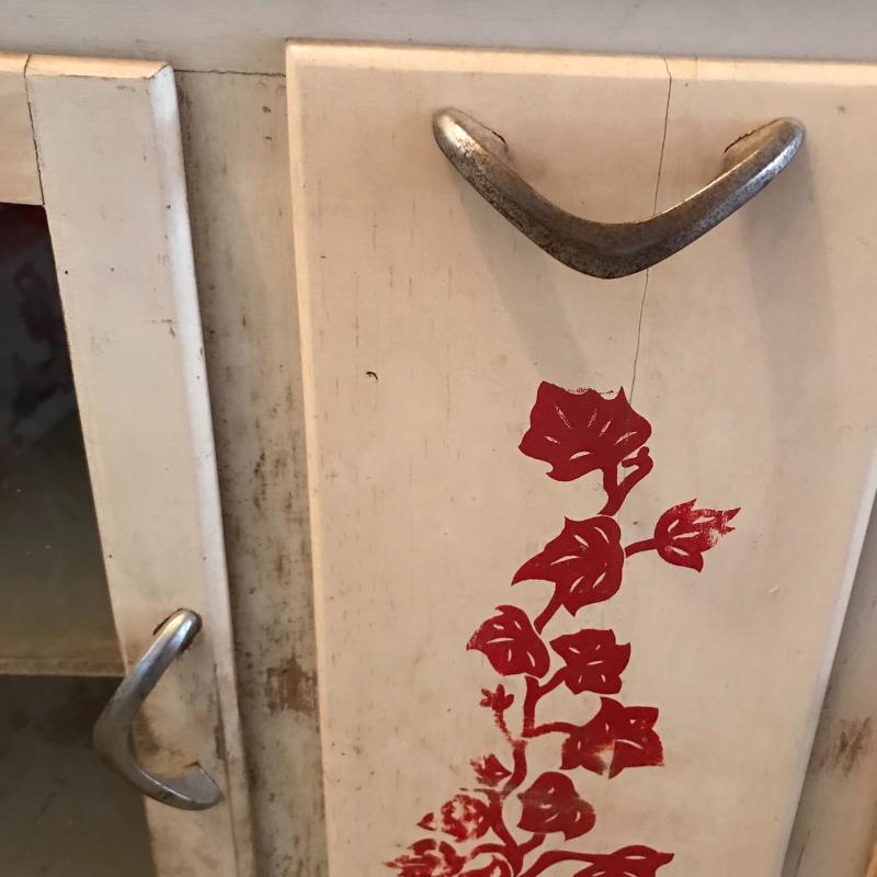 This lovely antique Hoosier cabinet top would make the perfect addition to your shabby sheik kitchen or to display your favorite vintage finds. Worn nicely, and still sturdy, this piece is approx. 40” x 13” x 34” h. Flour bin and sifter still attached. See pics. Local pickup only.