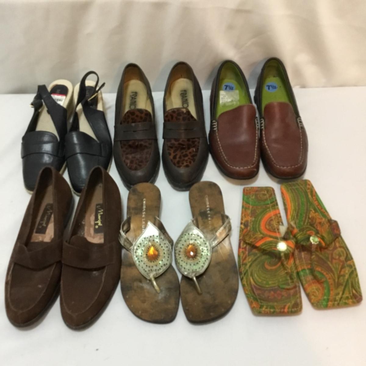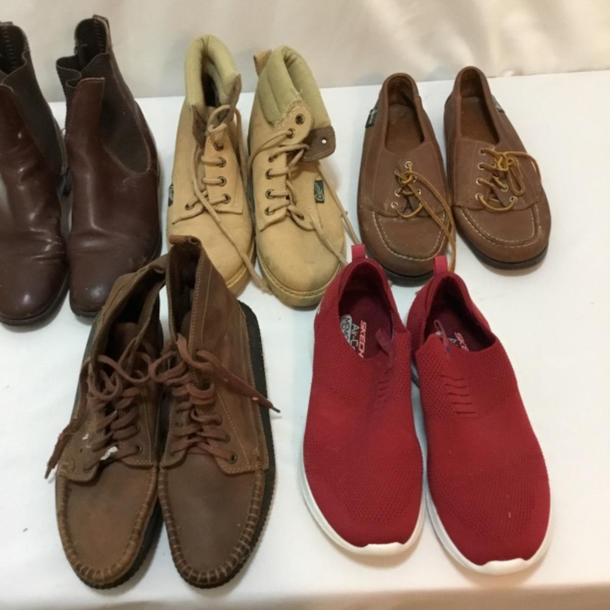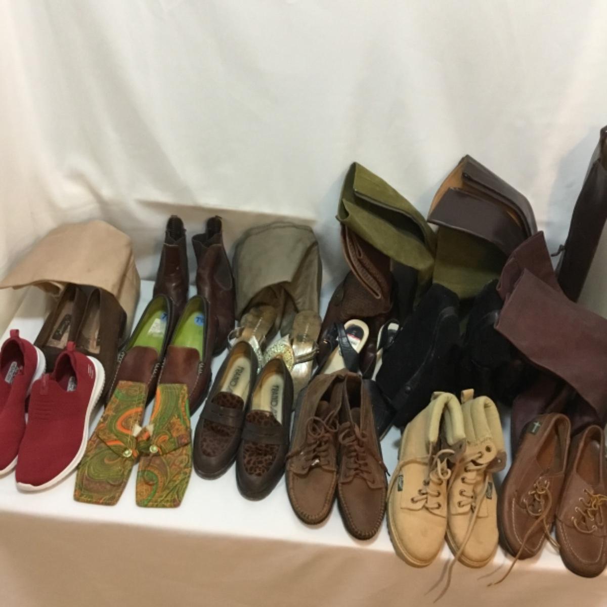 Lot includes large shoe collection with high legged boots, ankle boots, tennis shoes, casual slip-ons, and more! See photos for sizing and brands. Ranging around a women’s shoe size 7-7.5. Shipping available.