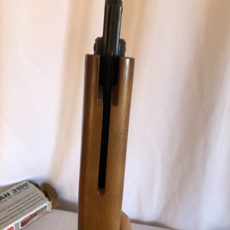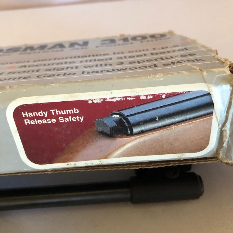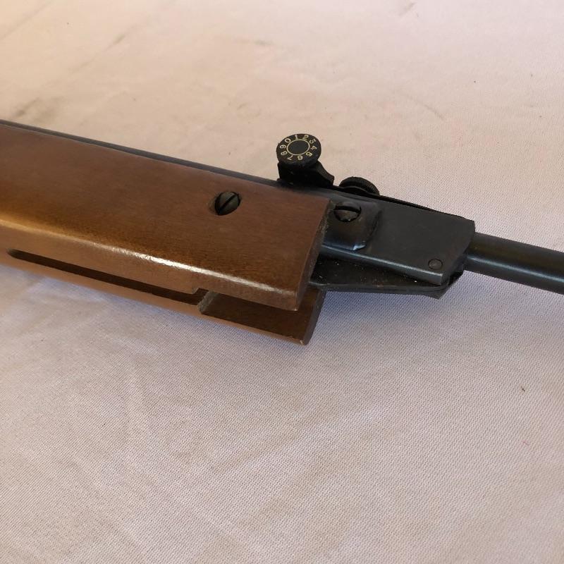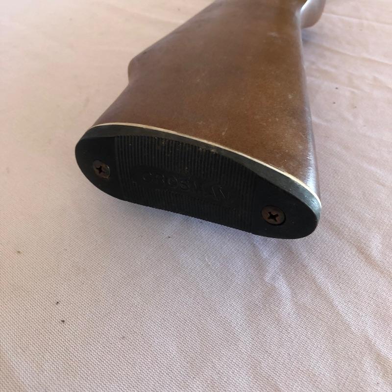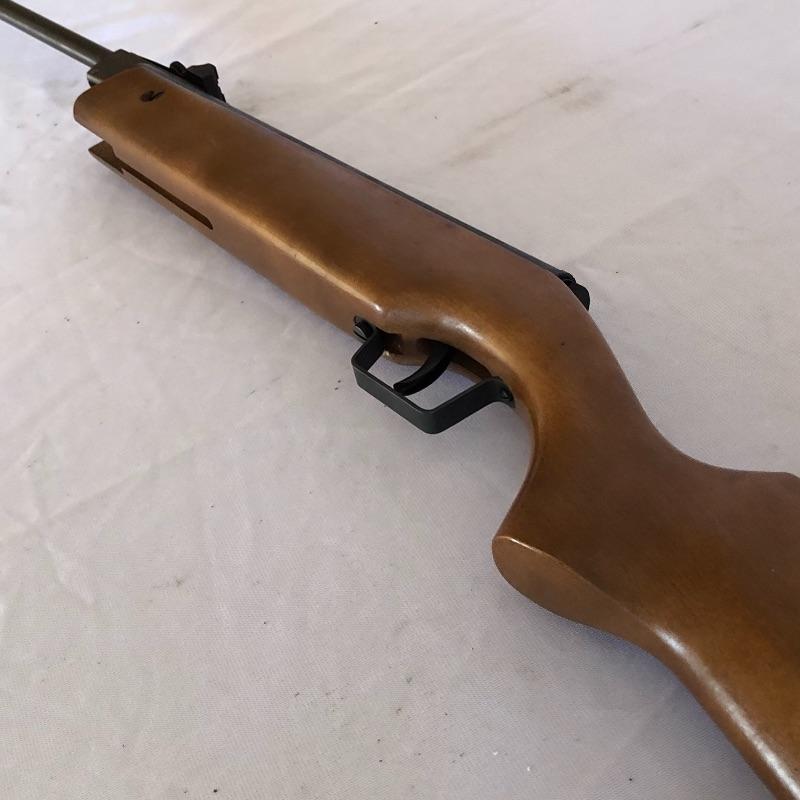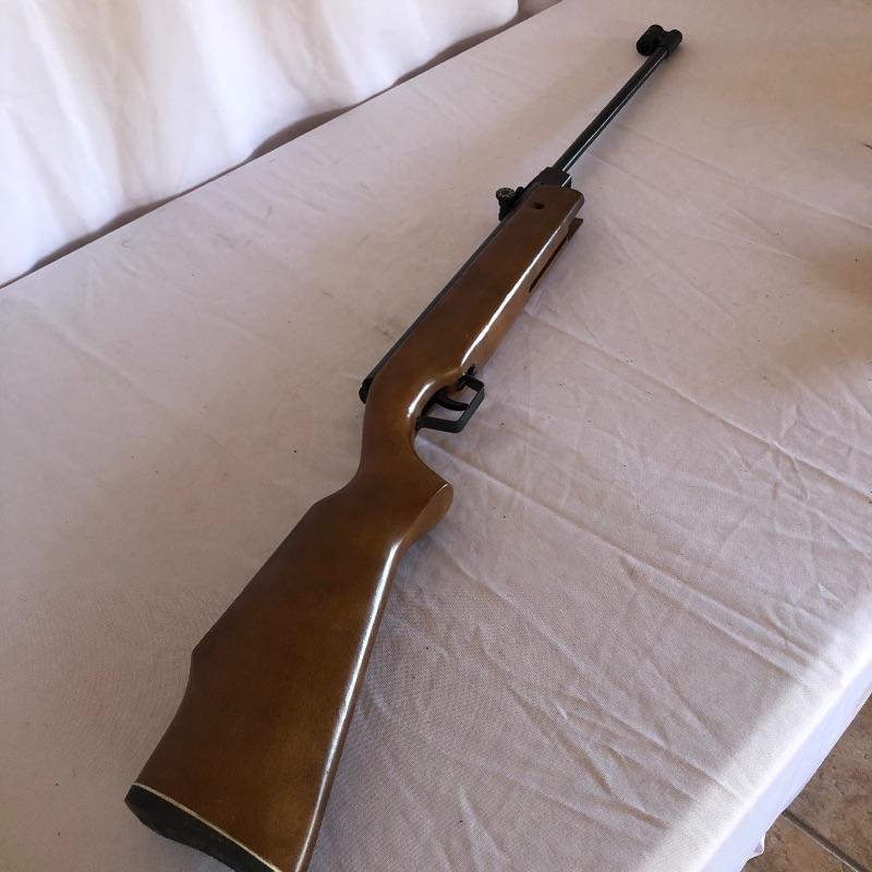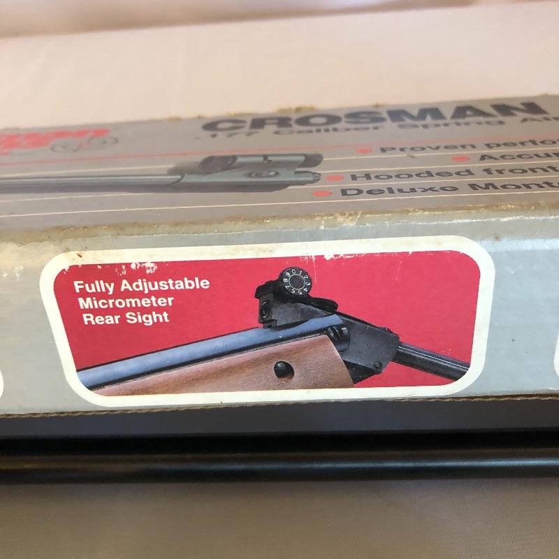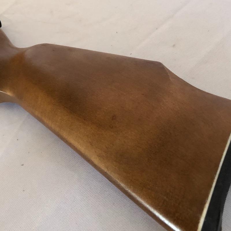 Thinking about the movie “Christmas Story?” Surprise someone with this air pellet rifle made in Spain. It features a hardwood wooden stock and steel barrel with a hooded front sight with three apertures. Included in this lot are three containers of copperhead pellets. Local pick up only.