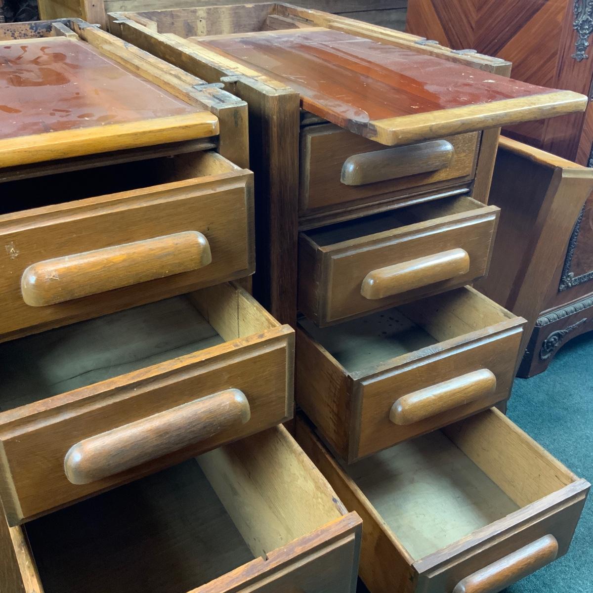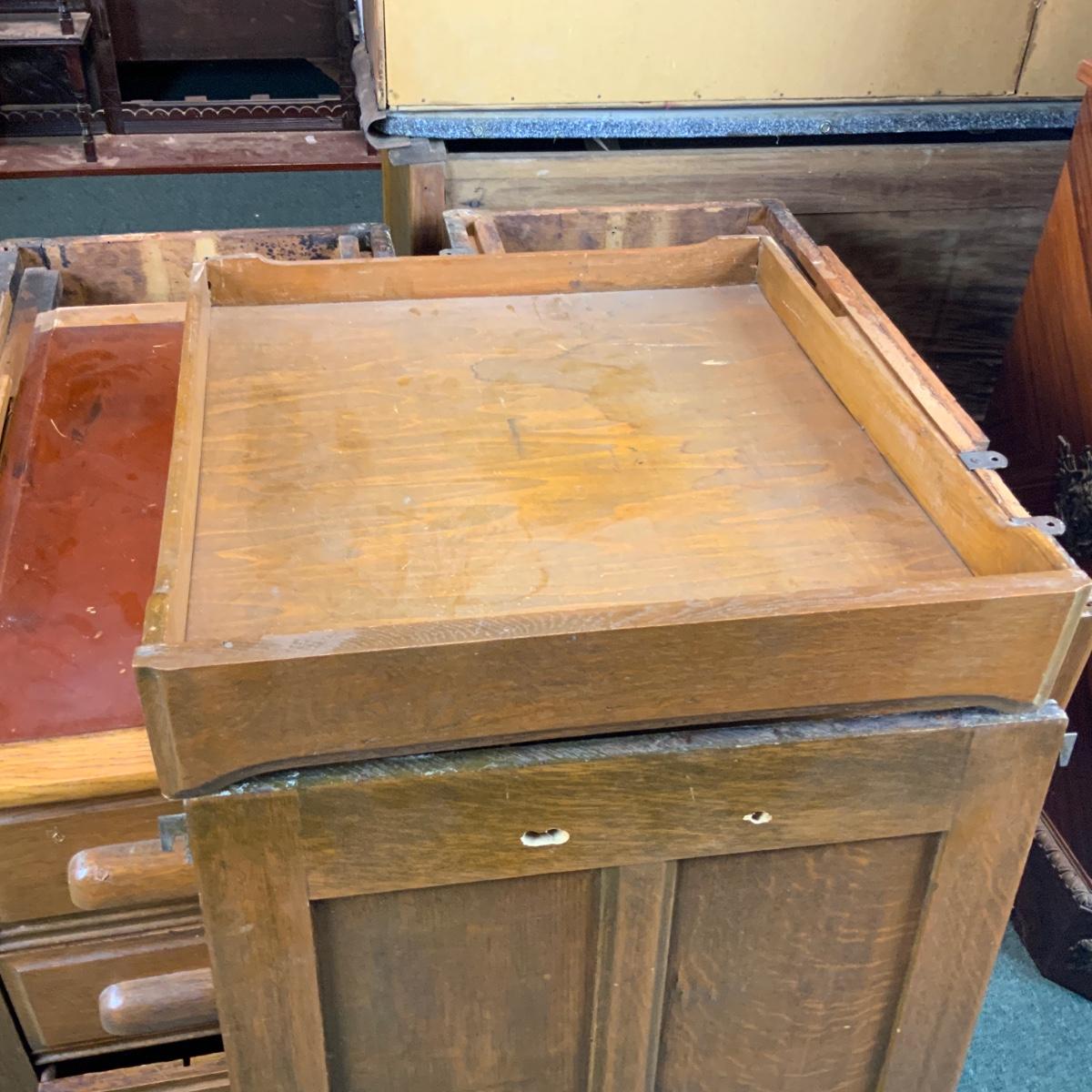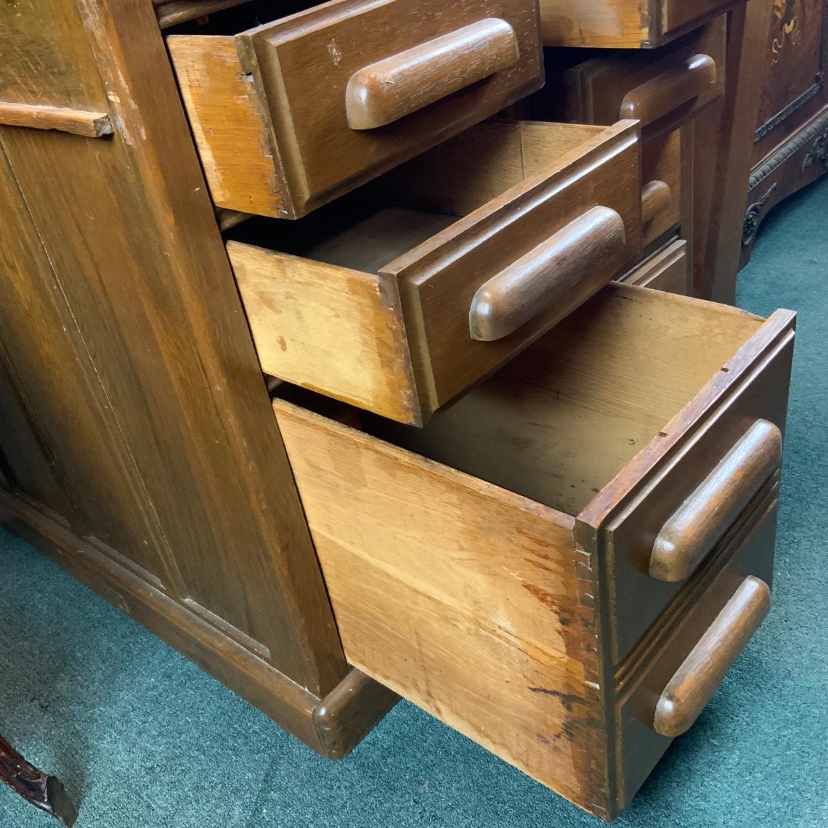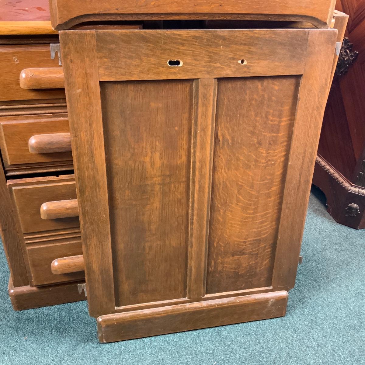 Disassembled oak desk. Higher quality than IKEA equally as complicated as Legos. You could turn the side pieces into end, tables or find a solid piece of wood to use as a top. //::\\ Please see photos for details and condition. No attempt has been made to hide any imperfections. All items listed in this auction are warehouse items, and need to be cleaned. A majority of the items need restoration as well. All items are sold AS IS and WITHOUT GUARANTEE. If you are uncertain about an item, DO NOT BID. Due to the nature of this online auction in-person inspection is HIGHLY recommended. All Sales are FINAL. Pick Up Times are FIRM. Please confirm with your own schedule that you can pick up in the scheduled times listed in the Terms and Conditions. Any questions please message the auctioneer. DO NOT Contact The Harp Gallery.