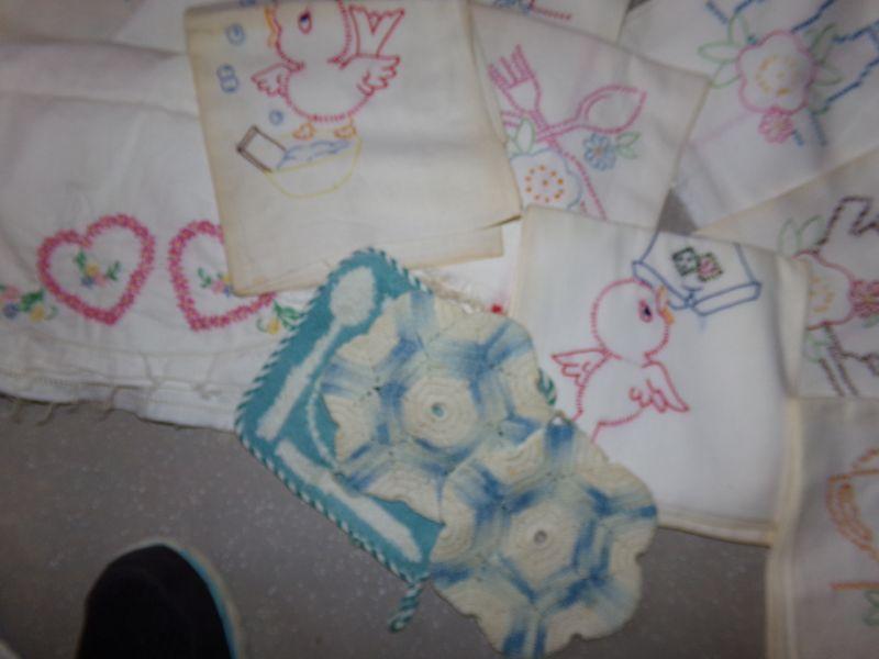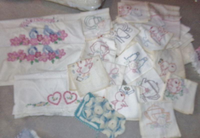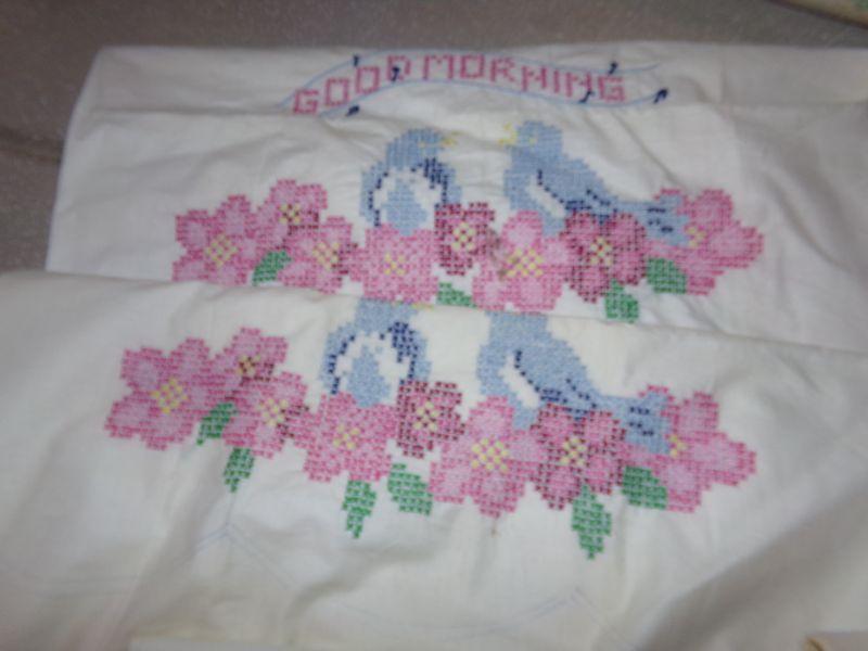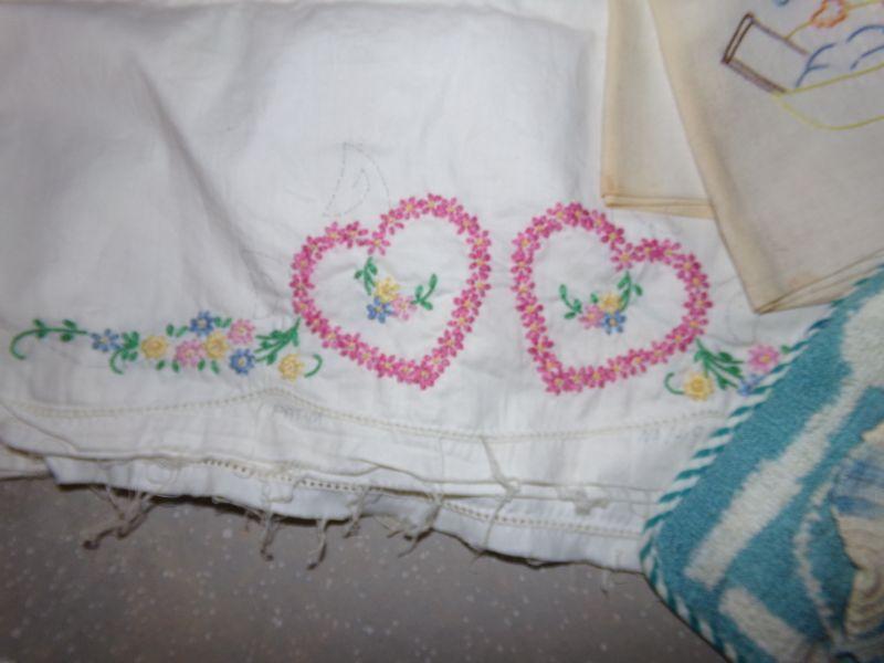 HAND EMBROIDERED TOWELS, UNFINISHED PILLOWCASES AND MORE