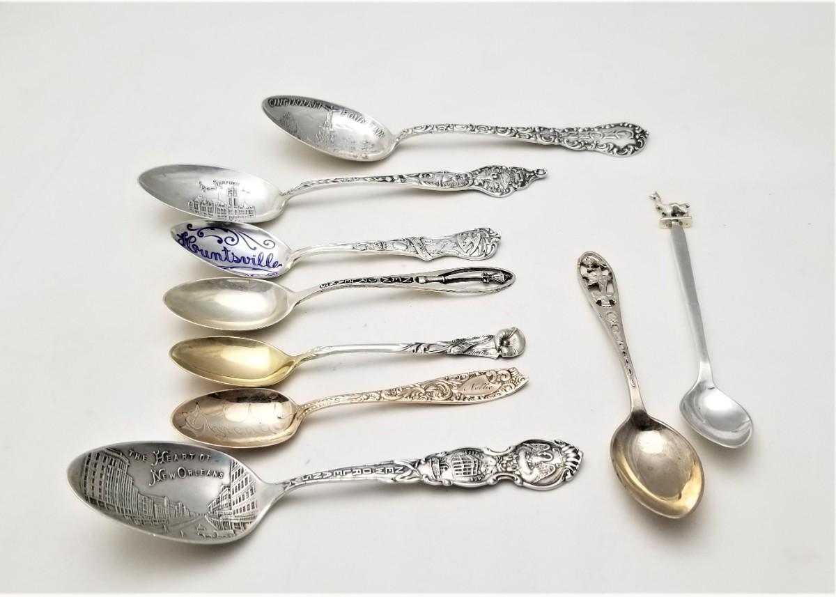Lot #248 Group of 9 vintage Sterling Silver Souvenir Spoons - NEW ORLEANS
