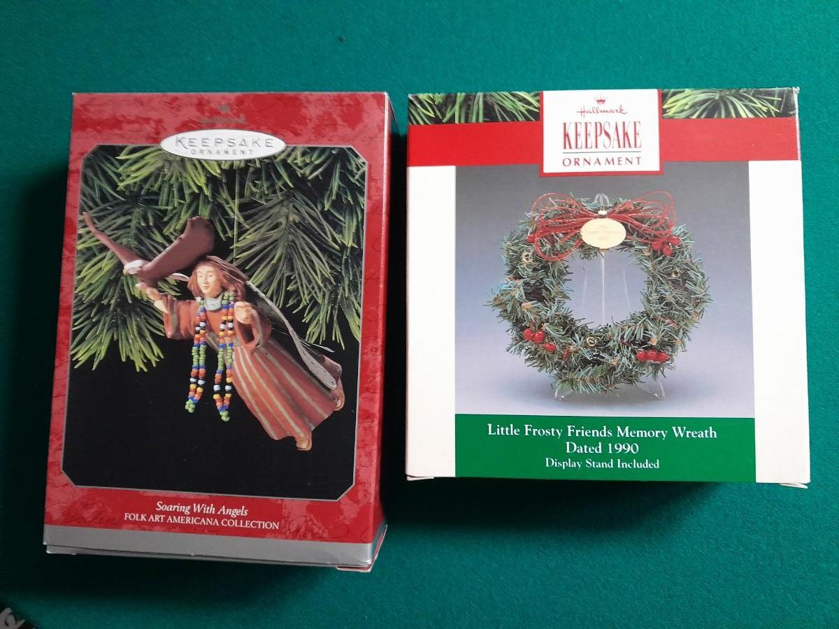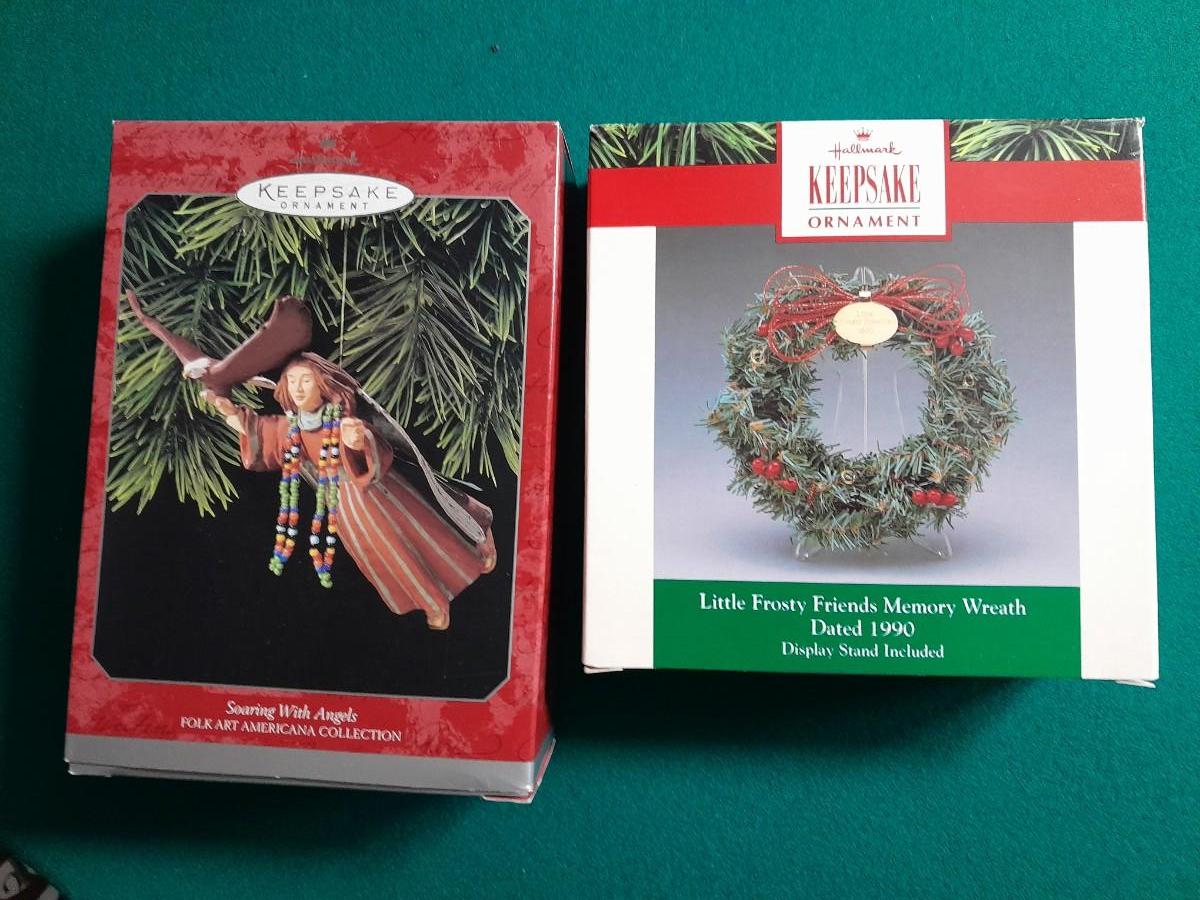 HALLMARK CHRISTMAS ORNAMENTS ANGEL AND WREATH