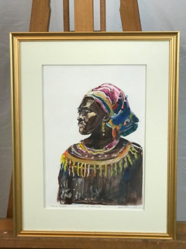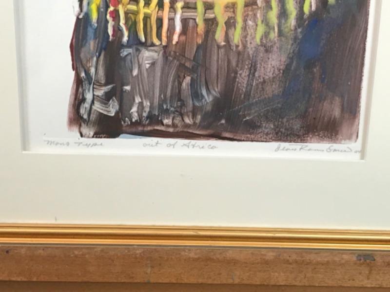 Jean Ranney Smith signed framed mono type art “Out Of Africa” measures 19-1/2”x15”