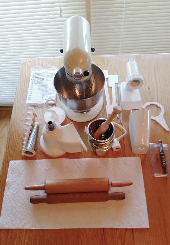 Lot 248: Kitchen Aid Multi Function Mixer with Attachment Pak FPP-A